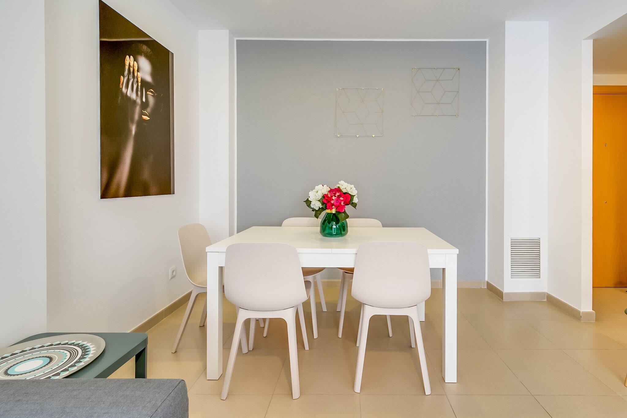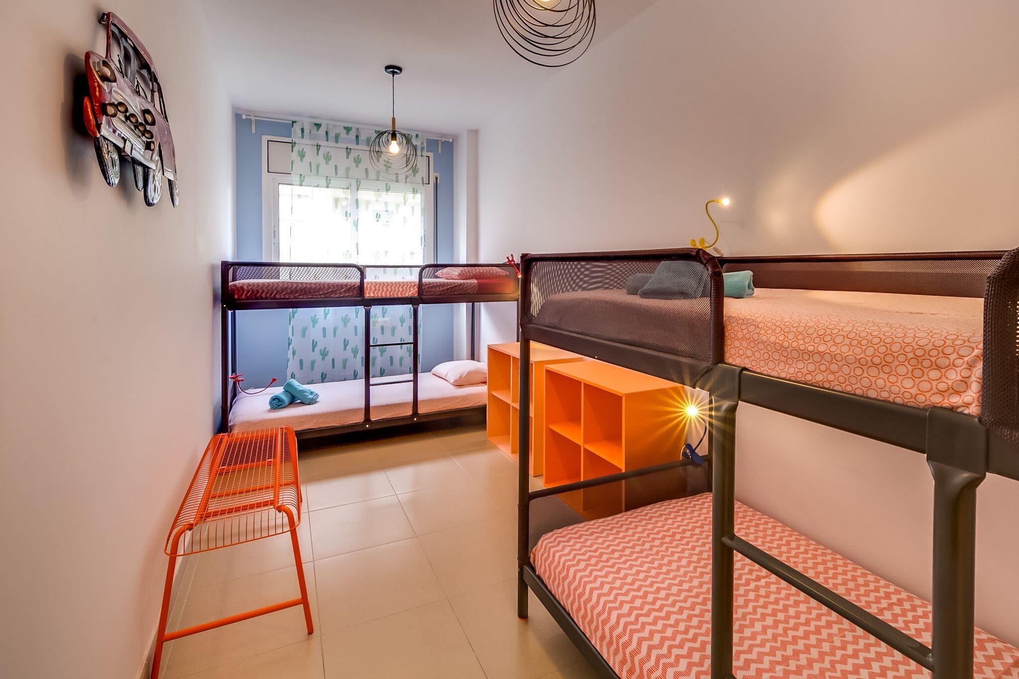 Denna vackert renoverade lägenhet erbjuder en fridfull tillflyktsort i bostadsområdet Fenals, bara en kort promenad från några av Lloret de Mars mest fantastiska stränder – Boadella (5 minuter), Fenals (8 minuter) och Santa Cristina (15 minuter). Lägenheten är perfekt för familjer och ligger i ett lugnt komplex med fyra gemensamma pooler, anlagda trädgårdar och närliggande lekplatser, butiker och restauranger. Lägenheten rymmer bekvämt upp till 6 gäster och har två sovrum – ett med en queen size-säng och ett annat med två våningssängar – tillsammans med ett rymligt vardagsrum/matsal, ett fullt utrustat kök och ett modernt badrum. Njut av ditt morgonkaffe eller kvällsmåltider på den privata balkongen med trädgårdsmöbler. Huset är helt luftkonditionerat och inkluderar gratis Wi-Fi, en tvättmaskin och valfri privat parkering med direkt tillgång till lägenheten. Oavsett om du vill koppla av vid poolen, utforska Costa Bravas kustlinje eller njuta av en familjevänlig strandsemester, erbjuder denna lägenhet den perfekta kombinationen av komfort, bekvämlighet och läge för en oförglömlig vistelse.