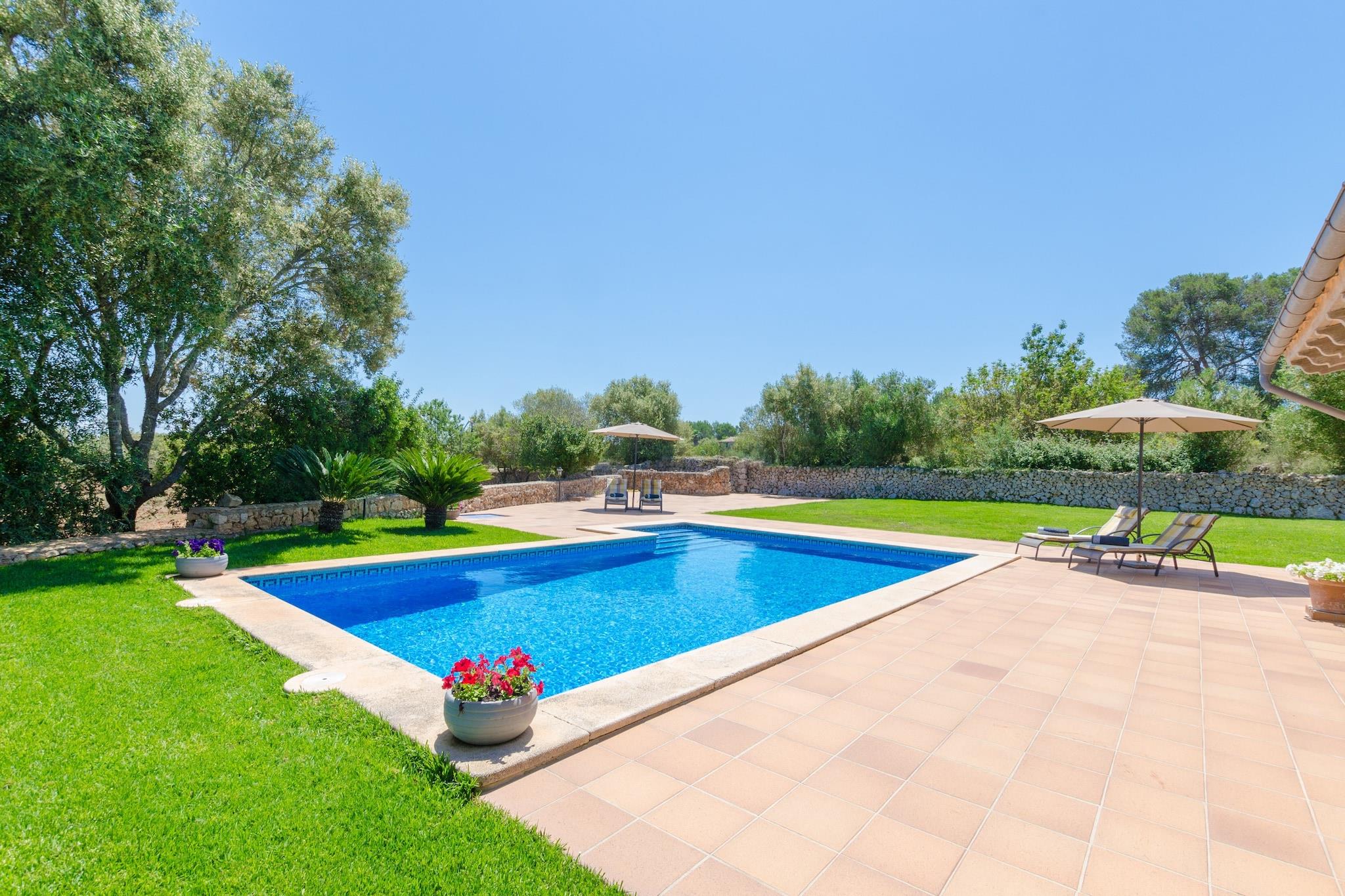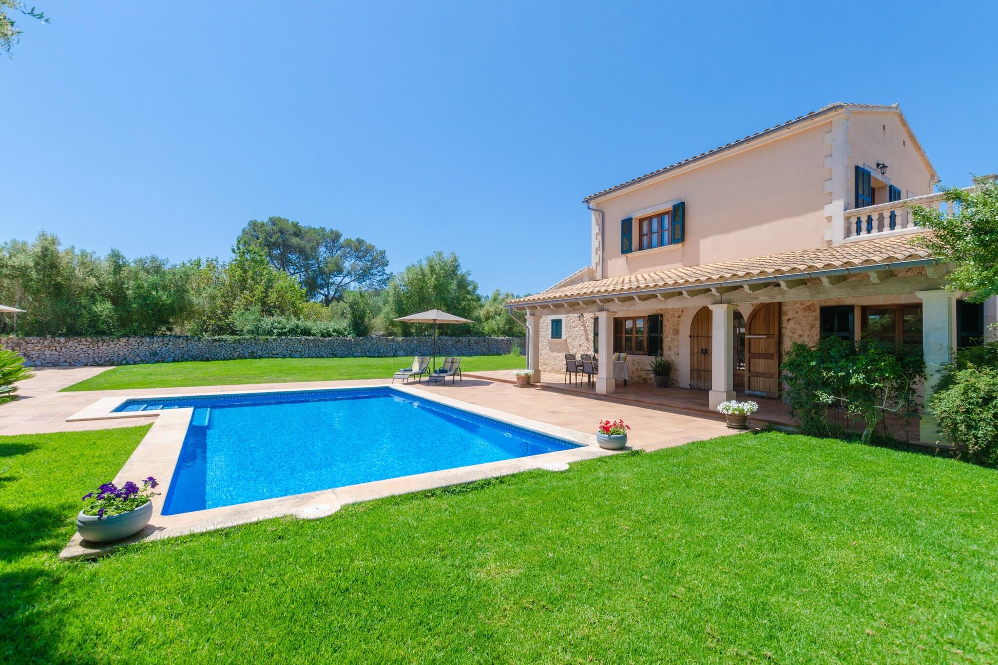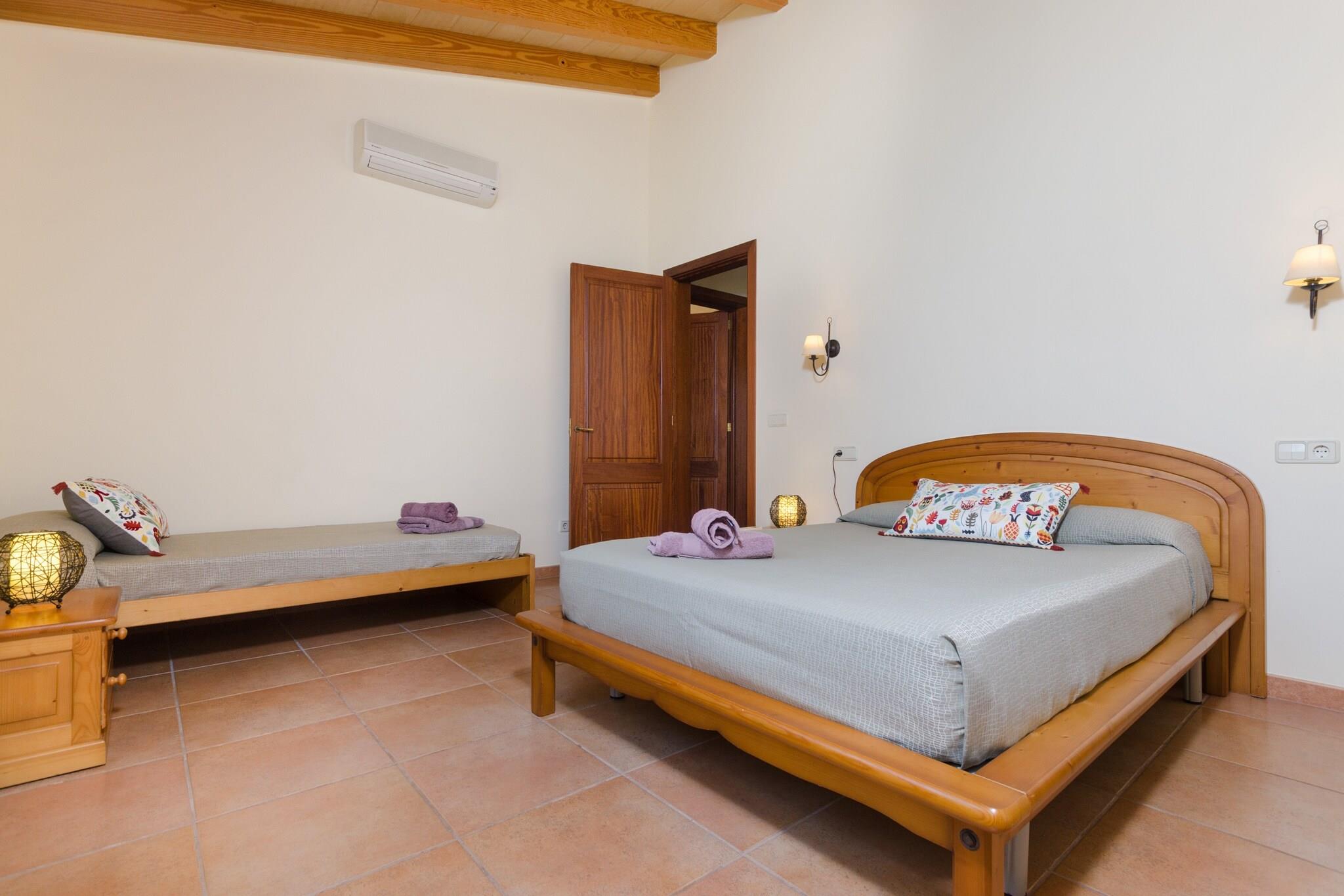 Koppla av i en lugn lantlig miljö där den privata 9x5 m stora poolen står i centrum, omgiven av en grön gräsmatta och sex solstolar perfekta för långa eftermiddagar i solen. En skuggig veranda är den perfekta platsen för grillning och uteservering, vilket gör kvällarna lika avkopplande som dagarna. Med gott om utomhusutrymmen och utsikt över det rustika tvåvåningshuset känns varje ögonblick utanför uppfriskande och lugn. Inuti blandar villan moderna bekvämligheter med varm design. Det rymliga vardagsrummet och matsalen, komplett med luftkonditionering, satellit-TV och musiksystem, skapar ett välkomnande utrymme för familjer och vänner. Ett fullt utrustat kök med gasspis, tillsammans med tvättmöjligheter, gör längre vistelser enkel. Tre sovrum, alla med dubbelsängar och förvaring, kompletteras av tre badrum - två av dem en-suite - för extra avskildhet. Centralvärme, luftkonditionering, en spjälsäng och en barnstol garanterar komfort året runt för alla gäster. Villan ligger bara 2,4 km från Lloret de Vistalegre och erbjuder enkla förbindelser över Mallorca. Den charmiga byn Sineu, med sin veckomarknad, ligger bara några minuter bort, medan Palma och stränderna i Can Picafort ligger inom en kort bilresa. Gästerna kan njuta av äkta mallorcansk mat i närliggande byar eller utforska en rad restauranger i Palma, känd för sin blandning av tapasbarer och modern mat. Med golfbanor, kulturstäder och sandstränder i närheten gör denna villa det enkelt att utforska ön.