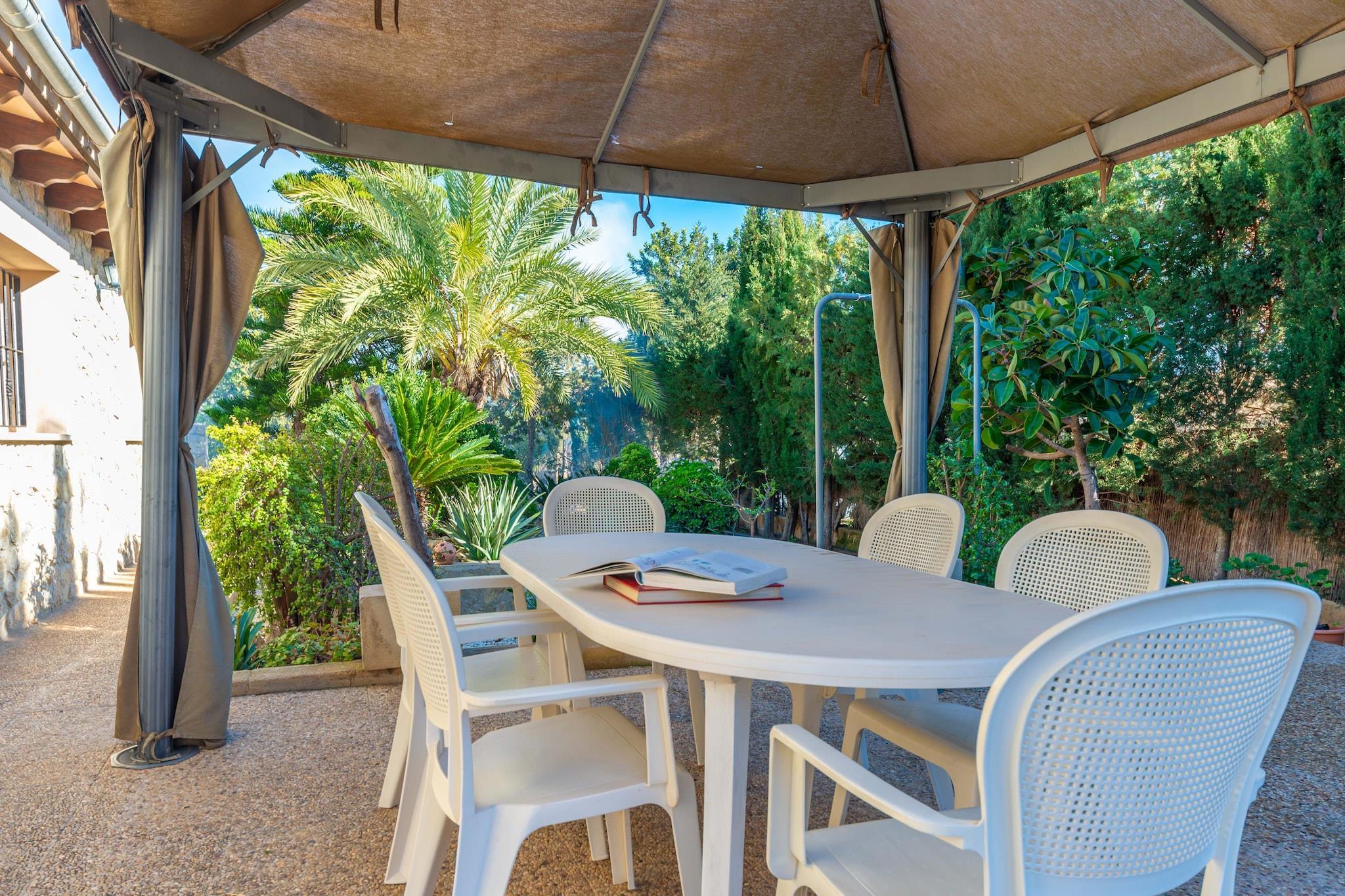 Charmiga uteplatser Njut av det soliga baleariska klimatet i villans inbjudande exteriör. Poolen är perfekt för ett uppfriskande dopp, medan sex solstolar låter dig koppla av i solen. Vandra genom trädgården och fruktträden eller samlas på den 9 m² stora verandan med en grill. Terrassen, utrustad med ett skuggigt bord och stolar, ger minnesvärda måltider eller lugna kvällar med familj och vänner. Rymlig interiörkomfort Detta 170 m² stora hem rymmer upp till sju gäster i fyra sovrum. Sovrummet på bottenvåningen har luftkonditionering, utsikt över bergen och ett eget badrum med badkar. På övervåningen har tre dubbelrum också AC, kompletterat med ytterligare två badrum - ett med badkar och ett med dusch. Två vardagsrum ger flexibla avkopplingsutrymmen: ett tystare med fyra soffor och TV, det andra integrerat med matsalen och fullt utrustat kök, komplett med keramikhäll, tvättmaskin och strykmöjligheter. En spjälsäng är tillgänglig för familjer som reser med en baby. Närliggande attraktioner och restauranger Inbäddat i byn Tramuntana Lloseta, är du bara en kort bilresa från Inca, där marknader, butiker och restauranger väntar. Torsdagsförmiddagar bjuder på en livlig marknad med textilier, keramik och lokala produkter. För strandälskare ligger Ses Casetes dels Capellans och Can Picafort 30 minuter bort, och erbjuder sandstränder, restauranger vid havet och solnedgångspromenader längs strandpromenaden. Utforska Port d'Alcúdia eller Pollença för mer lokal charm, restauranger och vattenaktiviteter.