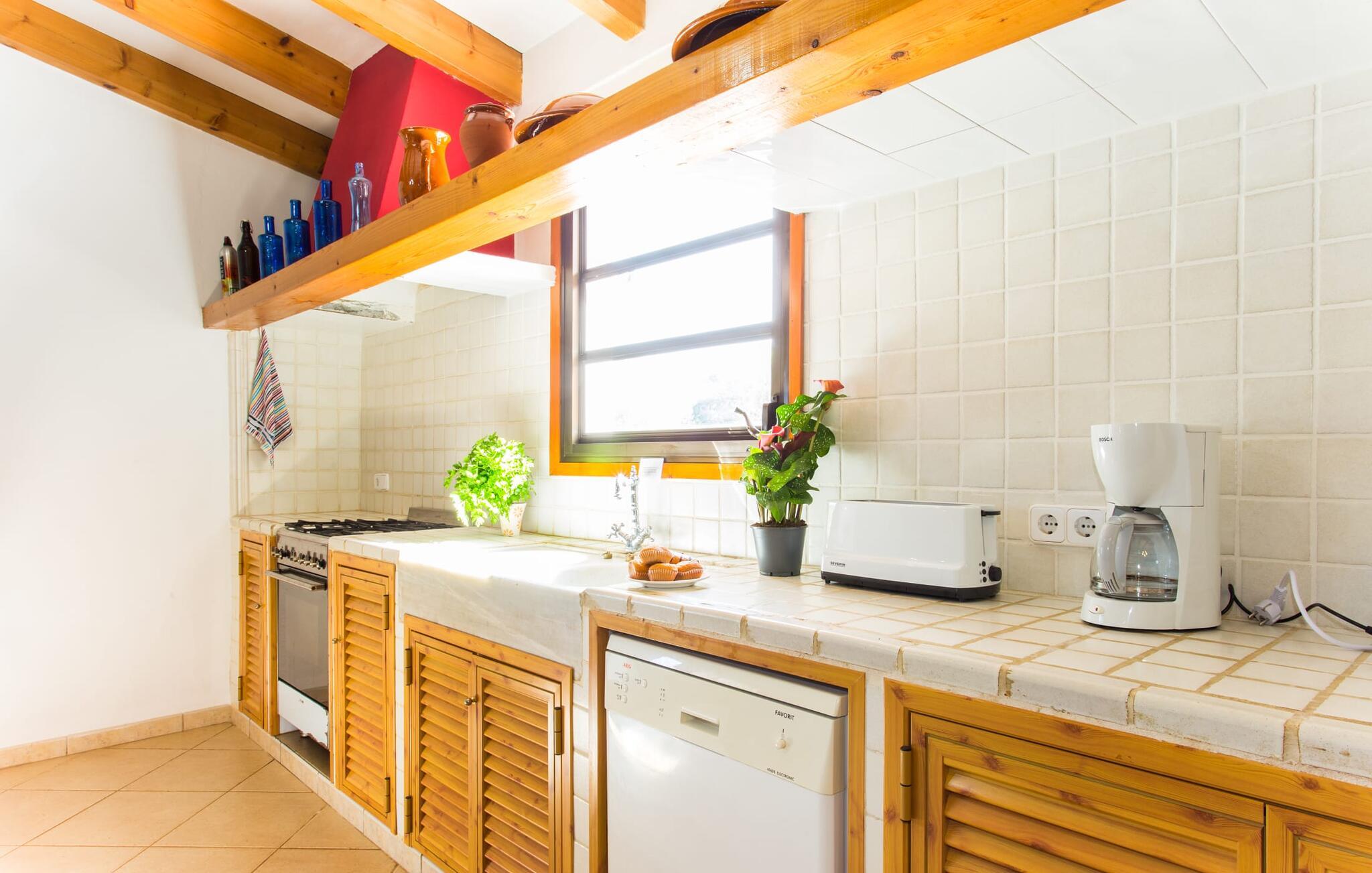 Inredningen i villan är också praktisk och prydlig, men ändå med det där lilla extra, så att du snabbt och enkelt kan hitta runt i huset: stort, rustikt vardagsrum/matsal med integrerat pentry, 3 sovrum, 2 badrum (och inte att förglömma nummer tre, utomhusområdet). badrum) - och det är allt. Så praktiskt att ha allt man behöver nära till hands, att kunna röra sig fritt och få tid över till det som är viktigt i livet: Att vara tillsammans, laga mat, grilla och äta tillsammans, bordtennistävlingar, mysiga kvällssamtal. Det finns också ett långbord där alla kan mötas, både inne och ute. Och pricken över i:et: Sovrummen har alla luftkonditionering och är inredda i en förnämlig, nästan asiatiskt inspirerad ton, med accenter i guld, olivgrönt och lila och ovanliga möbler. Även här sprider sig en lugnande atmosfär och naturligtvis en sval nattbris genom de öppna altandörrarna och genom dina drömmar, så att du vaknar utvilad på morgonen, även efter några glas vin kvällen innan. Kanske en hint av kaffe i morgonbrisen som blåser mot din säng ...