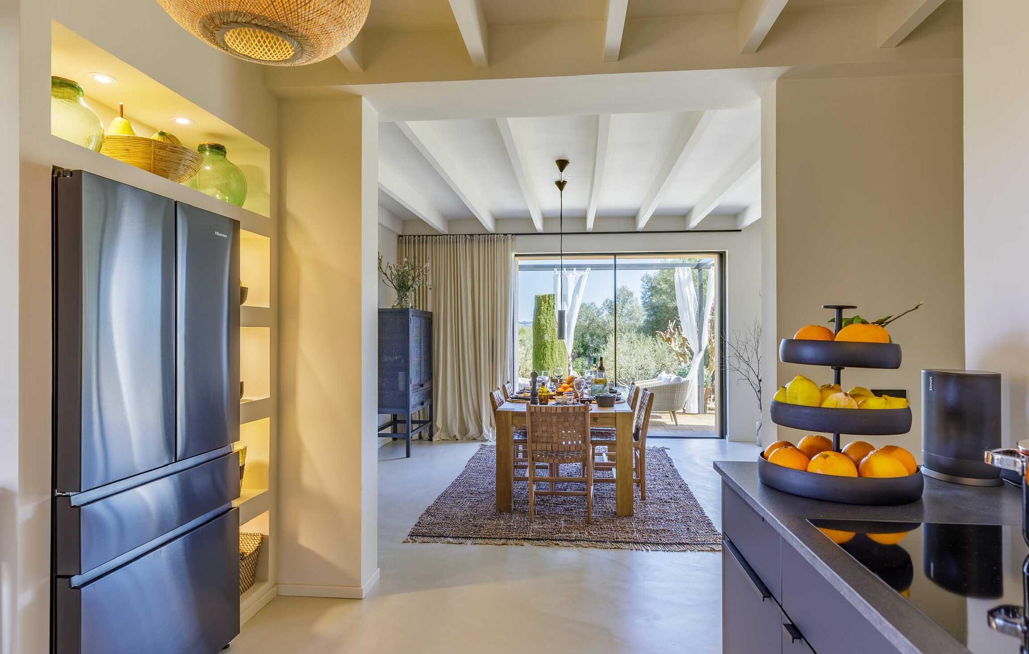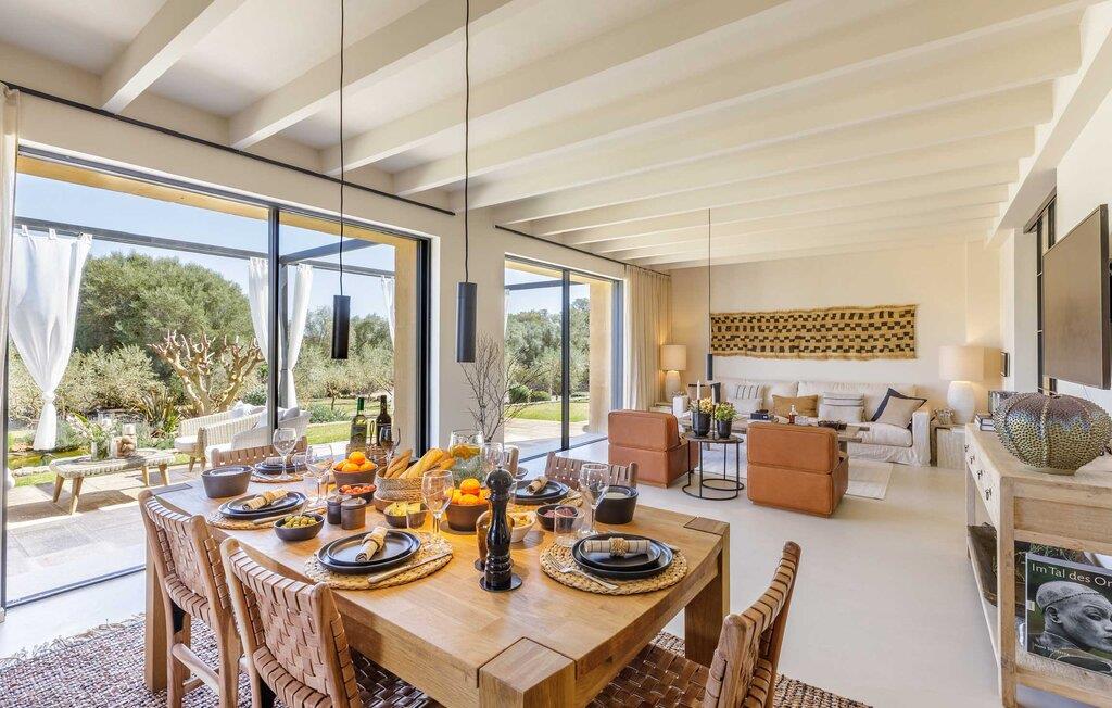 s: I ett drömlikt läge, omgivet av grönskande landskap och utsikt över Mallorcas inland mellan Llubi och Sineu i mitten av ön Mallorca, väntar en verkligt exceptionell finca på dig. Omgiven av 15 000 kvadratmeter mark med 274 olivträd, kan du njuta av lugn och avkoppling här och ändå vara på Playa de Muro-stranden på 20 minuter med bil. Öns huvudstad Palma ligger också bara 30 minuter bort med bil. Finca Ses Moreres är ett naturstenshus med en typisk lokal design på utsidan och kärleksfullt utvalda inredningsdetaljer på insidan. De individuellt utformade vardagsrummen med vardagsrummet med stora skjutdörrar som förbinder trädgården med vardagsrummet-matsalen, en vinterträdgård som kan öppnas helt, 4 individuellt inredda sovrum och 3 vackra badrum. Den underbara trädgården som omger fastigheten är uppdelad i olika områden och dessa ger på ett magiskt sätt förnyelse och skapar utrymmen för både individuella retreater och oförglömliga tider tillsammans. Poolen ligger inbäddad i trädgården och är direkt ansluten till huset via terrassen.