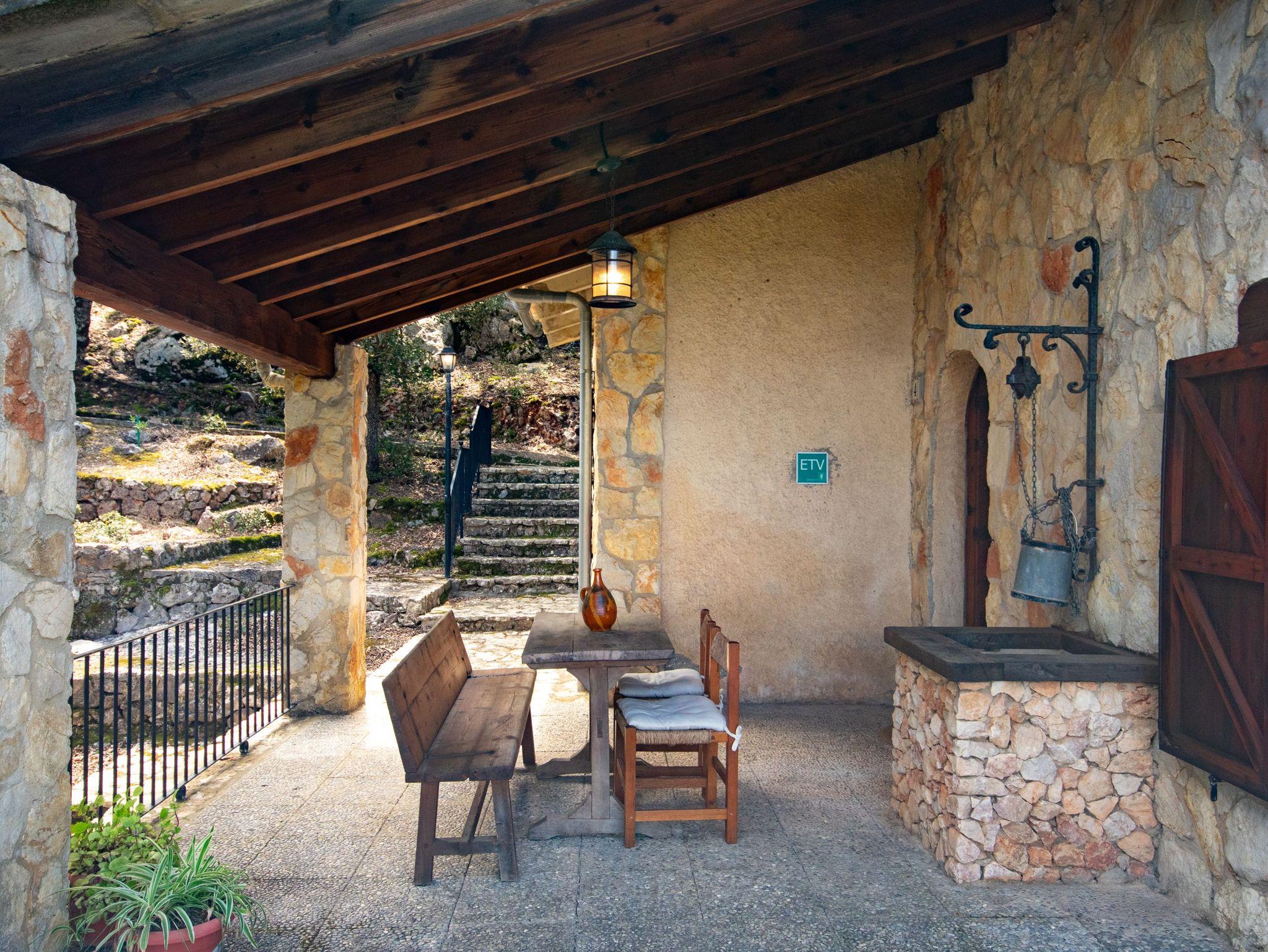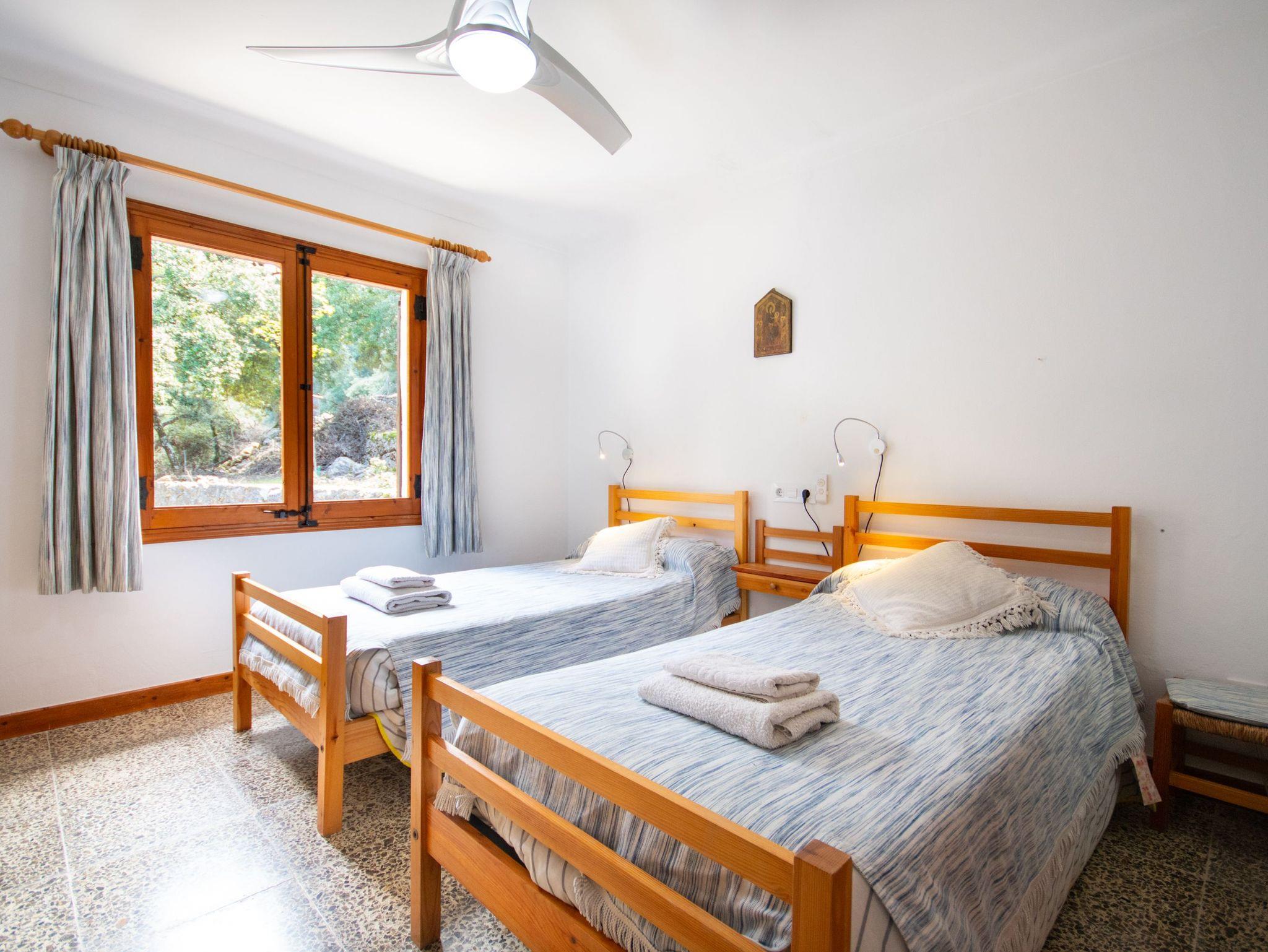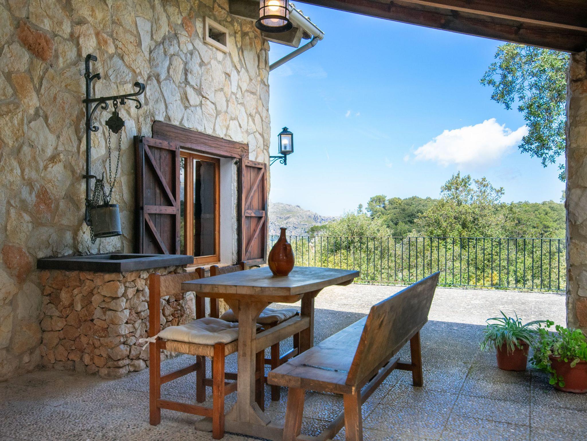 Das Haus bietet Platz für vier Personen und verfügt über zwei helle Schlafzimmer mit Einbauschränken und Fenstern mit Blick auf die mallorquinische Landschaft. Es gibt zwei komplette Badezimmer mit Dusche, ein großzügiges Wohn-Esszimmer mit Kamin und Holzofen ? perfekt für frische Abende ? sowie eine voll ausgestattete Küche mit Zugang zu den beeindruckenden Ausblicken der Natur.