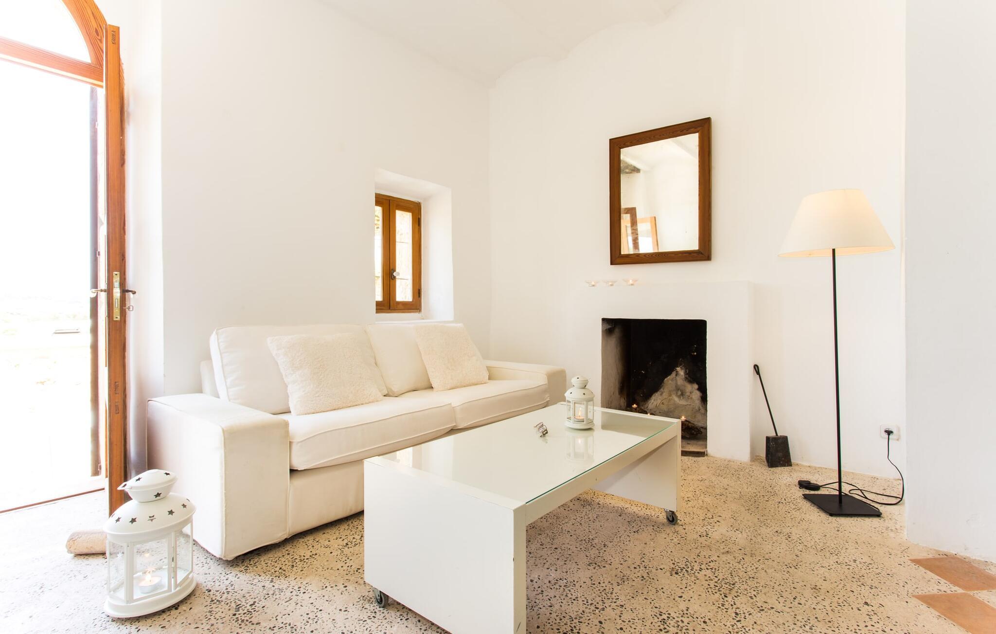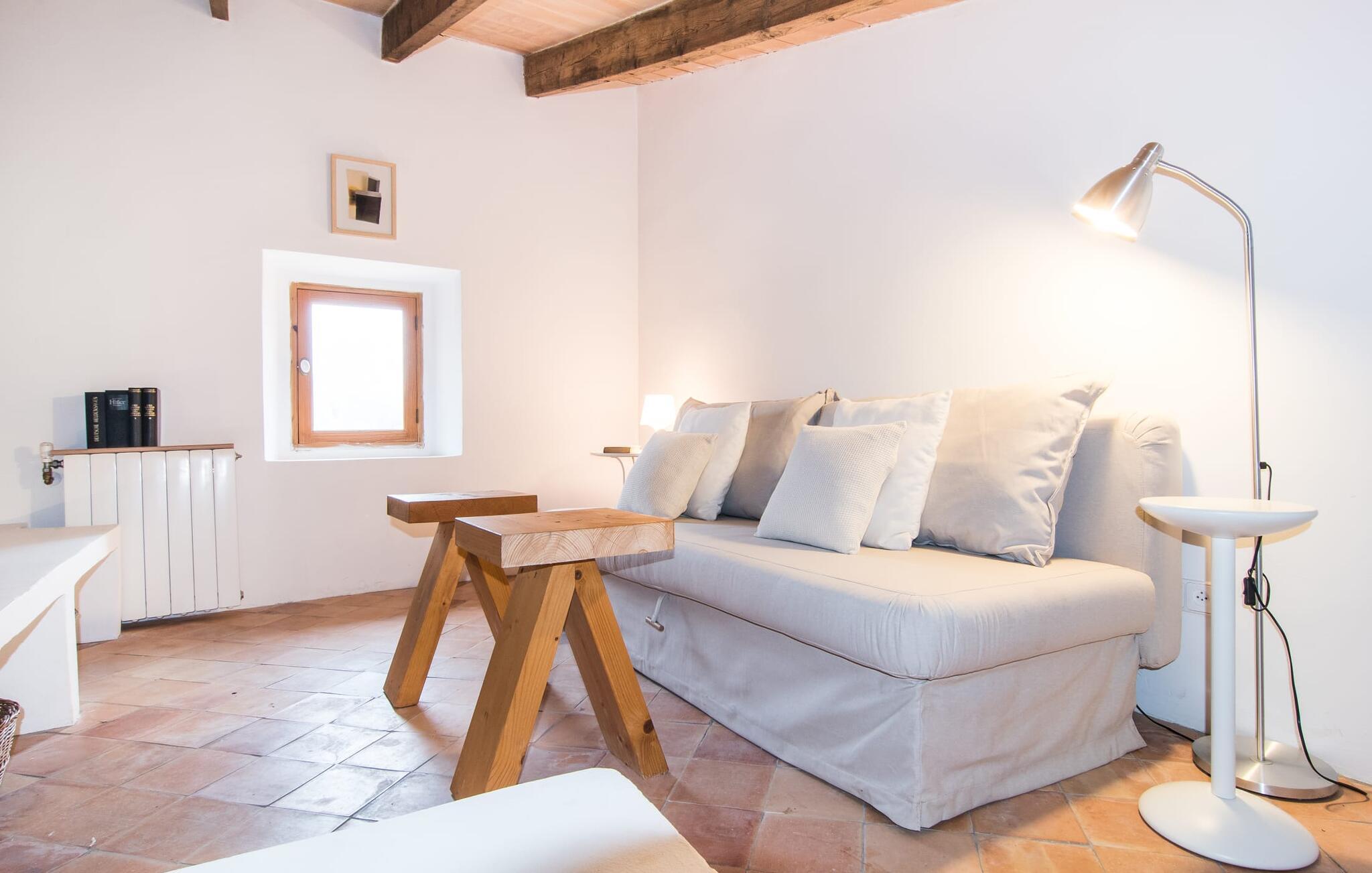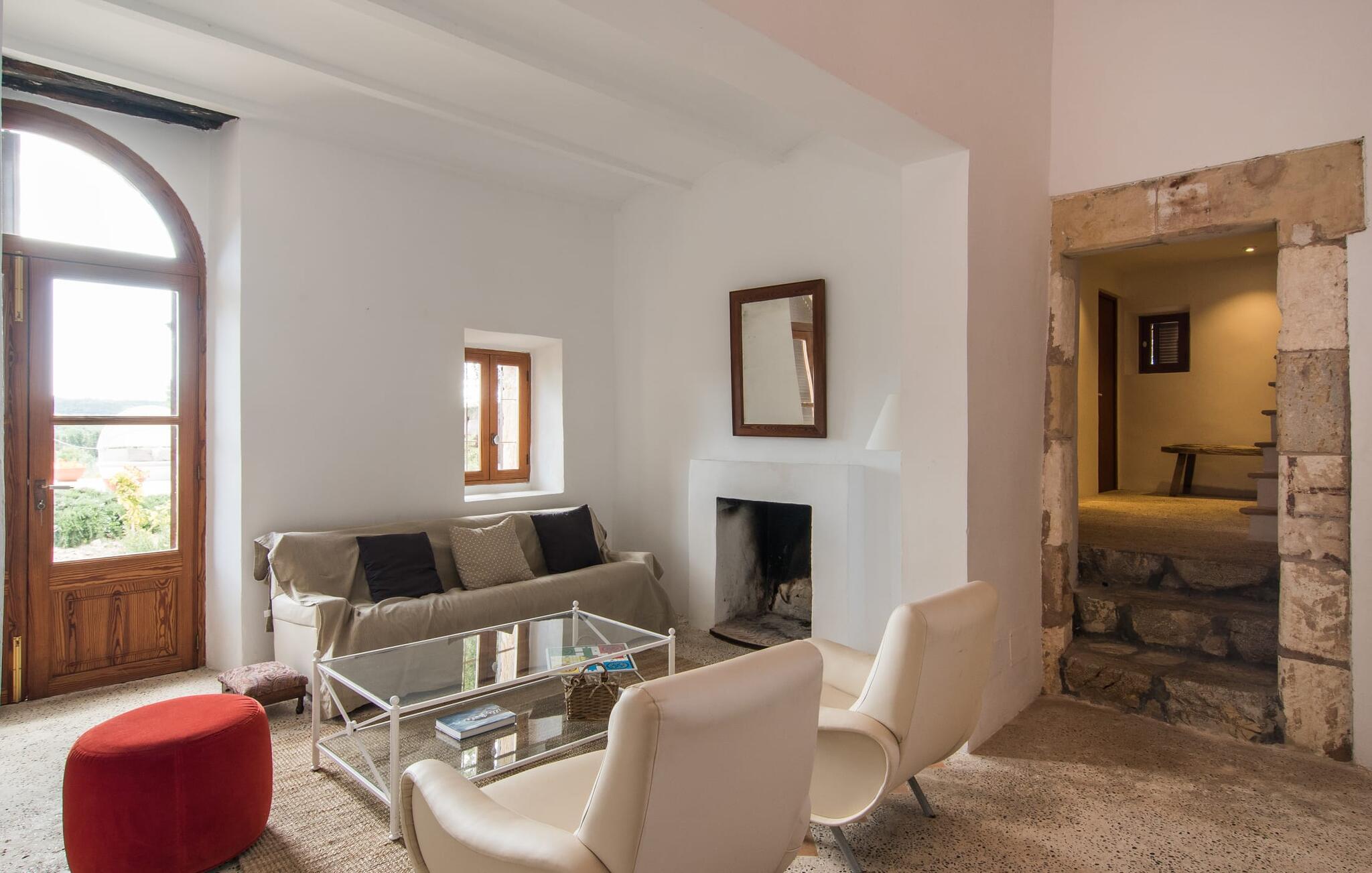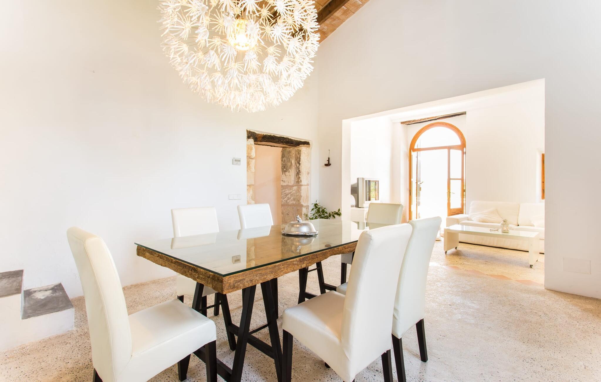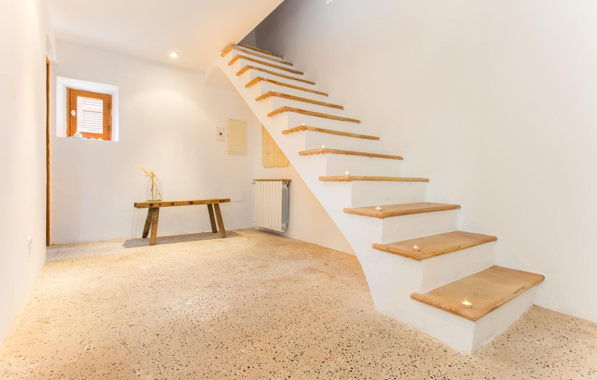 Villa Llucamar är en särskilt charmig fastighet som, bland många andra, framför allt imponerar med sin kärleksfulla inredning och traditionella arkitektur. Det grundades på 1200-talet och tillhörde en gång greve Ayamans, en ättling till James I, erövraren av Mallorca. Så snart man anländer inser man att man verkligen kan känna sig som hemma här: Det här är en smakfull plats att bo på, med en inbjudande modern men ändå typiskt mallorkinsk atmosfär. Utomhusområdet kännetecknas av dekorativa stigar, blomsterrabatter med medelhavsväxter och en mängd olika terrasser. Det vackra poolområdet erbjuder fantastisk utsikt över kullarna på östra delen av ön. Poolen är kaklad med en ljusgrön mosaik och kan lätt nås via trappan ingången. Sex solstolar och två parasoller är den perfekta utrustningen för soldyrkare, som kan koppla av här under Medelhavssolen och lämna vardagen bakom sig. På terrassen, som är täckt med naturmaterial, kan du antingen sitta bekvämt med en drink i den lilla loungehörnan eller njuta av en nylagad måltid vid matbordet. Under varma kvällar serveras smakrika grillkvällar där du kan tillaga och njuta av lokala ingredienser. Andra sittmöjligheter varierar runt fastigheten och ger möjlighet att hitta nya platser att koppla av på, plus att det är lätt att stuva undan.