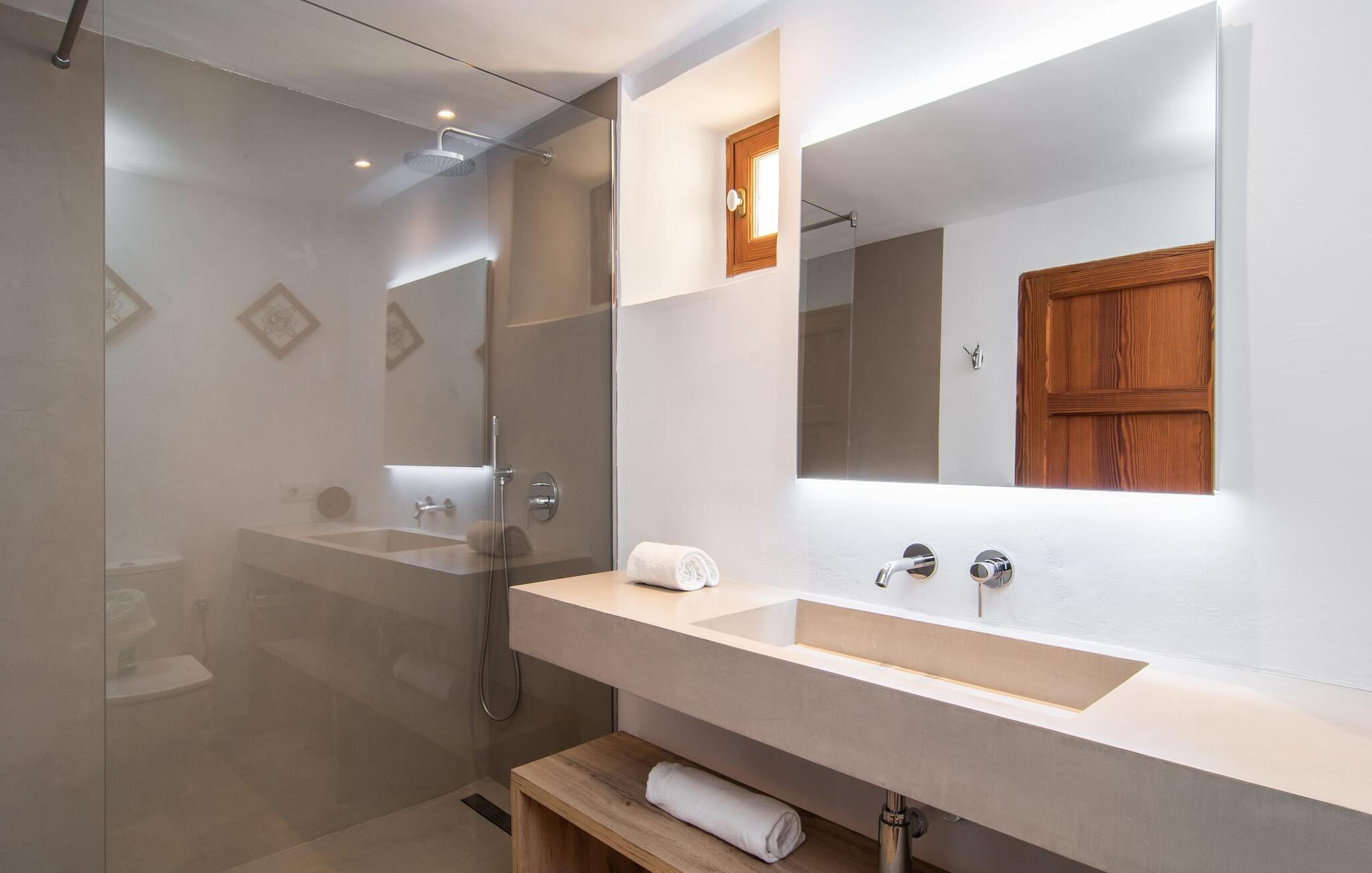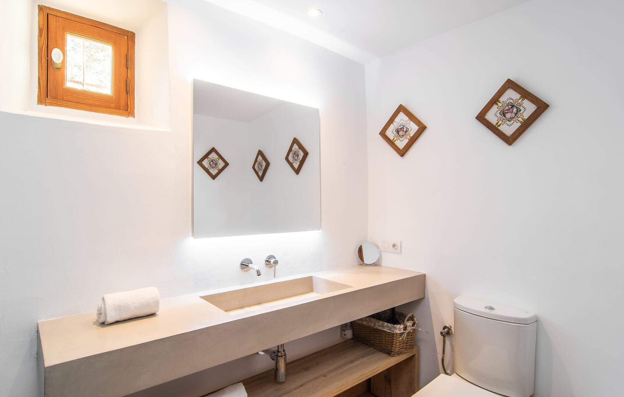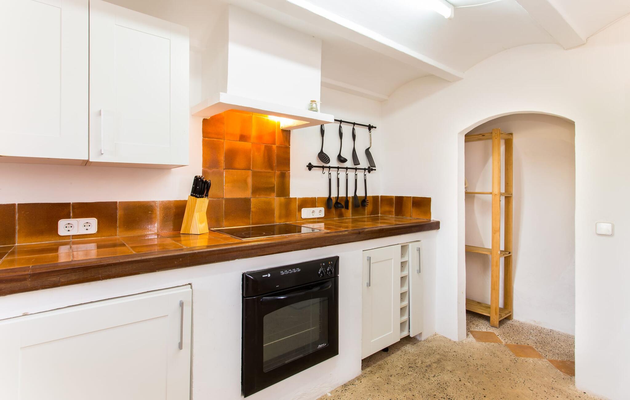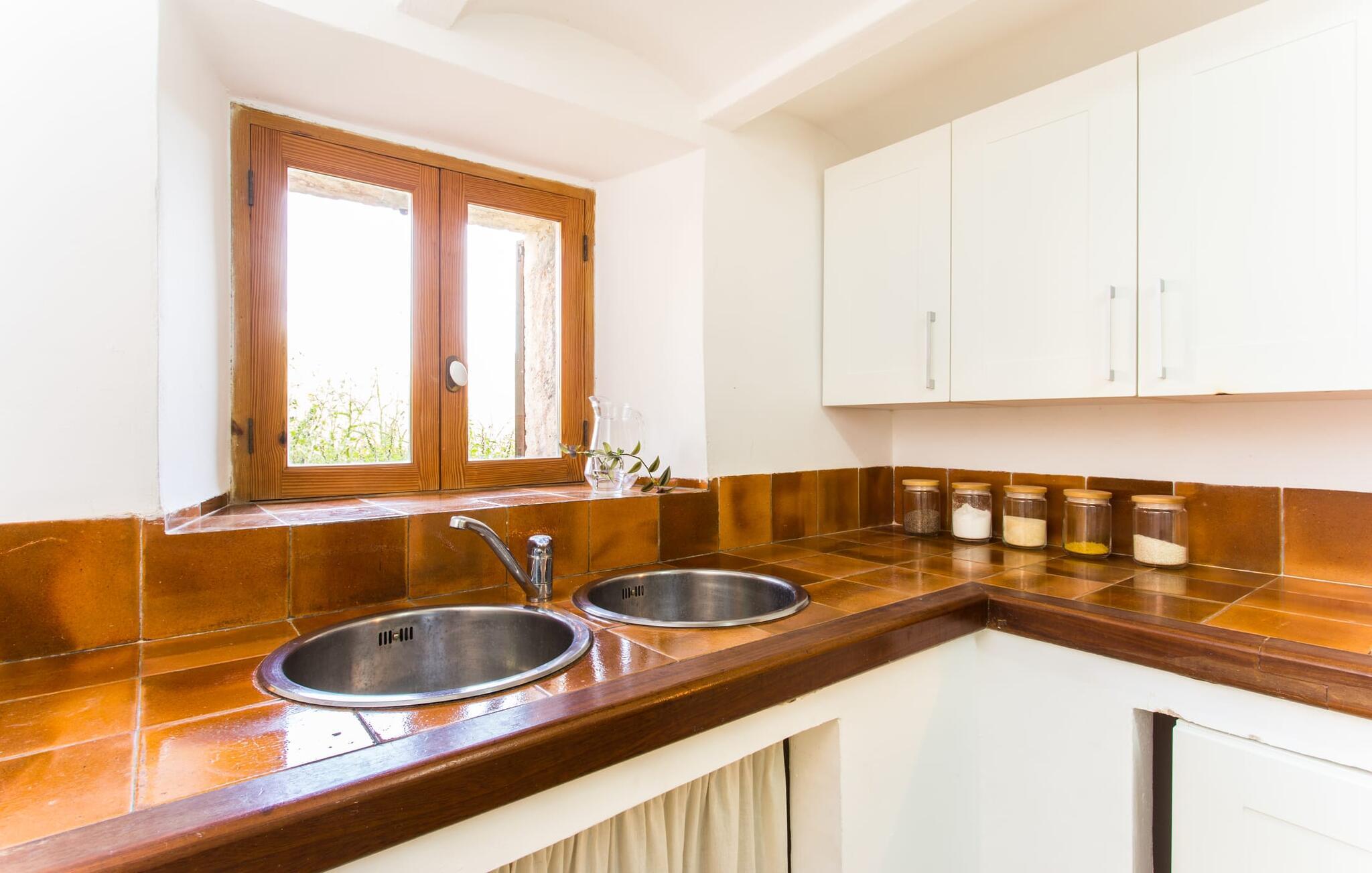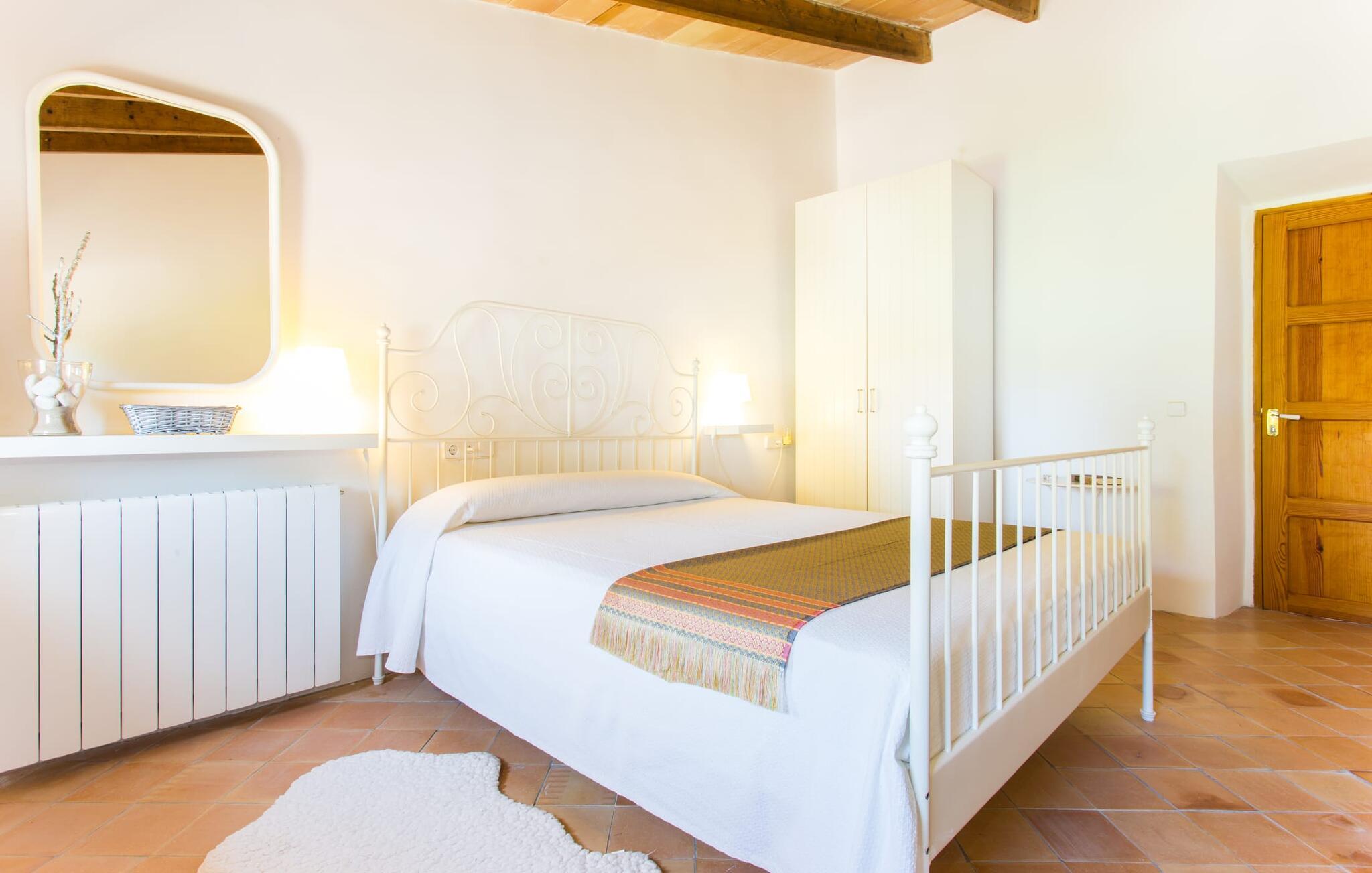 Villa Llucamar är en särskilt charmig fastighet som, bland många andra, framför allt imponerar med sin kärleksfulla inredning och traditionella arkitektur. Det grundades på 1200-talet och tillhörde en gång greve Ayamans, en ättling till James I, erövraren av Mallorca. Så snart man anländer inser man att man verkligen kan känna sig som hemma här: Det här är en smakfull plats att bo på, med en inbjudande modern men ändå typiskt mallorkinsk atmosfär. Utomhusområdet kännetecknas av dekorativa stigar, blomsterrabatter med medelhavsväxter och en mängd olika terrasser. Det vackra poolområdet erbjuder fantastisk utsikt över kullarna på östra delen av ön. Poolen är kaklad med en ljusgrön mosaik och kan lätt nås via trappan ingången. Sex solstolar och två parasoller är den perfekta utrustningen för soldyrkare, som kan koppla av här under Medelhavssolen och lämna vardagen bakom sig. På terrassen, som är täckt med naturmaterial, kan du antingen sitta bekvämt med en drink i den lilla loungehörnan eller njuta av en nylagad måltid vid matbordet. Under varma kvällar serveras smakrika grillkvällar där du kan tillaga och njuta av lokala ingredienser. Andra sittmöjligheter varierar runt fastigheten och ger möjlighet att hitta nya platser att koppla av på, plus att det är lätt att stuva undan.