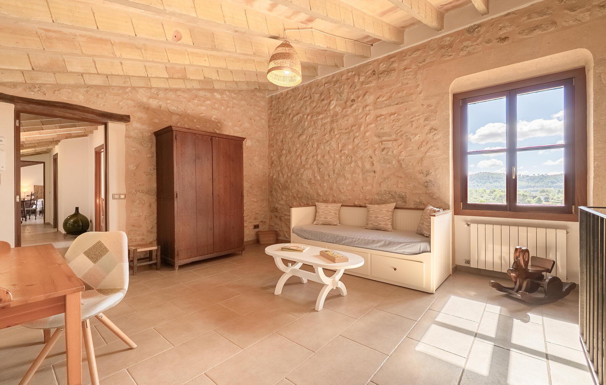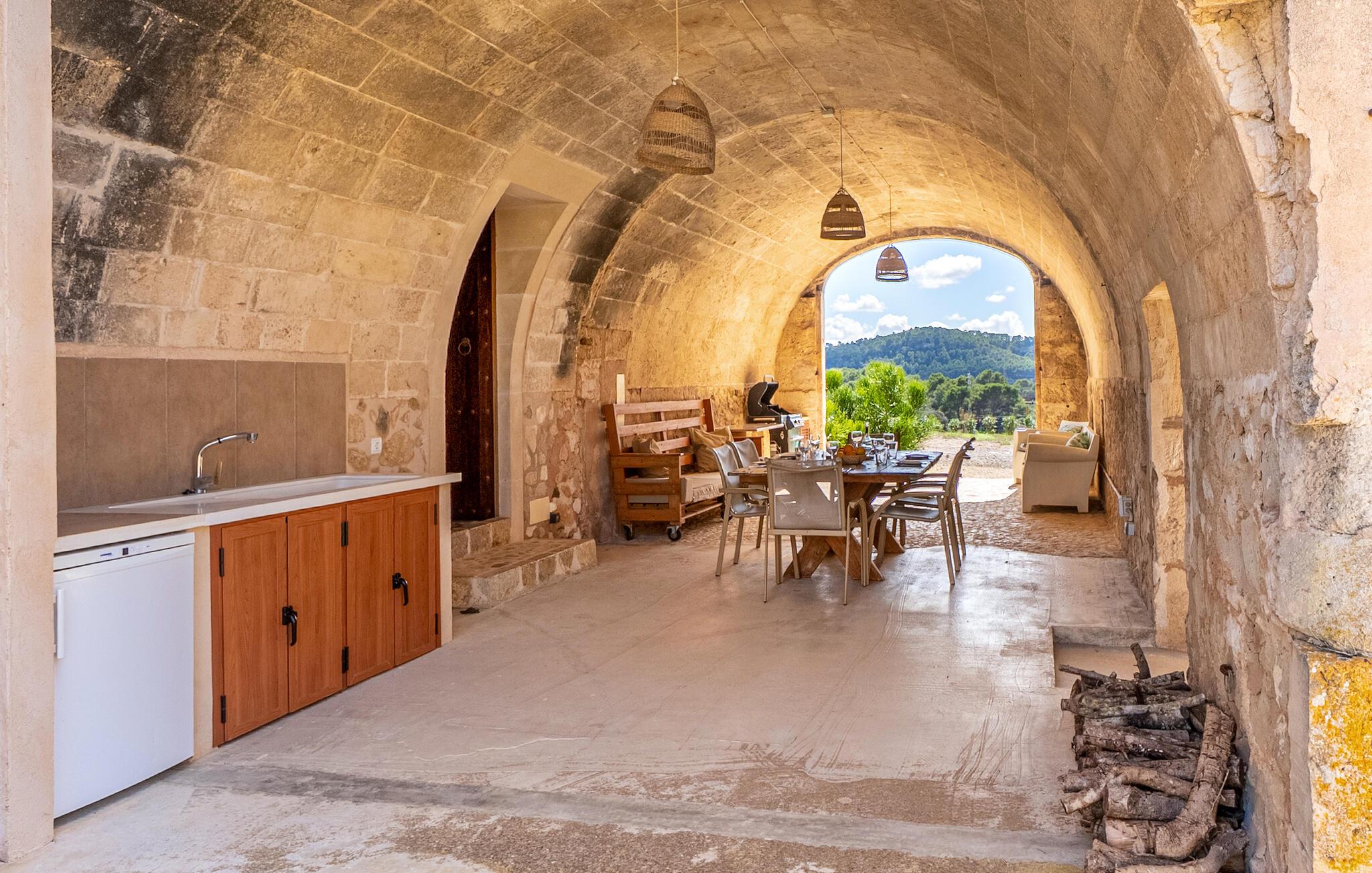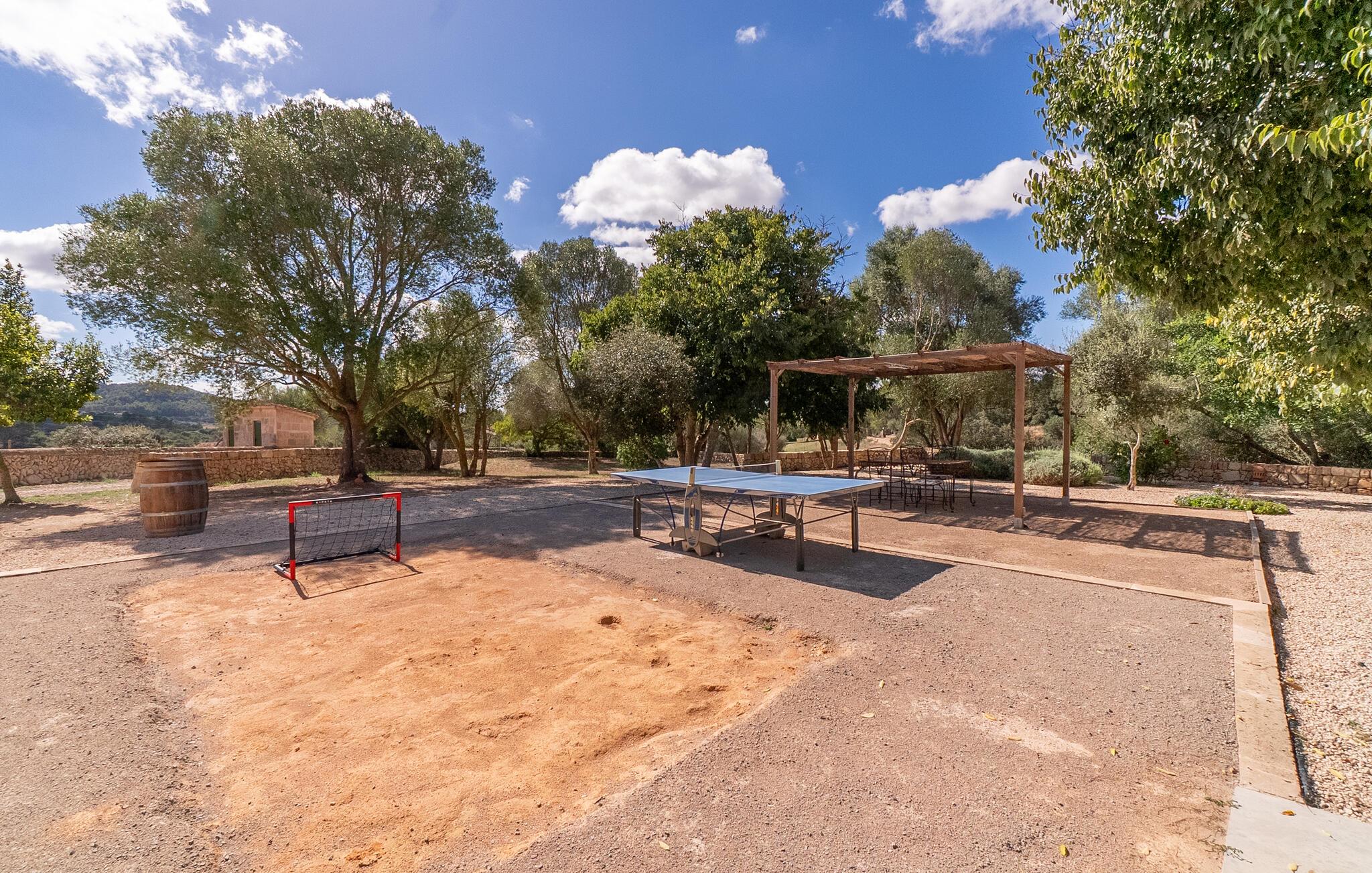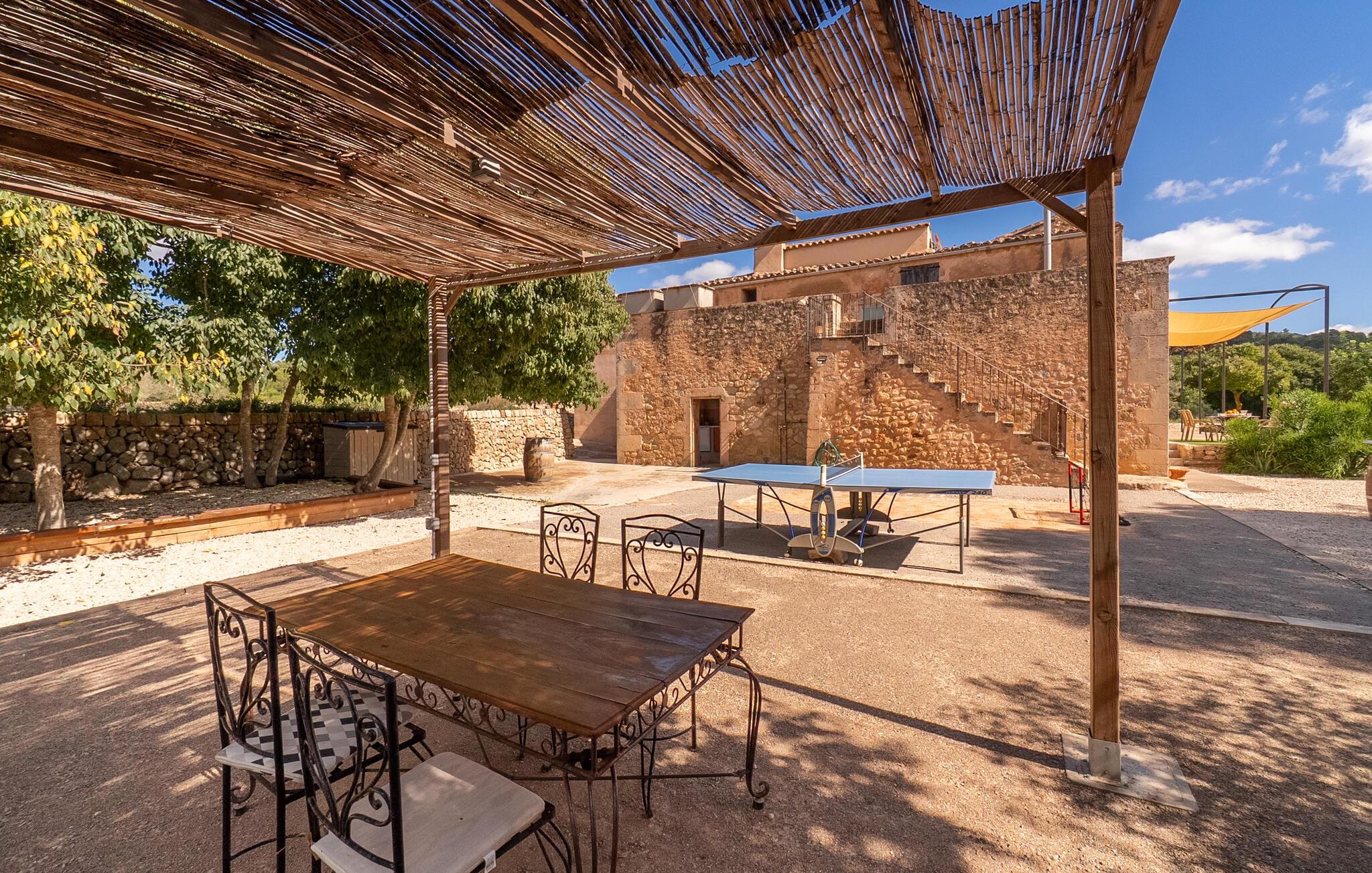 Utomhusområdet på denna barnvänliga finca har också några härliga extrafunktioner för hela familjen. Servera dig själv färskpressad apelsinjuice till frukost, ta ett lugnt dopp i poolen och beundra den magnifika utsikten från solstolen, medan andra har kul vid bordtennisbordet, på bowlingbanan eller spelar fotboll. Unna dig en svalkande drink i den skuggiga loungen och anordna stämningsfulla grillkvällar under de gamla valven.