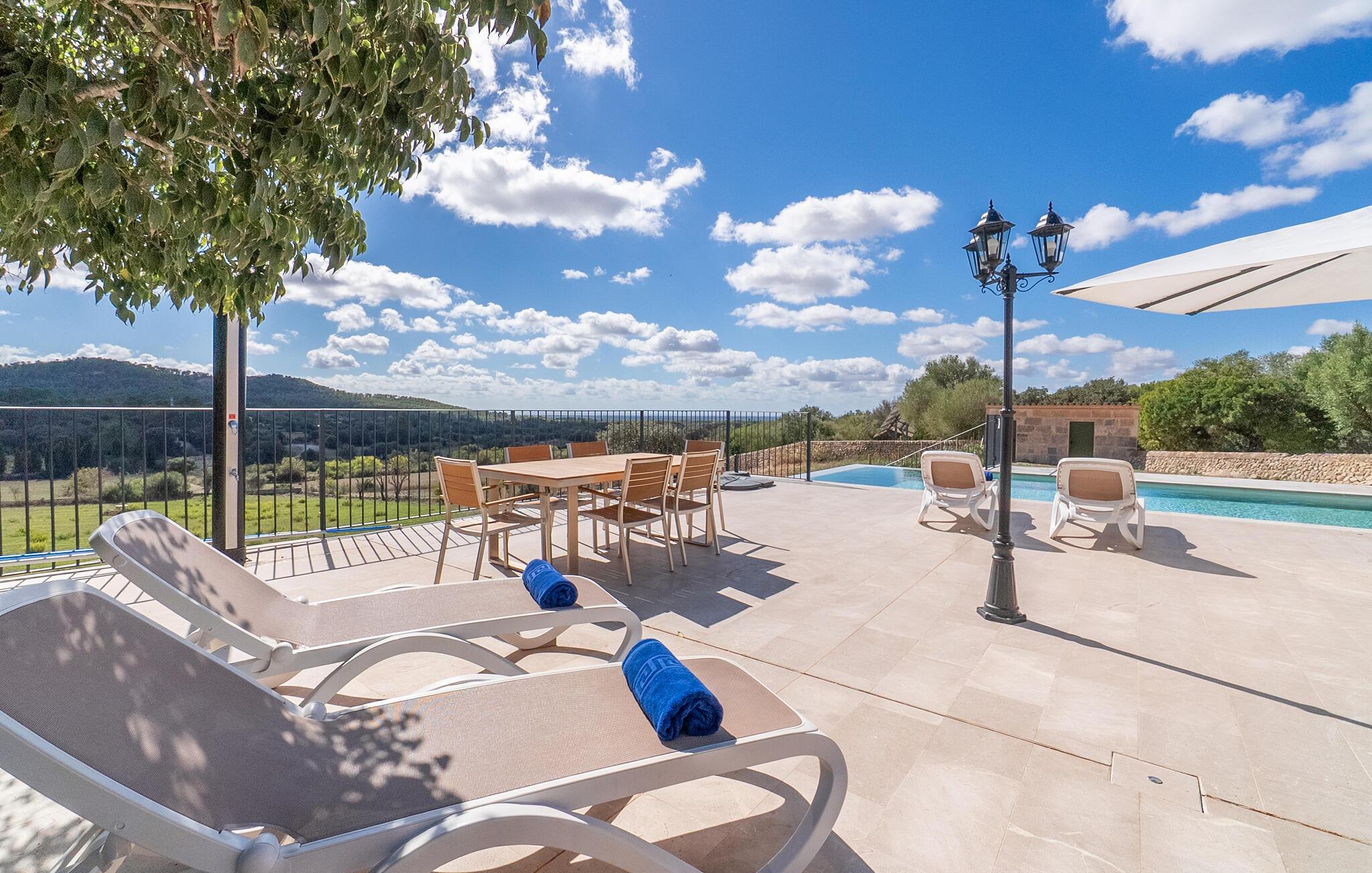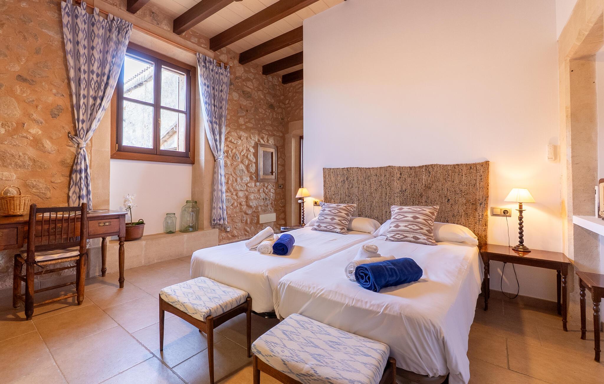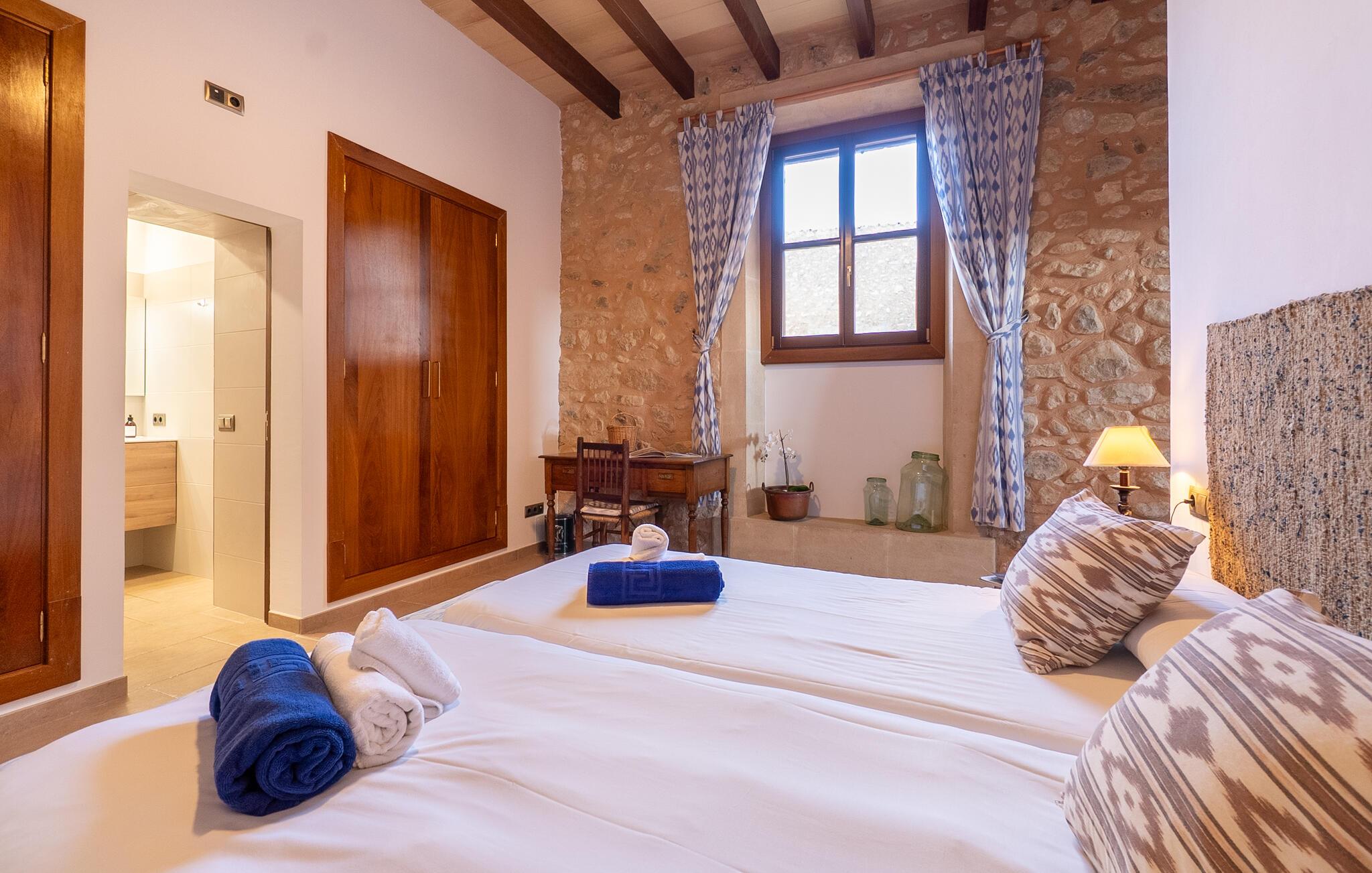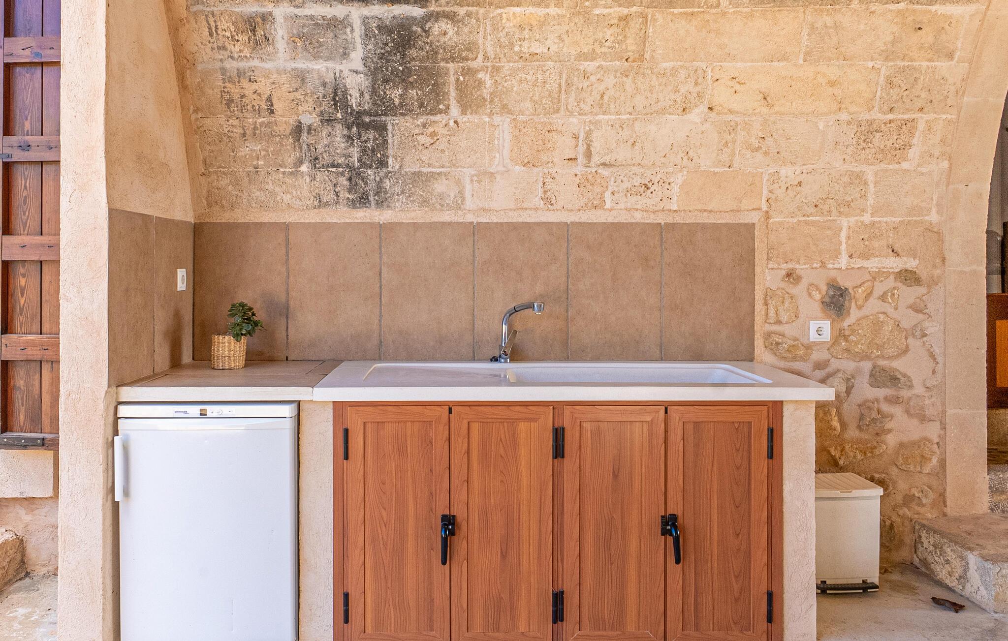 Utomhusområdet på denna barnvänliga finca har också några härliga extrafunktioner för hela familjen. Servera dig själv färskpressad apelsinjuice till frukost, ta ett lugnt dopp i poolen och beundra den magnifika utsikten från solstolen, medan andra har kul vid bordtennisbordet, på bowlingbanan eller spelar fotboll. Unna dig en svalkande drink i den skuggiga loungen och anordna stämningsfulla grillkvällar under de gamla valven.