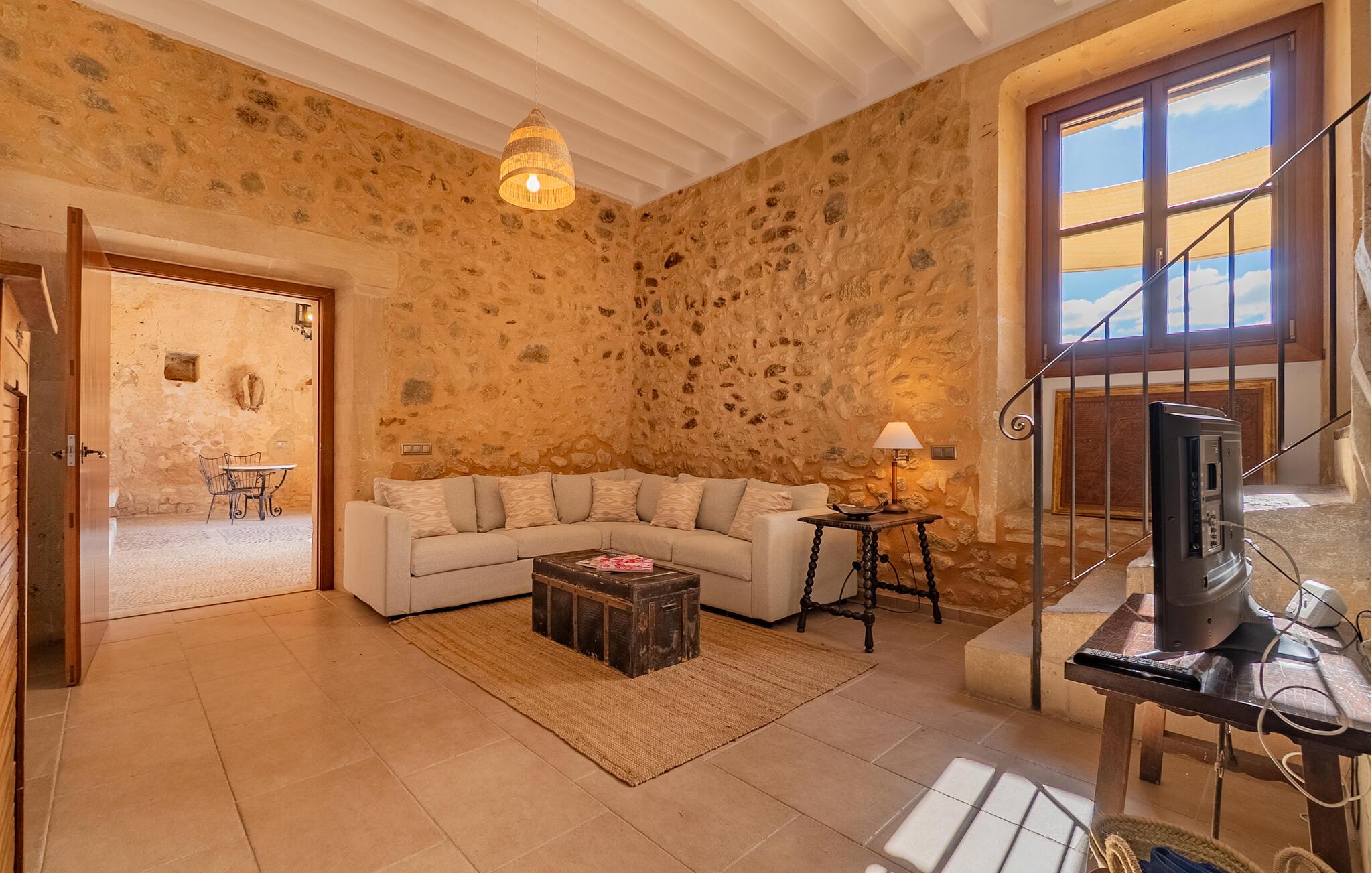 Omgiven av ett pittoreskt, mjukt böljande naturlandskap, välkomnar denna vackra mallorkinska finca dig med en lyckad blandning av rustik charm och maximal komfort när som helst på året. Förvandla färska råvaror från marknaden till läckra medelhavsrätter, ät i den autentiska atmosfären i den inbjudande matsalen och efter en lång dag under den blå himlen, gör dig bekväm i vardagsrummet för en filmkväll eller stimulerande samtal över ett glas vin.