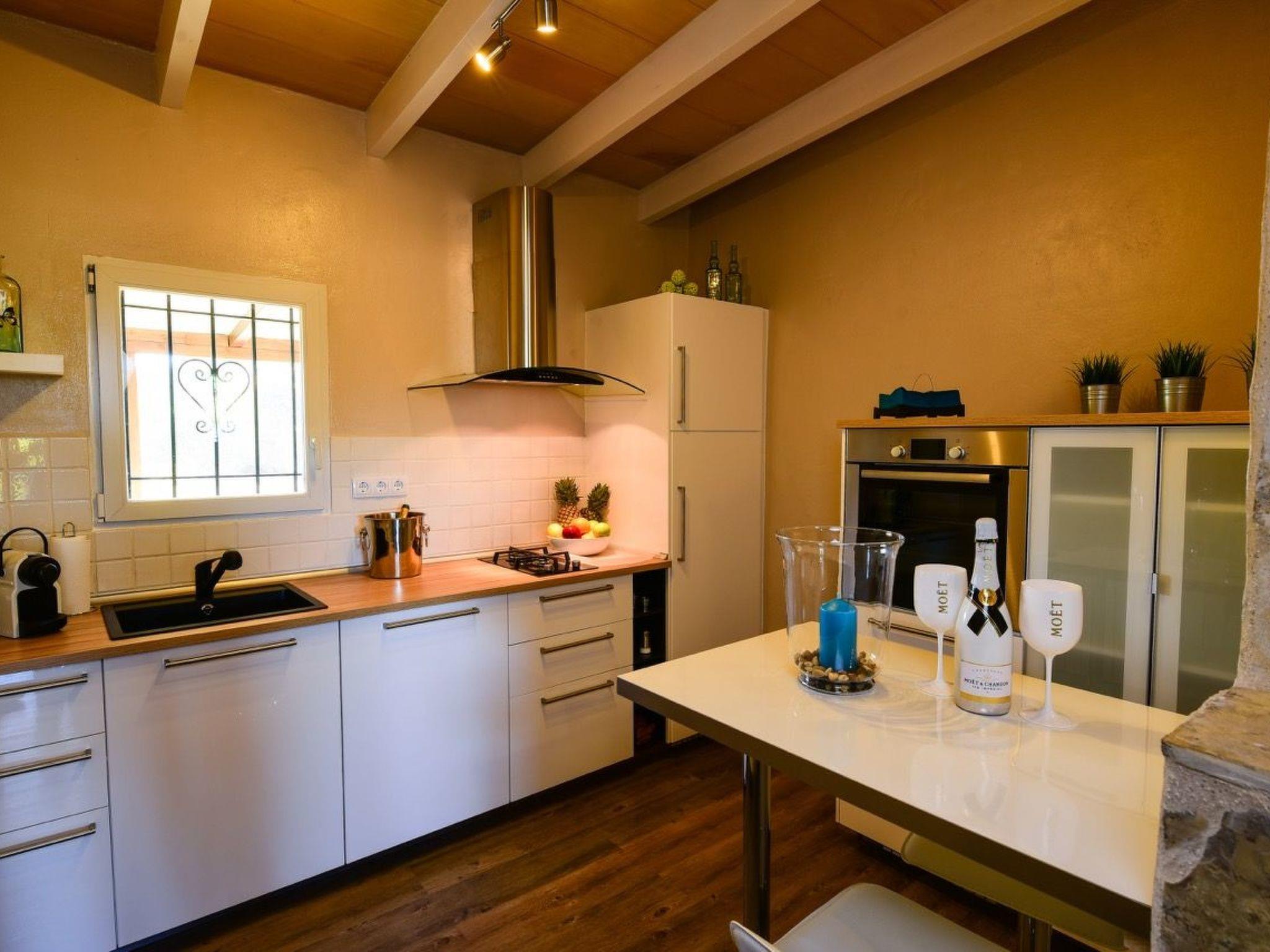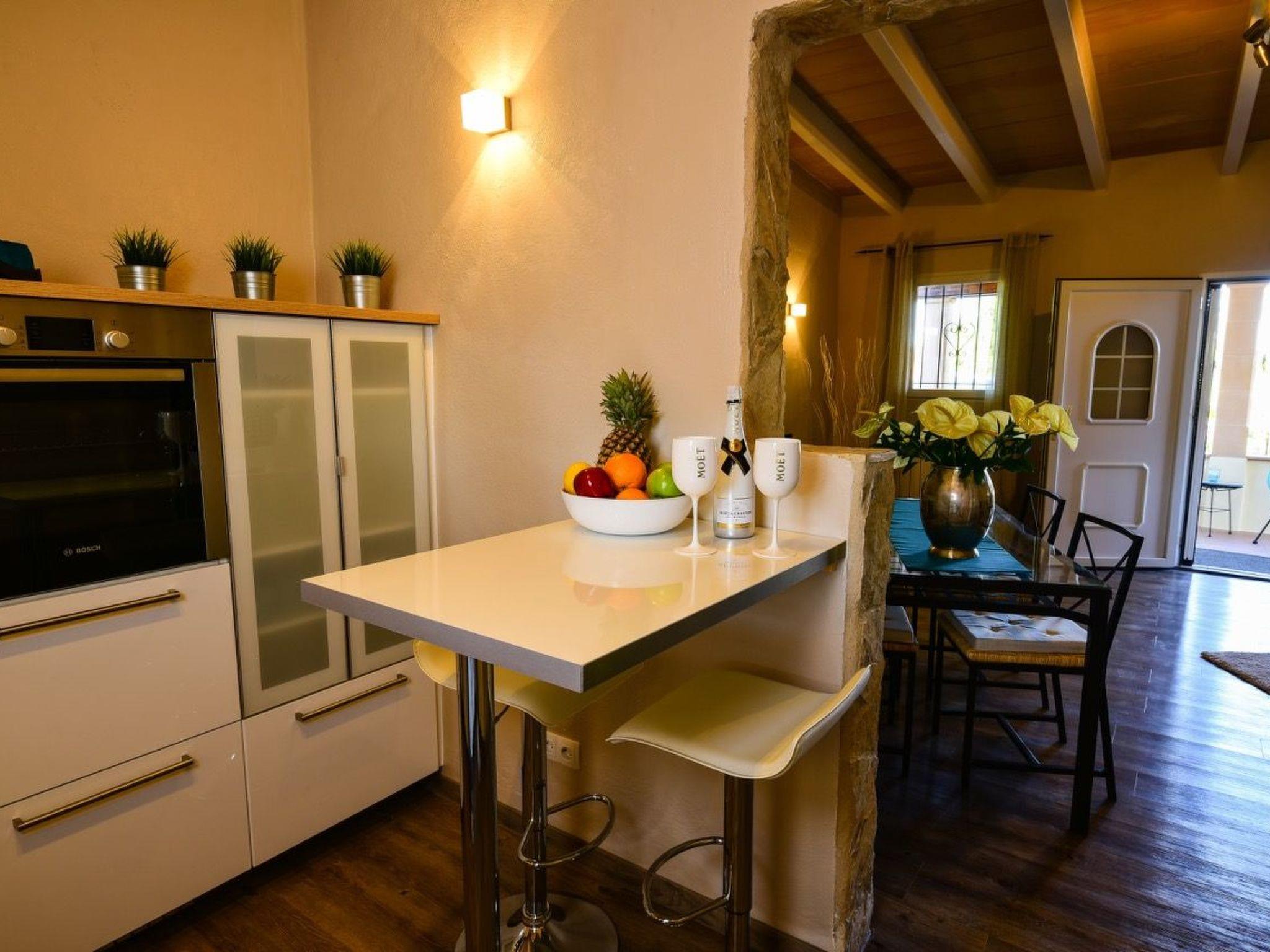 The exclusive, ecological finca offers space for up to four people with solar power and well water. The original character of the finca has been completely renovated with great attention to detail and delights its guests with every conceivable luxury. The house has approx. 80m² + 40m² covered terrace, two bedrooms with two modern en suite bathrooms with shower and an outdoor shower, a fully equipped modern kitchen and a living/dining room with fireplace. One of the elegant double bedrooms has a king-size bed, the other a queen-size bed. Each bedroom has its own bathroom. The fully equipped luxury kitchen is fitted with a Néspresso coffee machine. Free Wi-Fi, LED TVs with German programmes, air conditioning, central heating and a washing machine are of course also available.