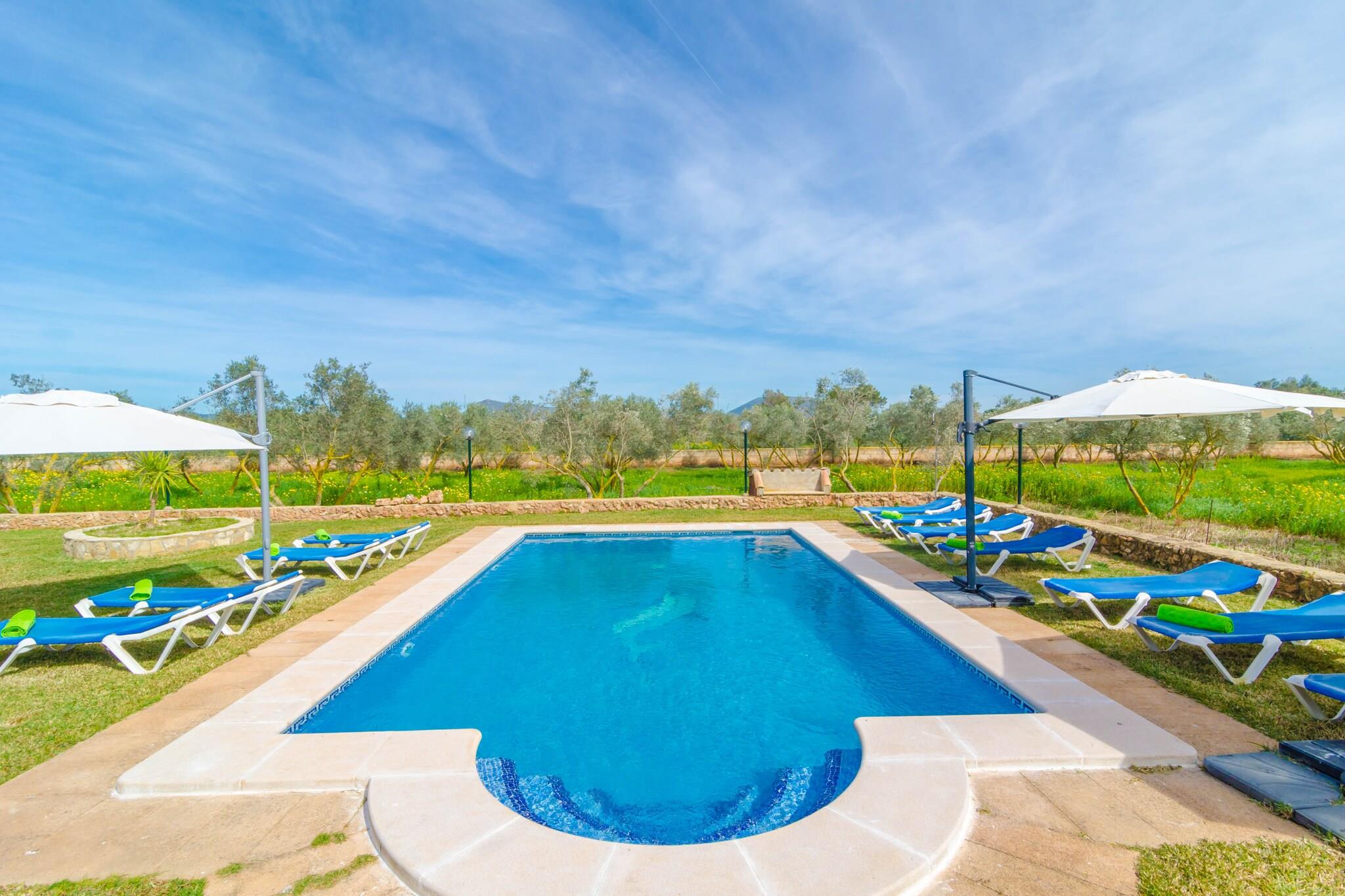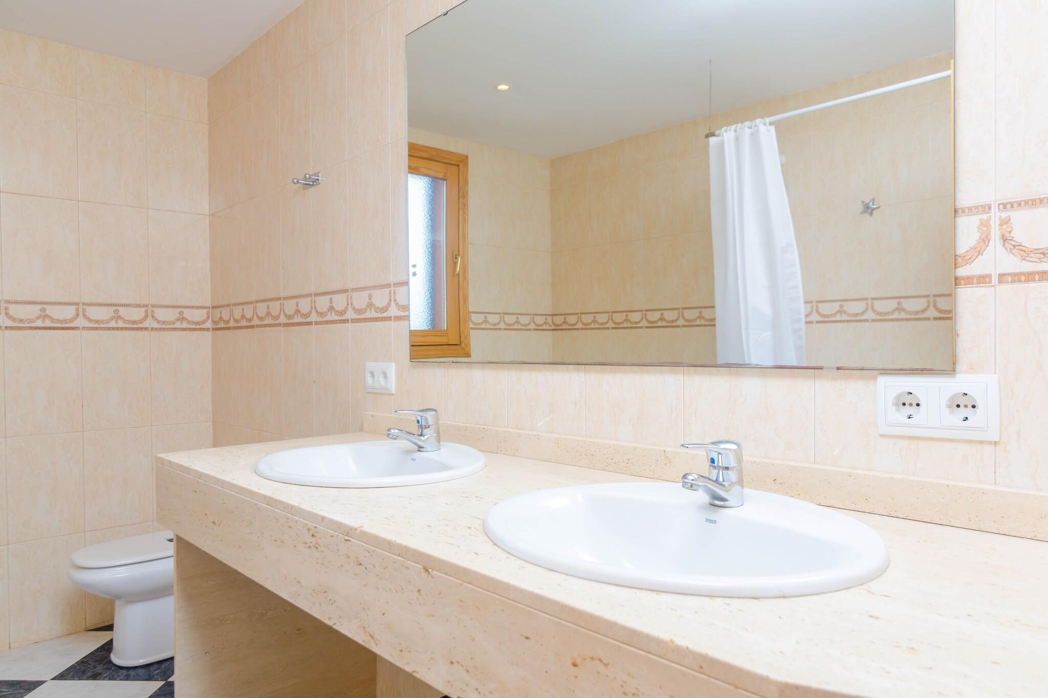Denna privata villa har en stor 10m x 5m klorpool med ett djup från 0,9m till 1,9m, omgiven av solstolar, en uppfriskande utomhusdusch och rymliga terrasser för grillning och avkoppling. Den välskötta trädgården erbjuder gott om utrymme för barn att leka, och utan direkta grannar kommer du att njuta av fullständig avskildhet. Huset ligger inom en 11 000 m² inhägnad tomt. Interiören blandar autentisk charm med moderna bekvämligheter. Det rymliga vardagsrummet med satellit-TV och en stor matplats är perfekt för familjemåltider. En andra, mindre lounge med luftkonditionering och en vedspis erbjuder en mysig oas. Det fullt utrustade köket har en keramisk spis, husgeråd och en diskmaskin, medan tvättstugan har en tvättmaskin, torktumlare, strykjärn och strykbräda. På bottenvåningen finns ett dubbelrum med eget badrum, badkar, luftkonditionering, garderob och tillgång till terrass. En separat toalett betjänar bottenvåningen. På övervåningen finns ytterligare fyra sovrum, tre med dubbelsängar och ett med två singlar. Ett sovrum har ett eget badrum med bidé och badkar. Alla sovrum är utrustade med luftkonditionering, garderober och tillgång till en terrass. På begäran finns två babysängar och en barnstol tillgängliga. Ett andra badrum med badkar och bidé finns också på denna våning. Villan ligger inom 15 minuter från Son Antem Golf, stranden S'Arenal och Cala Blava. Staden Llucmajor ligger 3,5 km bort, och Palma de Mallorca, med sin katedral och gamla stan, ligger bara 20 km bort. Husdjur är välkomna; evenemang är inte tillåtna. Det finns parkering för 4 bilar. Som svar på Coronaviruset (COVID-19) gäller ytterligare säkerhets- och sanitetsåtgärder på denna fastighet.