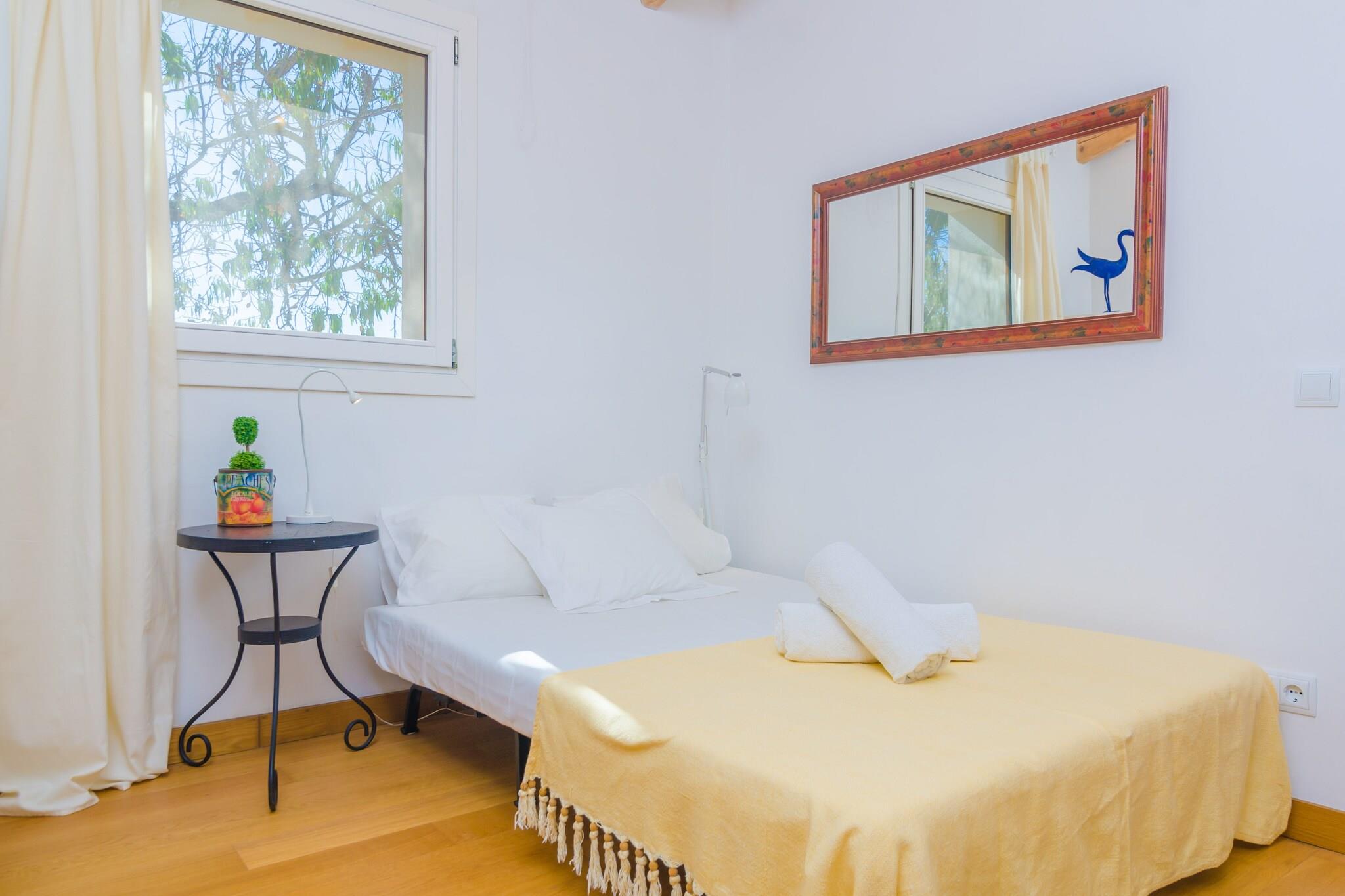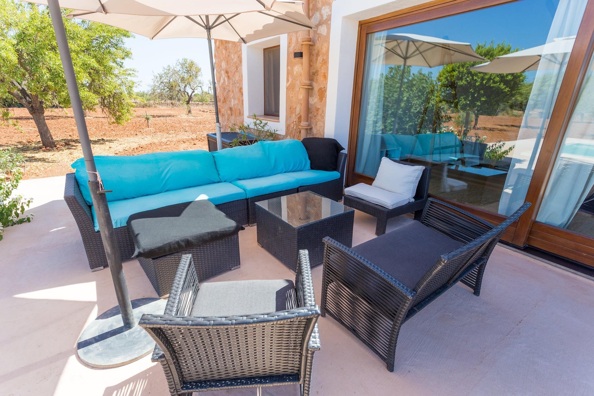 Privat villa vid poolen Denna charmiga villa i Llucmajor erbjuder modern komfort med rustika inslag och full avskildhet. Gästerna kan njuta av den 10 x 5 m saltade poolen (1,1–1,8 m djup), solstolar, en sittgrupp och en terrass med grill. Inuti villan har ett vardagsrum med utsikt över poolen, matplats, modernt kök med gasspis och ugn, två vardagsrum, tre sovrum, två badrum med badkar och en tvättmaskin, strykjärn och strykbräda. Luftkonditionering, spjälsäng och barnstol finns tillgängliga på begäran. Exteriör parkering för tre bilar ingår. Husdjur och evenemang är inte tillåtna. Aktiviteter och utflykter i närheten Bara 12 km från stranden Sa Ràpita och Es Trenc kan gästerna njuta av turkost vatten och fin sand. Golfentusiaster kan nå Son Antem-banan 13,8 km bort. Llucmajor erbjuder lokala marknader på onsdagar, fredagar och söndagar, samt cykelvägar, natursköna promenader på landsbygden och närliggande kulturattraktioner för sightseeing. Mat, shopping och bekvämligheter Restauranger, stormarknader, banker, apotek och kollektivtrafik ligger alla inom 7–8 km i Llucmajor. Palmas flygplats ligger 25,7 km bort, Palmas tågstation 33,8 km och Port de Palma 36,2 km, och erbjuder enkel tillgång till ön samtidigt som du njuter av villans lugna miljö och avskildhet.