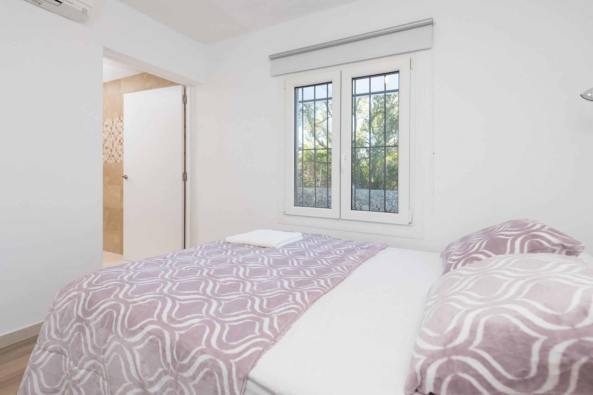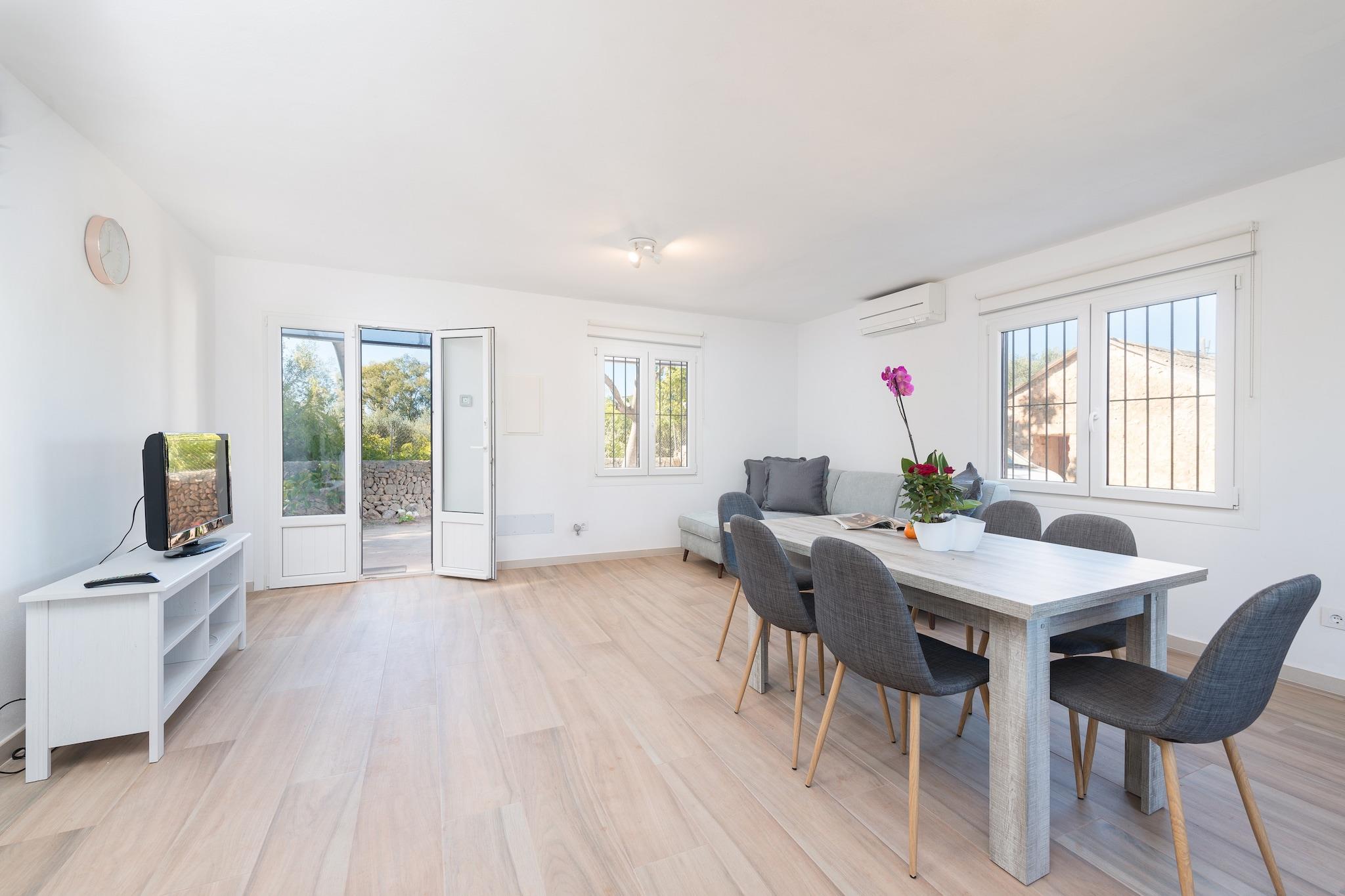Huset i sommarstil omgivet av en vacker tomt full av citron- och apelsinträd inbjuder till en avkopplande vistelse i total lugn och avskildhet. Varje morgon kan du gå ut och frossa i de första solstrålarna medan du fläktar den rena landsbygden och den friska gräsluften. Sedan kan du njuta av en utsökt frukost och klättra upp på soldäcket för att sola på en av de 4 solstolarna medan du beundrar utsikten över fälten. Grillen kommer att vara redo för att avsluta din dag spektakulärt! Invändigt överraskar huset med en total modern och förnyad stil. Ett rymligt, luftkonditionerat område välkomnar dig, med vardagsrummet, matsalen och köket tillsammans. Den bekväma soffan är perfekt att sitta och titta på TV eller bara vila efter en saftig bankett. Köket har en keramikskiva, ugn och allt du behöver för att laga mat under din semester. Tvättstugan har tvättmaskin, strykjärn och strykbräda. En liten korridor leder till de två sovrummen, båda med garderob. Den ena har en dubbelsäng, AC och ett eget duschbadrum. Den andra har två enkelsängar, en fläkt och en elektrisk värmare. Det finns ett andra badrum med dusch för resten av huset. Slutligen kan vi förbereda en spjälsäng och en barnstol om du reser med ditt barn. Omgivningarna för detta boende är perfekta för dem som letar efter en lantlig och fridfull semester långt borta från vardagens stress. Staden Llucmajor ligger dock cirka 5 km bort, cirka 5 minuters bilresa för att nå stadens centrum där du hittar alla nödvändiga tjänster som restauranger, kaféer och stormarknader. Närmaste strand är den i Arenal, cirka 11,8 km bort, även om området har fantastiska stränder och klippiga vikar som är värda ett besök. Som svar på Coronaviruset (COVID-19) gäller ytterligare säkerhets- och sanitetsåtgärder på denna fastighet. Turistlicens: ETV/12630