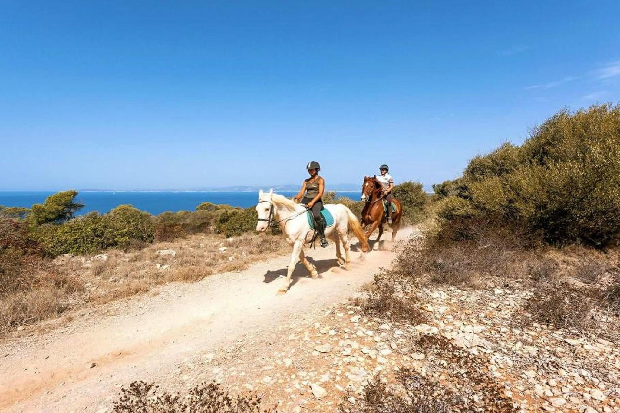 Bottenvåningen: (Entré(kan nås från utsidan), öppet kök(Kokplattor(Spis med 4 kokplattor, gas), brödrost, Fläkt, kaffebryggare, ugn, mikrovågsugn, kyl och frys), Vardags- och sovrum(bäddsoffa(140 x 200 cm), TV(platt-tv), matbord, sitthörna), sovrum(dubbelsäng(135 x 190 cm)), badrum(dusch, handfat, toalett ), värme, luftkonditionering, terrass(privat, 15 m2)) tvättmaskin, fransk balkong, trädgård(delas med andra gäster ), trädgårdsmöbler, swimmingpool(delas med andra gäster , utanför, varav en del för barn (50cm djup), opened from May upto and including Sep), swimmingpool(delas med andra gäster , utanför, varav en del för barn (50cm djup), opened from May upto and including Sep), tennisbana(delas med andra gäster ), lekplats(delas med andra gäster ), fotbollsmål(delas med andra gäster ), strykbräda, strykjärn
