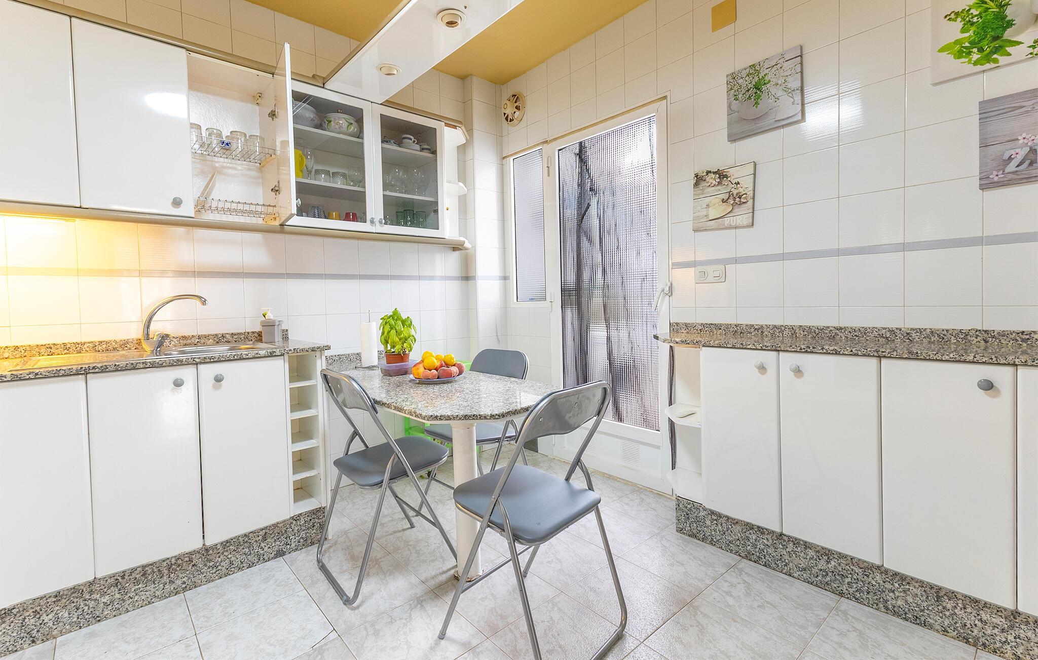 I detta semesterhus är du nära havet och samtidigt i en charmig by med typisk spansk stil. Den stora soffan i det ljusa vardagsrummet inbjuder dig att koppla av och varva ner. Använd det moderna TV-området för en mysig filmkväll eller tillbringa gemytliga stunder vid matbordet med utsikt över terrassen. Tillaga läckra måltider i köket. Med rymliga arbetsytor, ett matbord och alla viktiga apparater hittar du de perfekta förutsättningarna för att laga mat tillsammans.