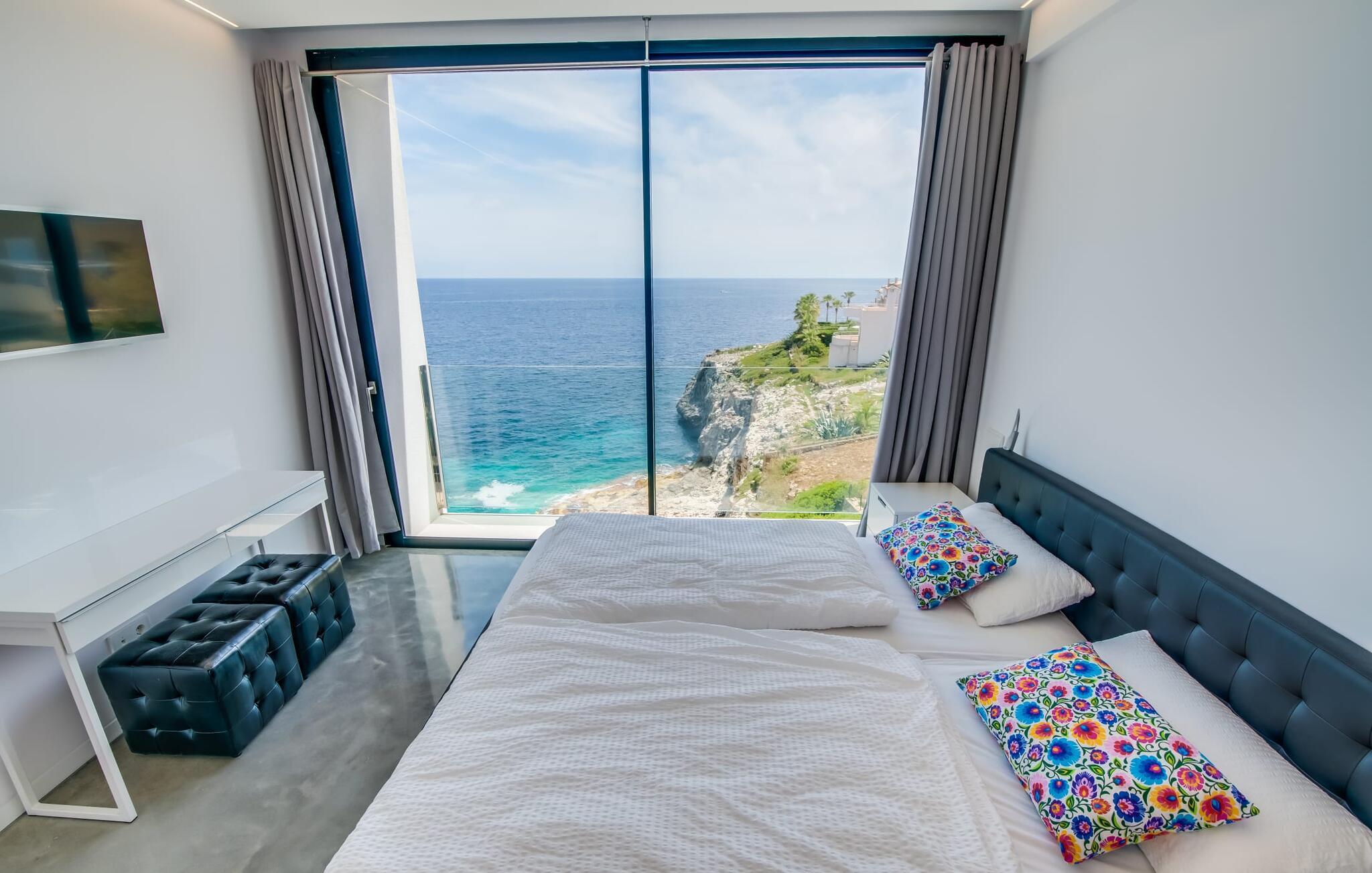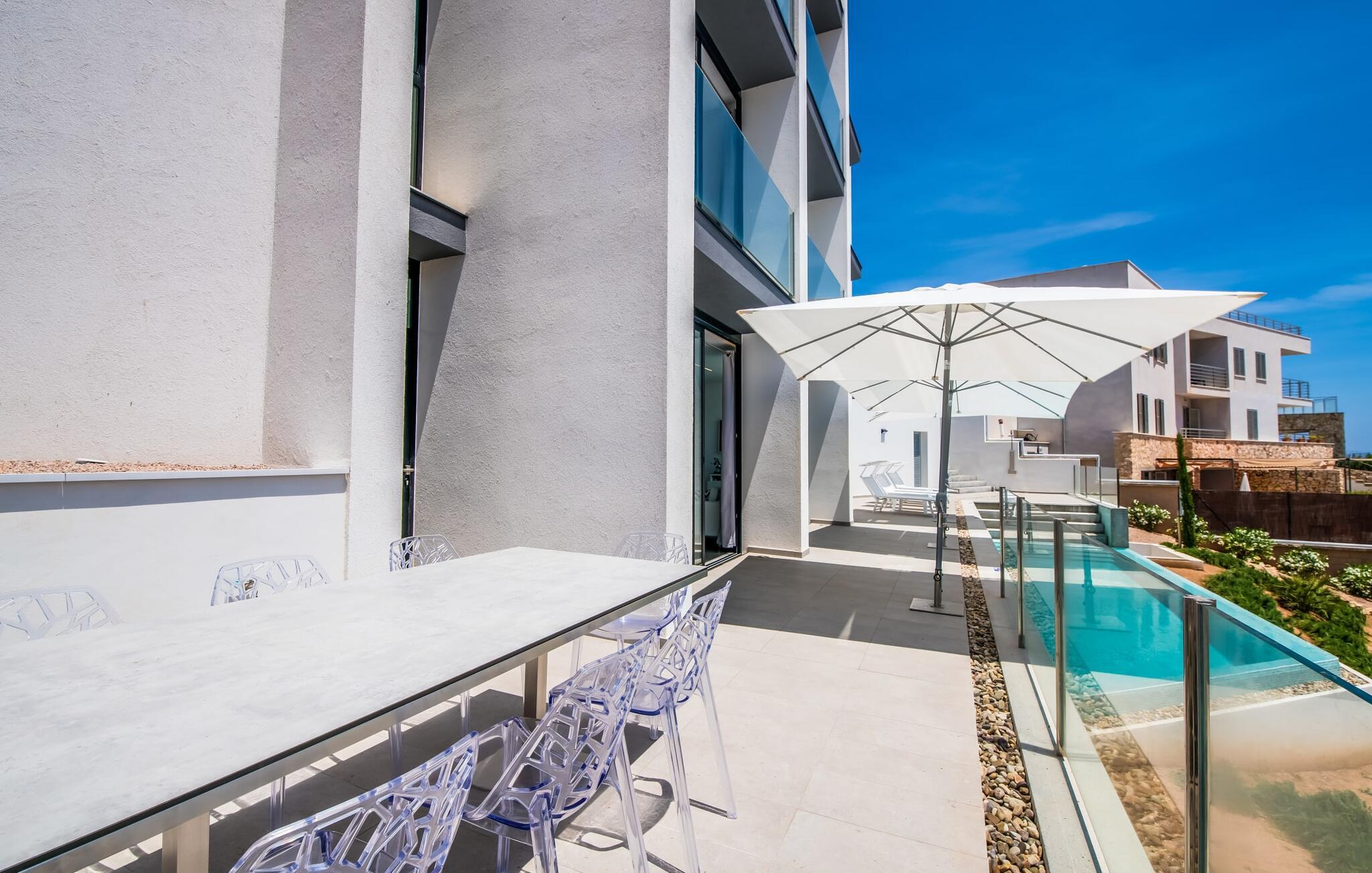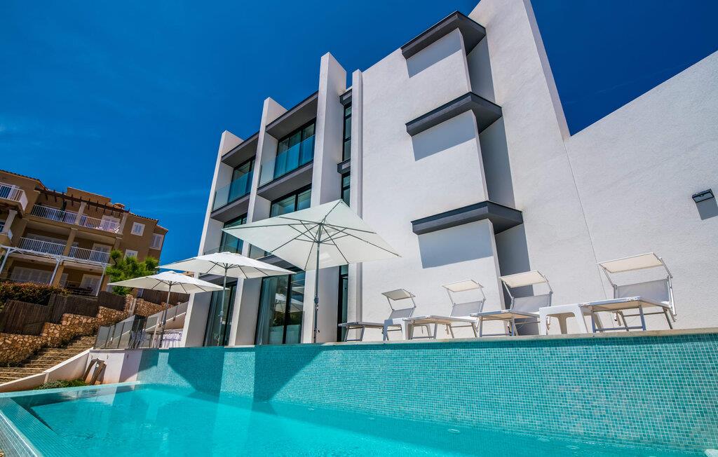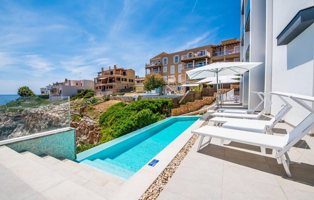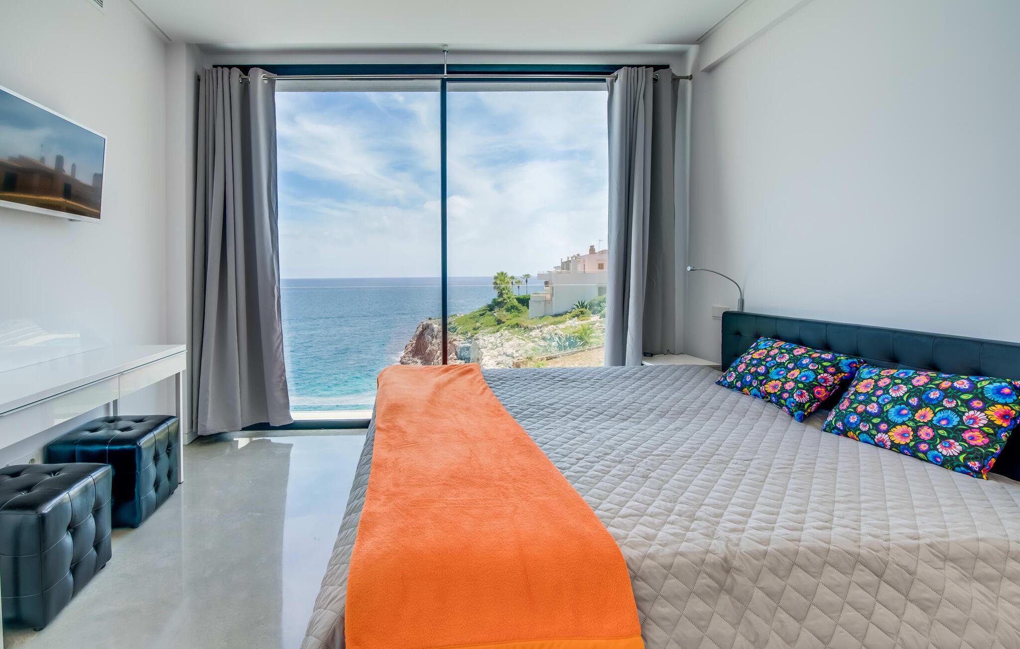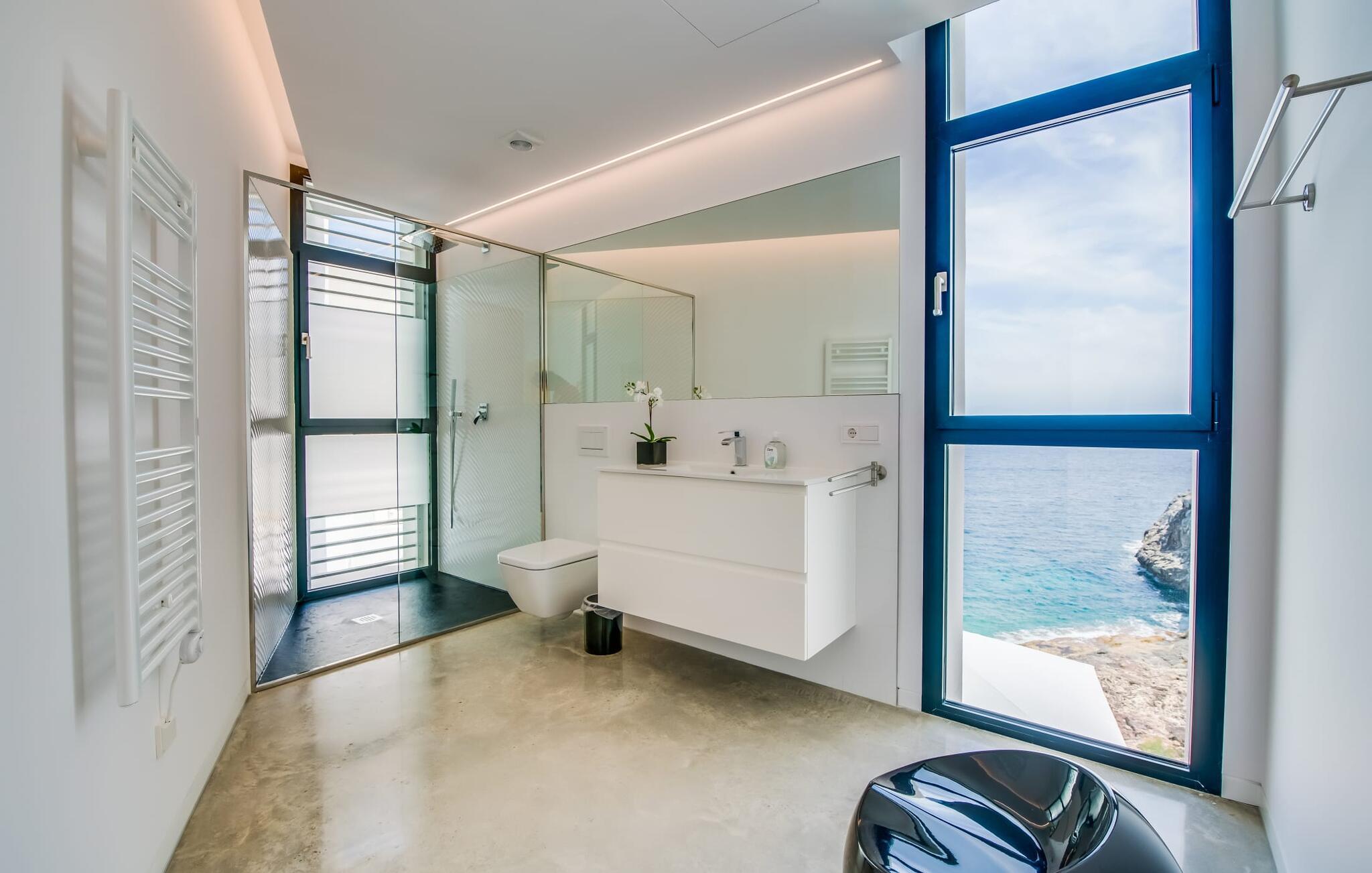Du har länge sett fram emot din semester; förväntningarna växte ännu mer på flyget till Mallorca och när du har lämnat Palma flygplats liv och rörelse bakom dig står du framför havsvillan: rosmarin och timjan pryder palmer och cypresser samt ett olivträd vaktar vid entrén. Det som arkitekterna har tänkt ut och förverkligat här i omedelbar närhet (500 m) av en grönskande vik kommer att få dig att bli hänförd på nolltid: Fastigheten ligger inbäddad i sluttningen och ståtar med en av de mest havsnära infinitypooler som området har att erbjuda: Härifrån kan du njuta av en utsikt som är uppfriskande i sig själv. När du simmar några avkopplande varv medan du njuter av utsikten, beundrar de turkosa mosaikplattorna på botten av poolen genom vattnet och ser fram emot de delikatesser som väntar dig senare vid grillen, kommer din avslappningsfaktor att öka avsevärt. Solstolar finns ovanför poolen, perfekt för att sola efter en simtur.