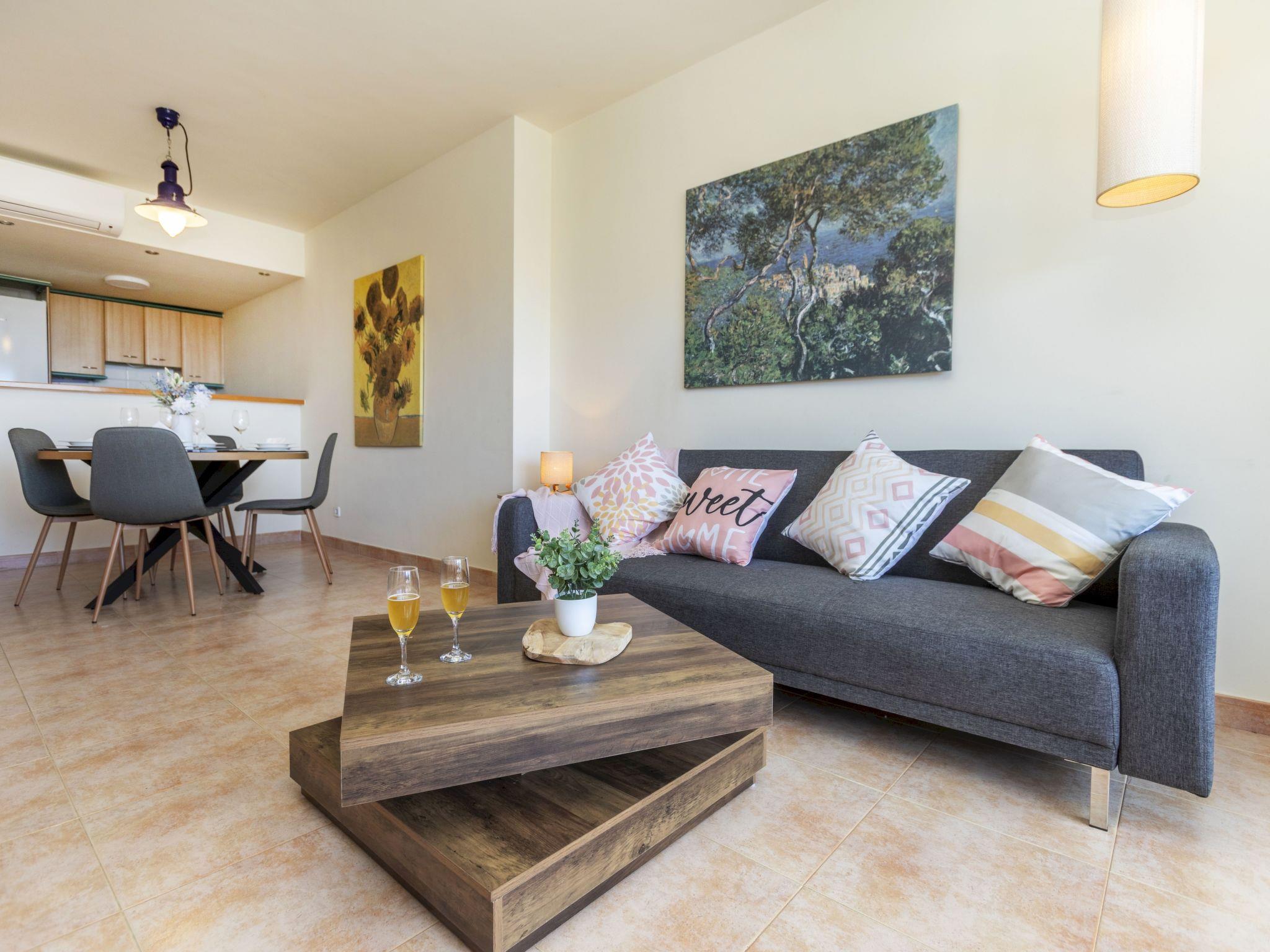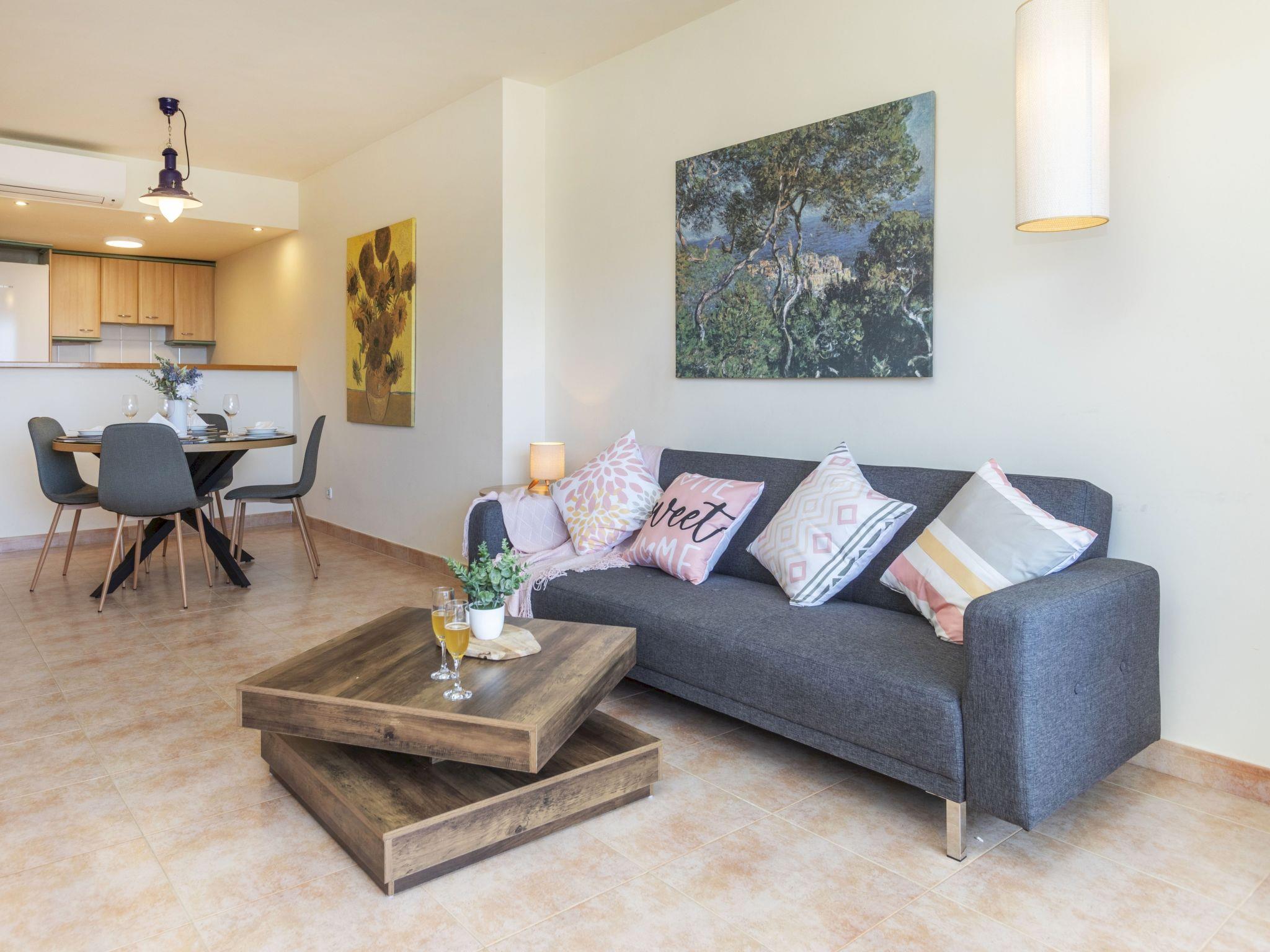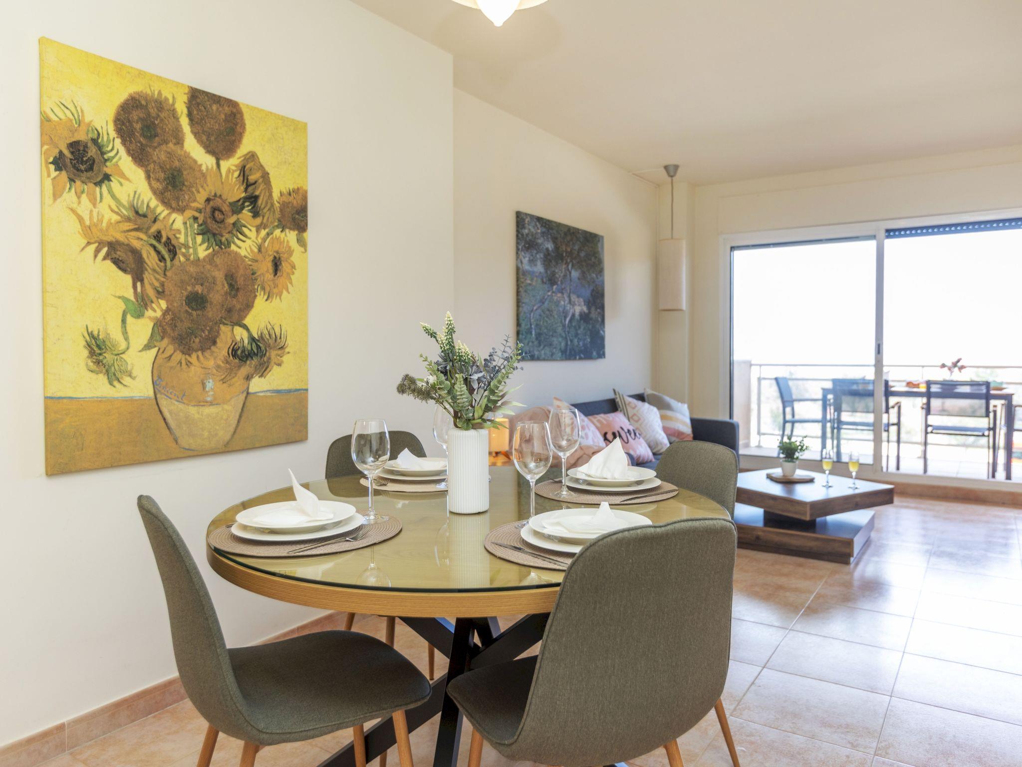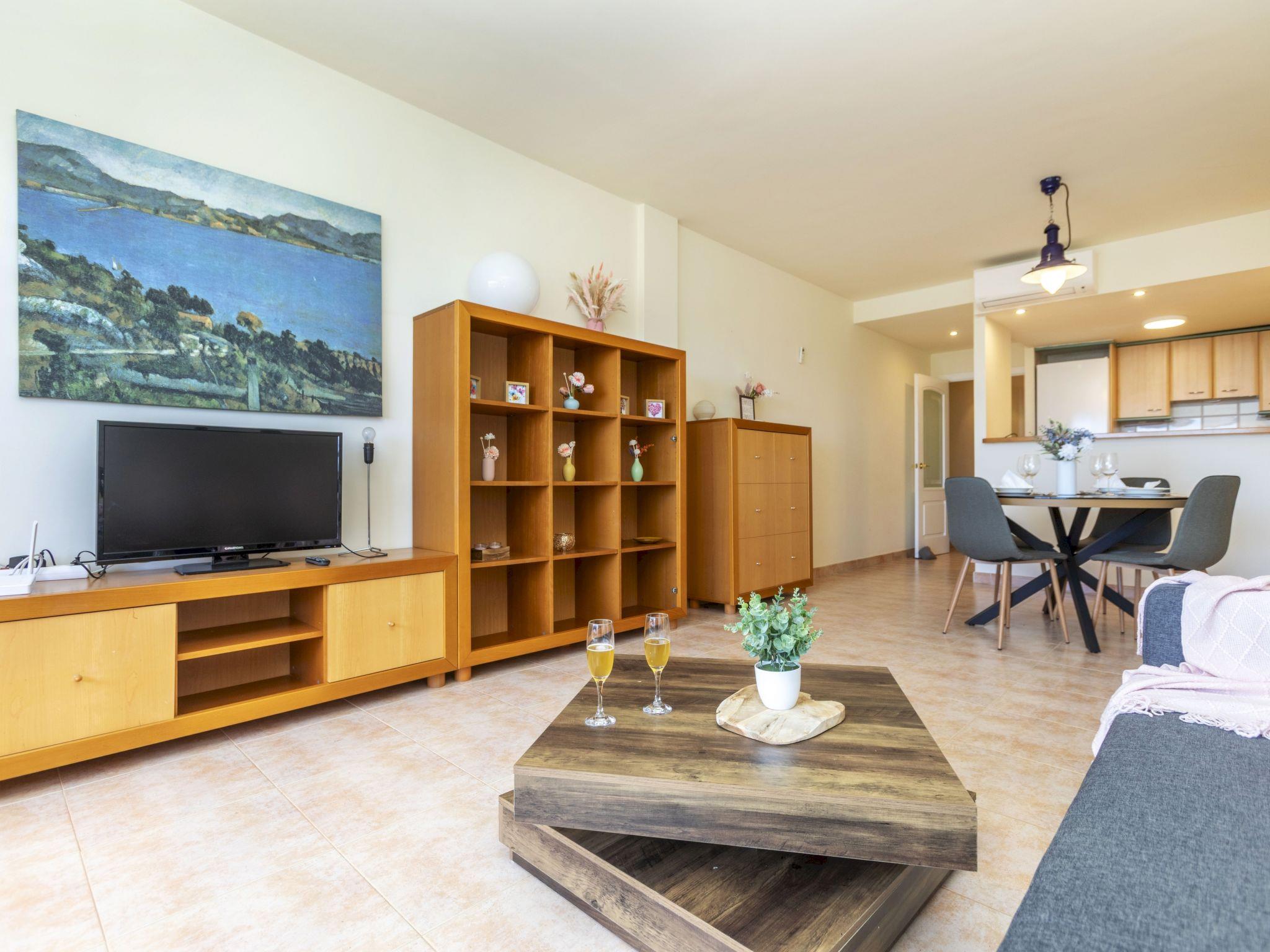 "Port Pals EIII", 3-room apartment 90 m2 on 3rd floor. Practical furnishings: living/dining room with digital TV and air conditioning. Exit to the terrace. 1 room with 1 french bed (135 cm, length 190 cm), shower/WC. Exit to the terrace. 1 room with 2 beds (90 cm, length 190 cm). Exit to the terrace. Entrance hall with air conditioning. Open kitchen (oven, dishwasher, 4 ceramic glass hob hotplates, toaster, kettle, microwave, electric coffee machine). Bath/WC. Boiler (150 litres). No heating option. 2 terraces. Terrace furniture. Marvellous view of the sea and the swimming pool. Facilities: washing machine, iron, children's high chair, baby cot, hair dryer. Parking space n 30 exterior. Please note: TV only ES. HUTG-002897