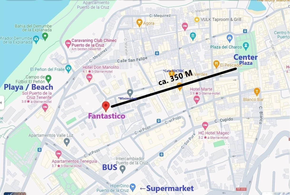 Das Ferienapartment Fantastico 1 liegt im Zentrum von Puerto de la Cruz. 300 Meter zum Meer und 300 Meter zum Zentrum Plaza del Charco in Puerto de la Cruz. Alles was sie brauchen ist in unmittelbarer Nähe, wie Supermarkt, Apotheke, Restaurants, Busstation etc.