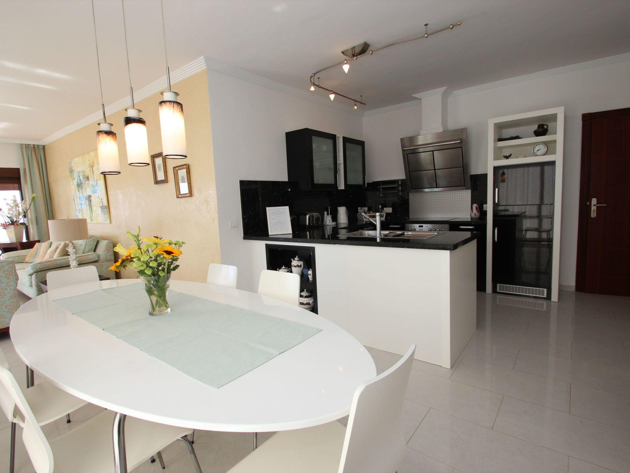 This holiday home, the Casa Marbella, boasts a total of three bedrooms with a double bed each (2 x 90 x 200 cm) and two of the bedrooms have an en-suite bathroom with a shower, a toilet and a bidet. The third bathroom offers a shower, a toilet and a bidet. Everything has been very tastefully furnished. The large living(dining room is furnished with an electric fireplace and a sofa bed (135 x 190 cm). The kitchen has a granite bar and is furnished with a 4 burner ceran stove, an oven, a microwave, a large refrigerator with an ice maker, a dishwasher, a water filter, an espresso maker and more. The house offers everything you need for a relaxing and comfortable holiday. There are towels, bedding, beach towels, an iron, a hair dryer, bathrobes etc, as well as satellite television and Wi-Fi.