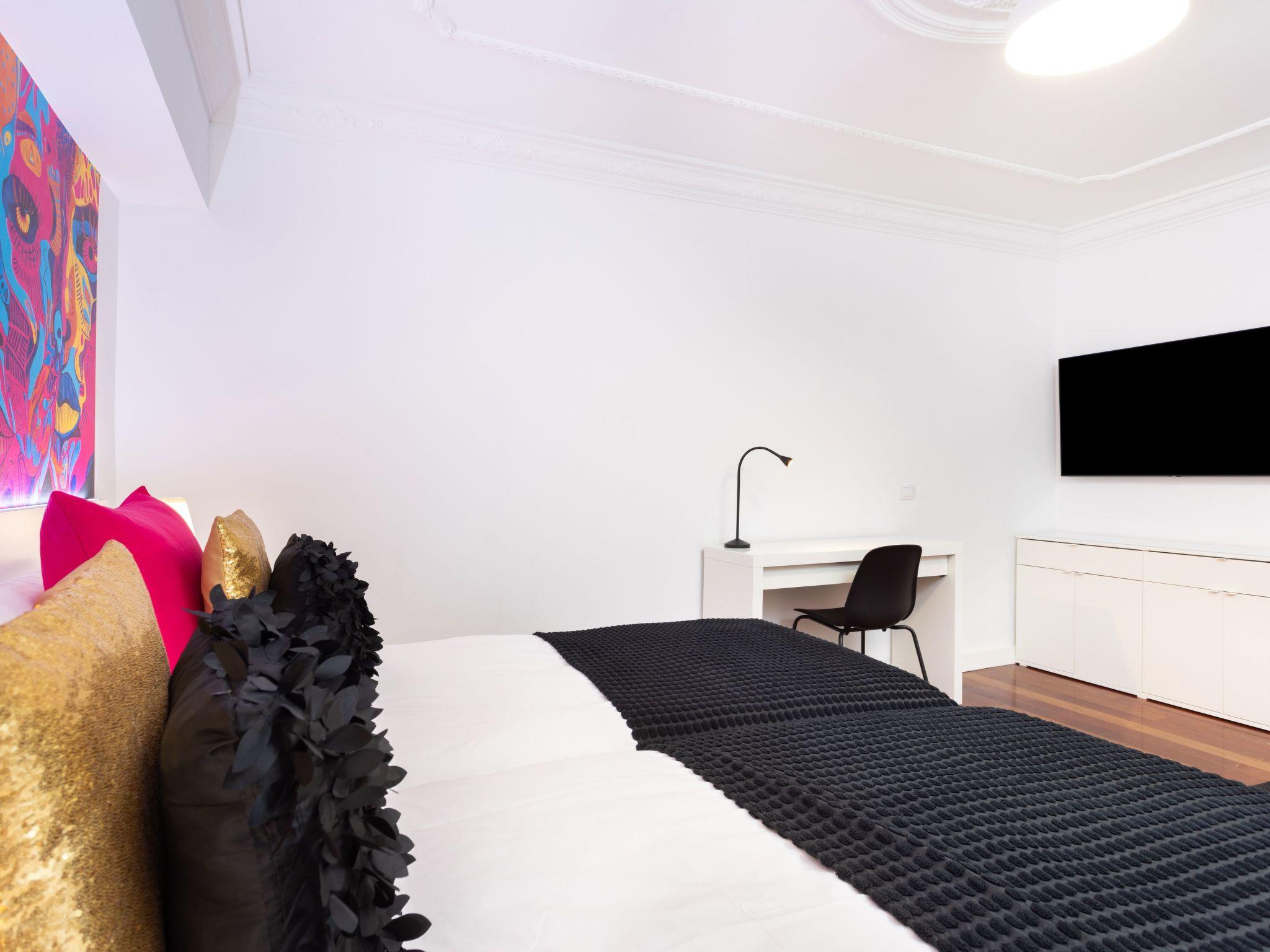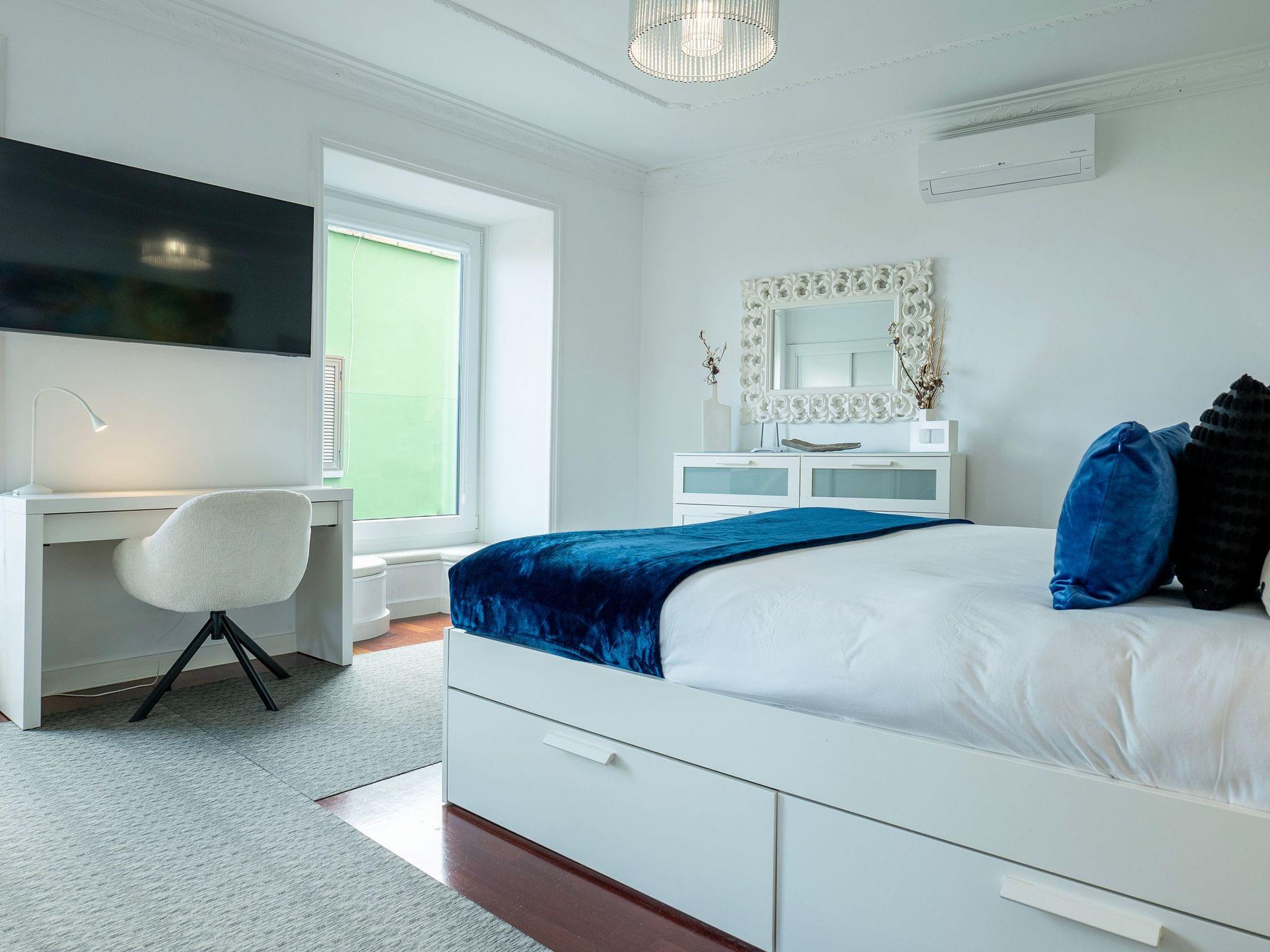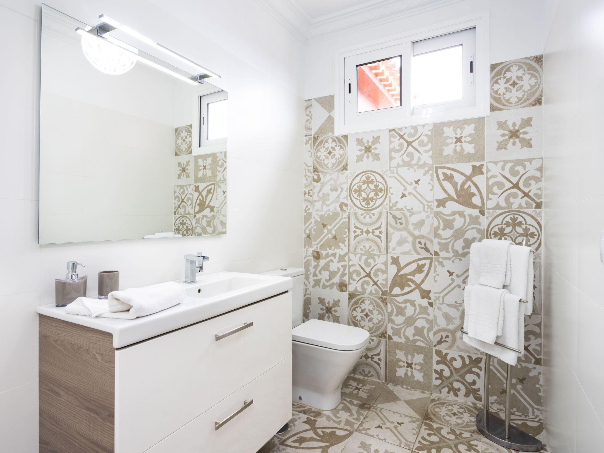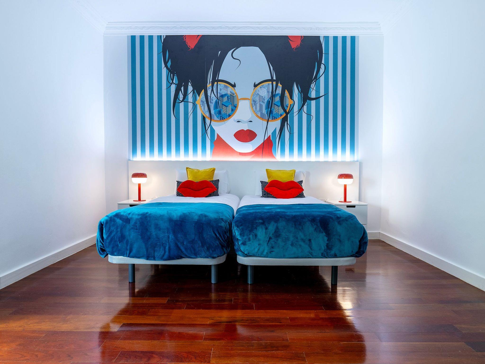 The next bedroom is a spacious family room, with a main room with double bed and en-suite bathroom with shower, and another room with 2 single beds that can be used as a children's room or by adults, as there is an intermediate door. With a total size of 44 m2, this room offers enough space for everyone and a wonderful view of the garden.
