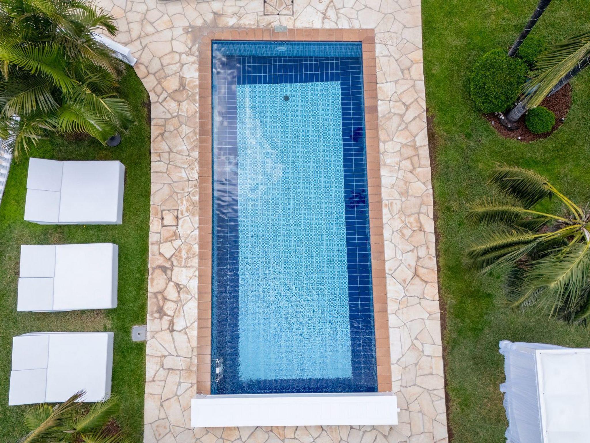 In the spectacular garden there is a large pool measuring 5 x 10 metres (air conditioning is available for a fee). The subtropical garden is home to many species of birds and creates a charming atmosphere. There are lawns, a large terrace, tropical palm trees, birds and a variety of flowers.