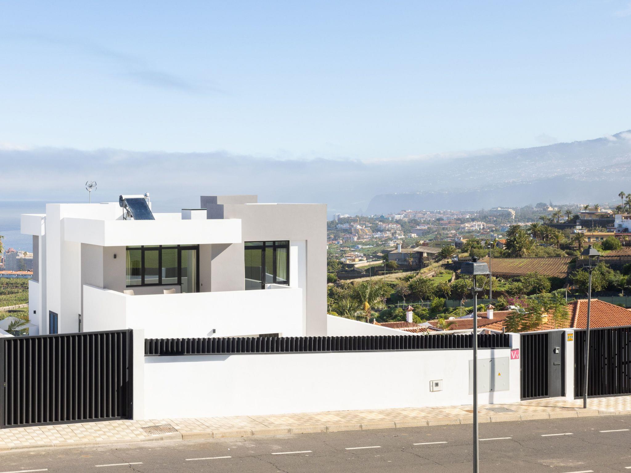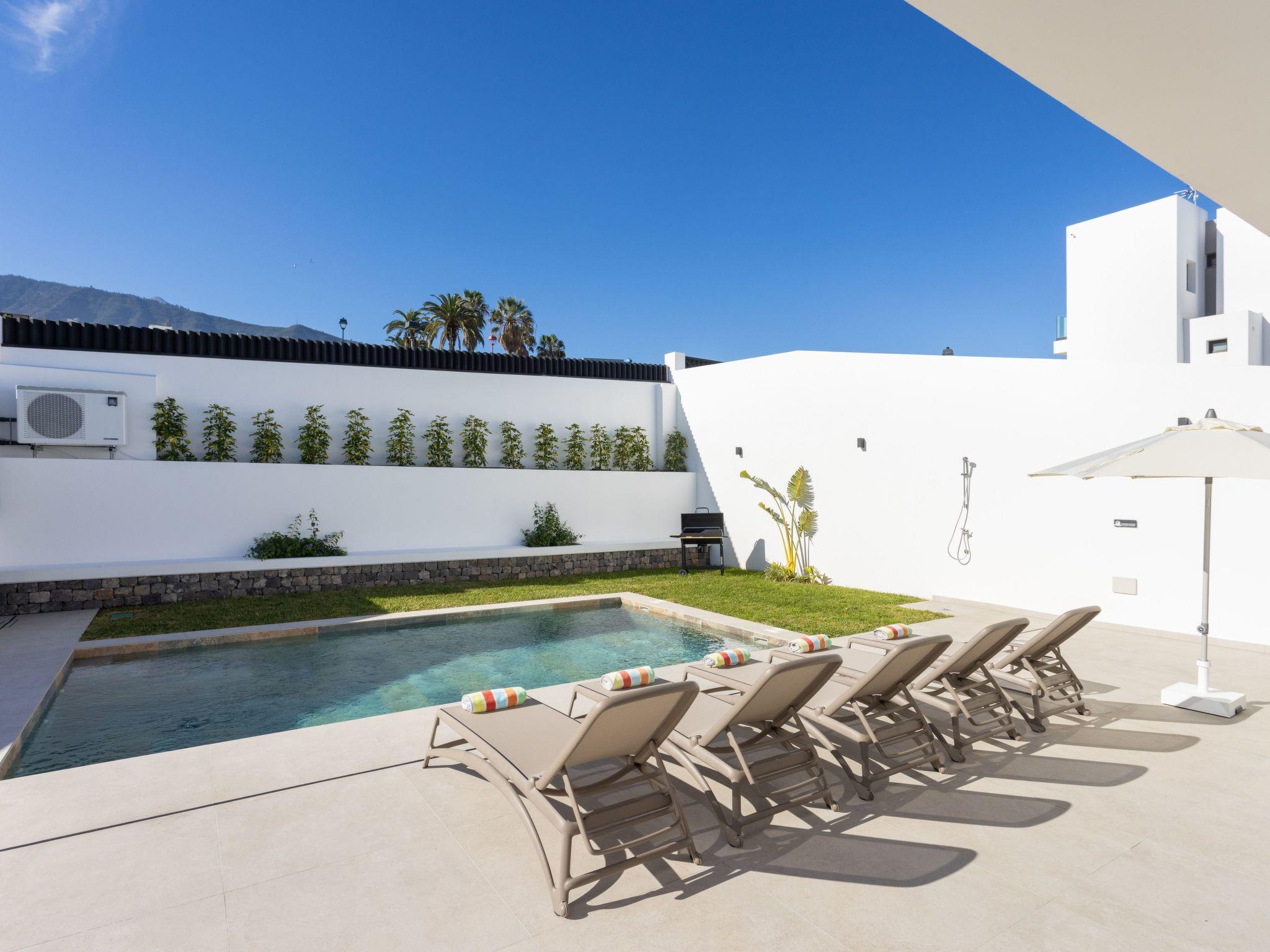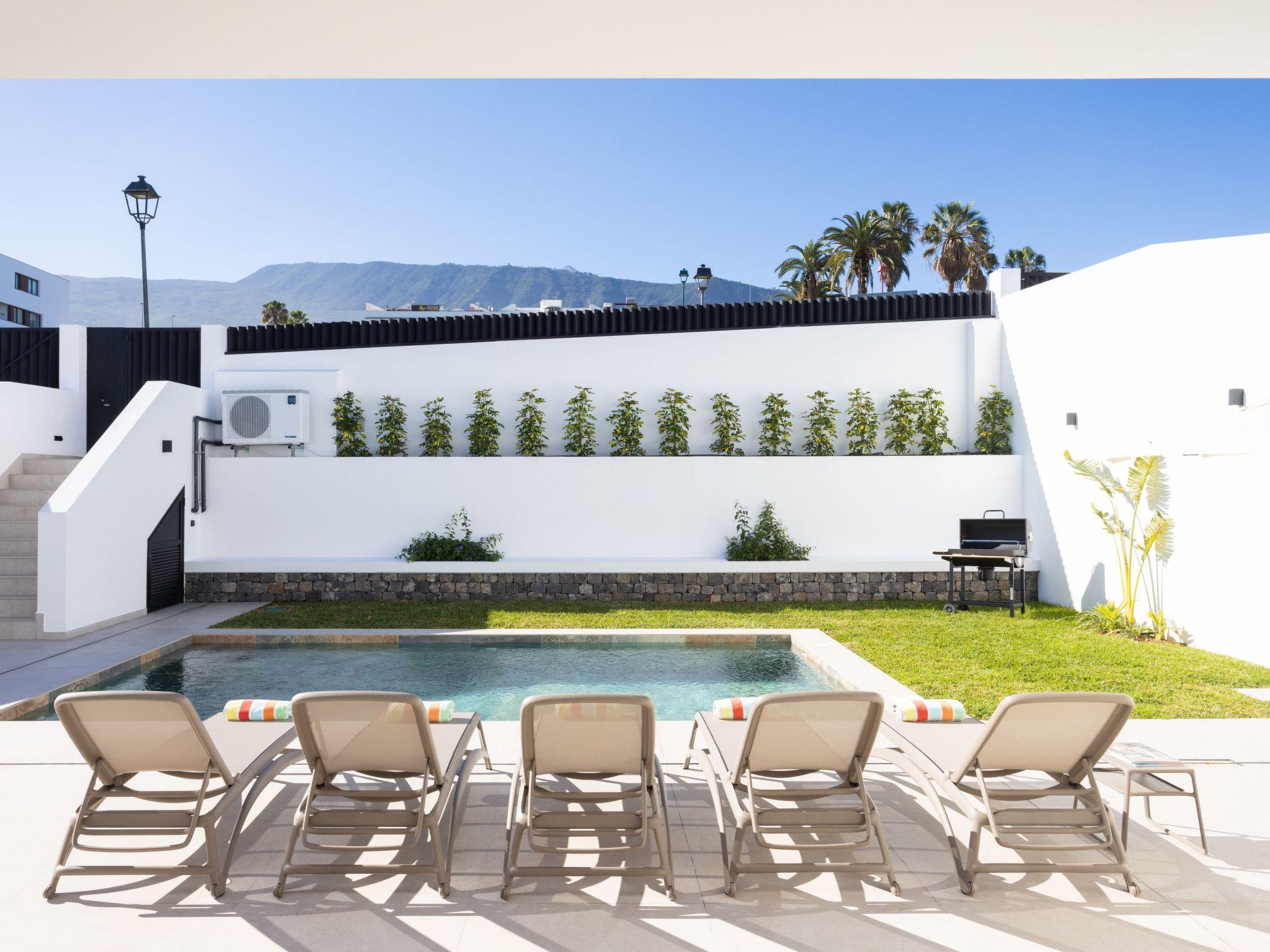 Discover the perfect hideaway for your holiday in this luxurious house with a modern design. With 5 bedrooms, 4 bathrooms, an equipped kitchen and a spacious living room with sea views, it offers comfort and elegance. Enjoy the terrace, private garden, heated pool and upper balcony. Ideal for families, friends or home office thanks to high-speed internet. Located just 5 minutes from Puerto de la Cruz and close to services, this is the perfect place for an unforgettable stay. Your paradise is waiting for you!