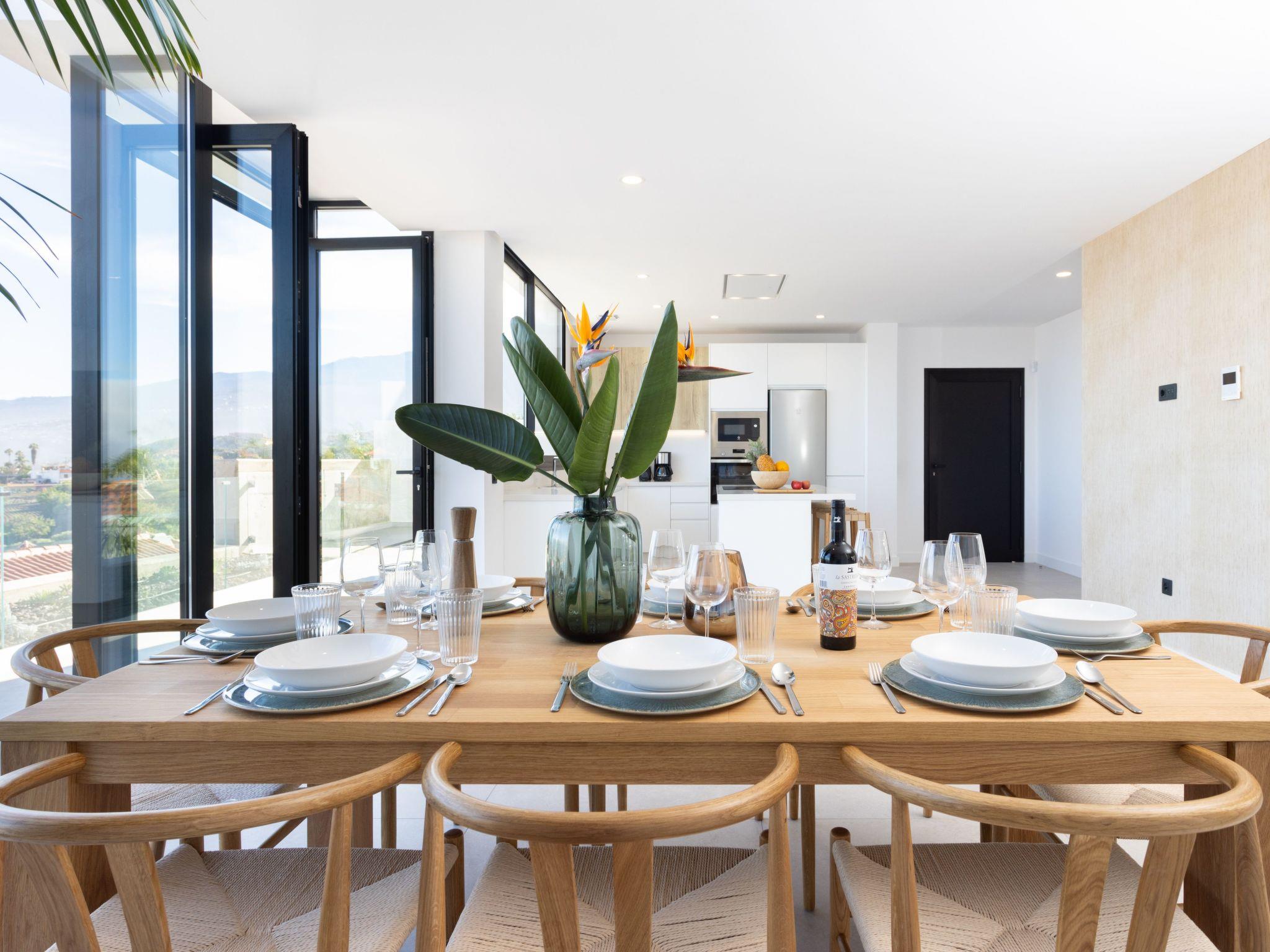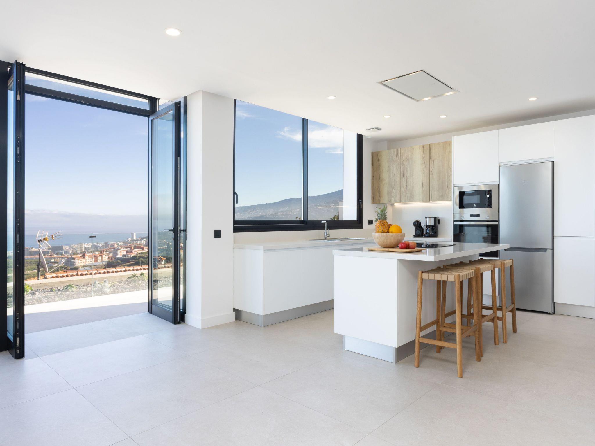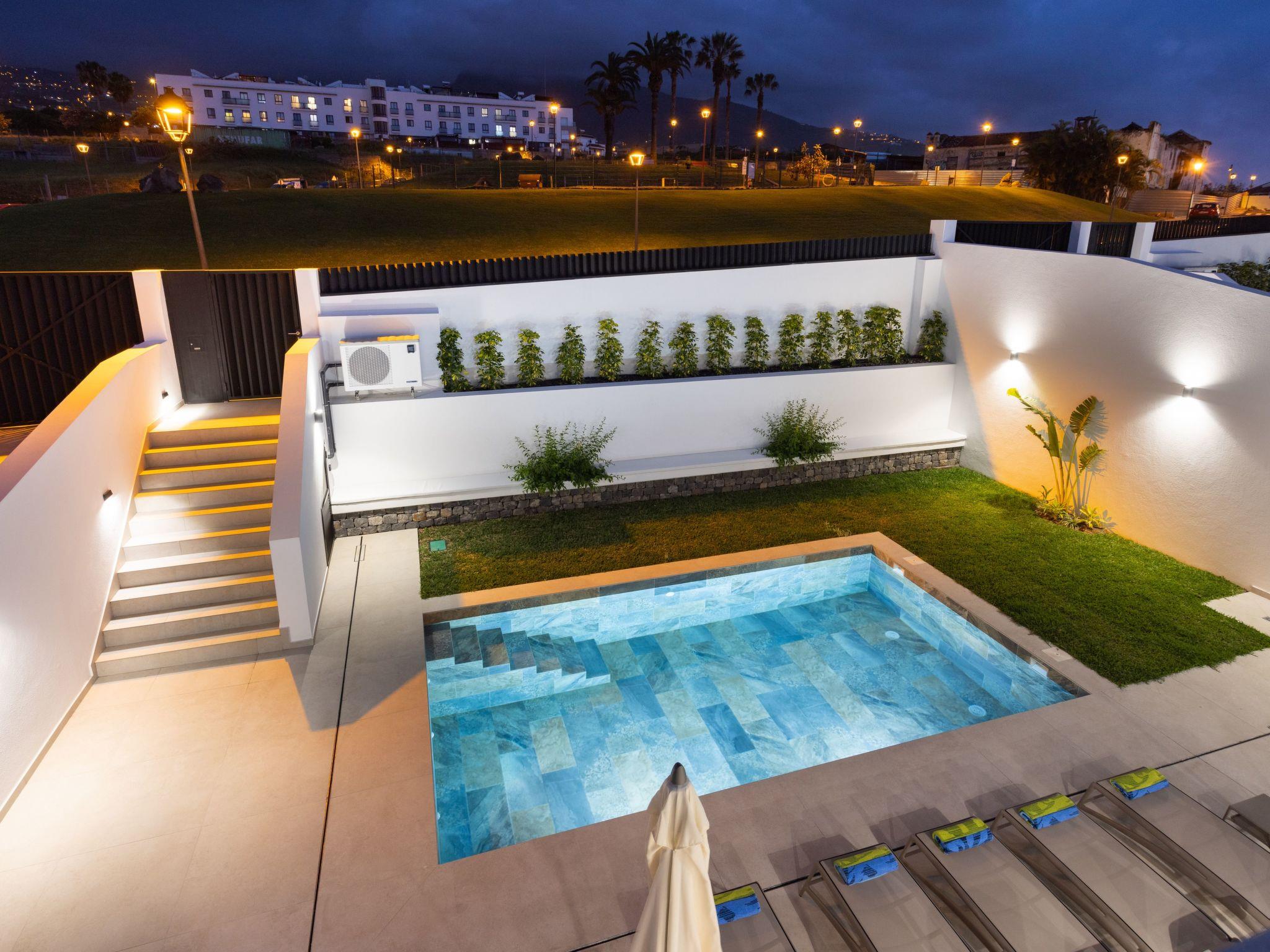 Discover the perfect hideaway for your holiday in this luxurious house with a modern design. With 5 bedrooms, 4 bathrooms, an equipped kitchen and a spacious living room with sea views, it offers comfort and elegance. Enjoy the terrace, private garden, heated pool and upper balcony. Ideal for families, friends or home office thanks to high-speed internet. Located just 5 minutes from Puerto de la Cruz and close to services, this is the perfect place for an unforgettable stay. Your paradise is waiting for you!