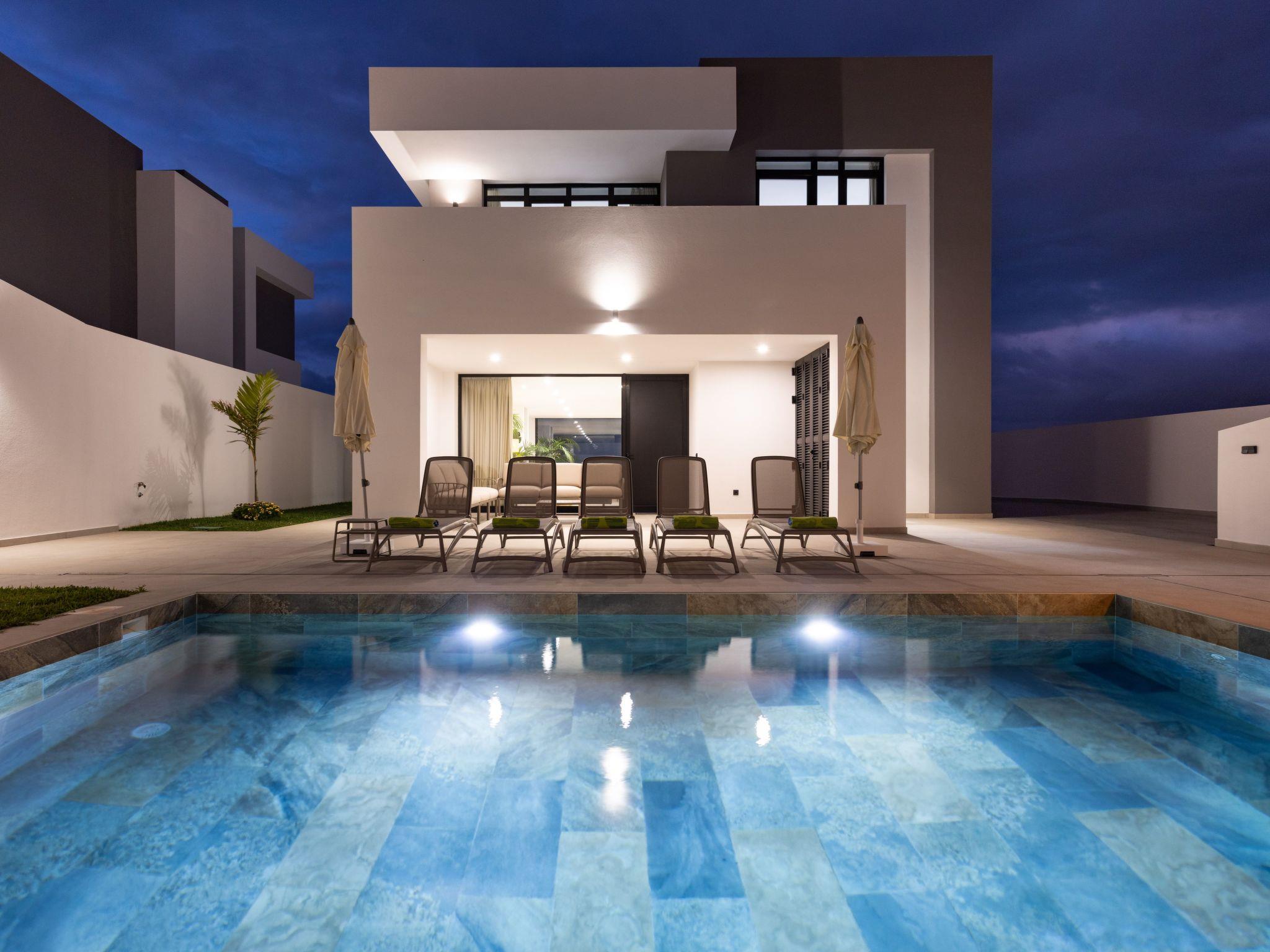 Gorvorana 3 is bright and welcoming, with 4 bedrooms and 3 bathrooms on the upper part of the house, 1 bedroom and 1 bathroom on the ground floor. There is also a south-facing balcony with views of the mountains and the private pool. The ground floor offers a large living, dining and kitchen area with spectacular views of Puerto de la Cruz. The pool is completely private and can be heated for an extra charge. The spacious outdoor area is equipped with comfortable furniture. There is also a barbecue area, ideal for enjoying al fresco meals with family or friends in a relaxed and pleasant atmosphere. The plot has a size of 500 m², of which 265 m² are built on. There is space for several cars, both on the plot and on the road.