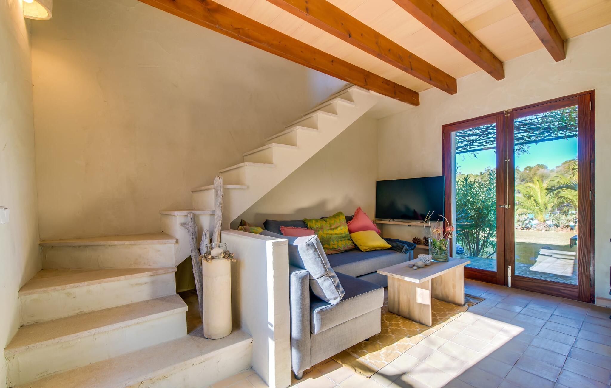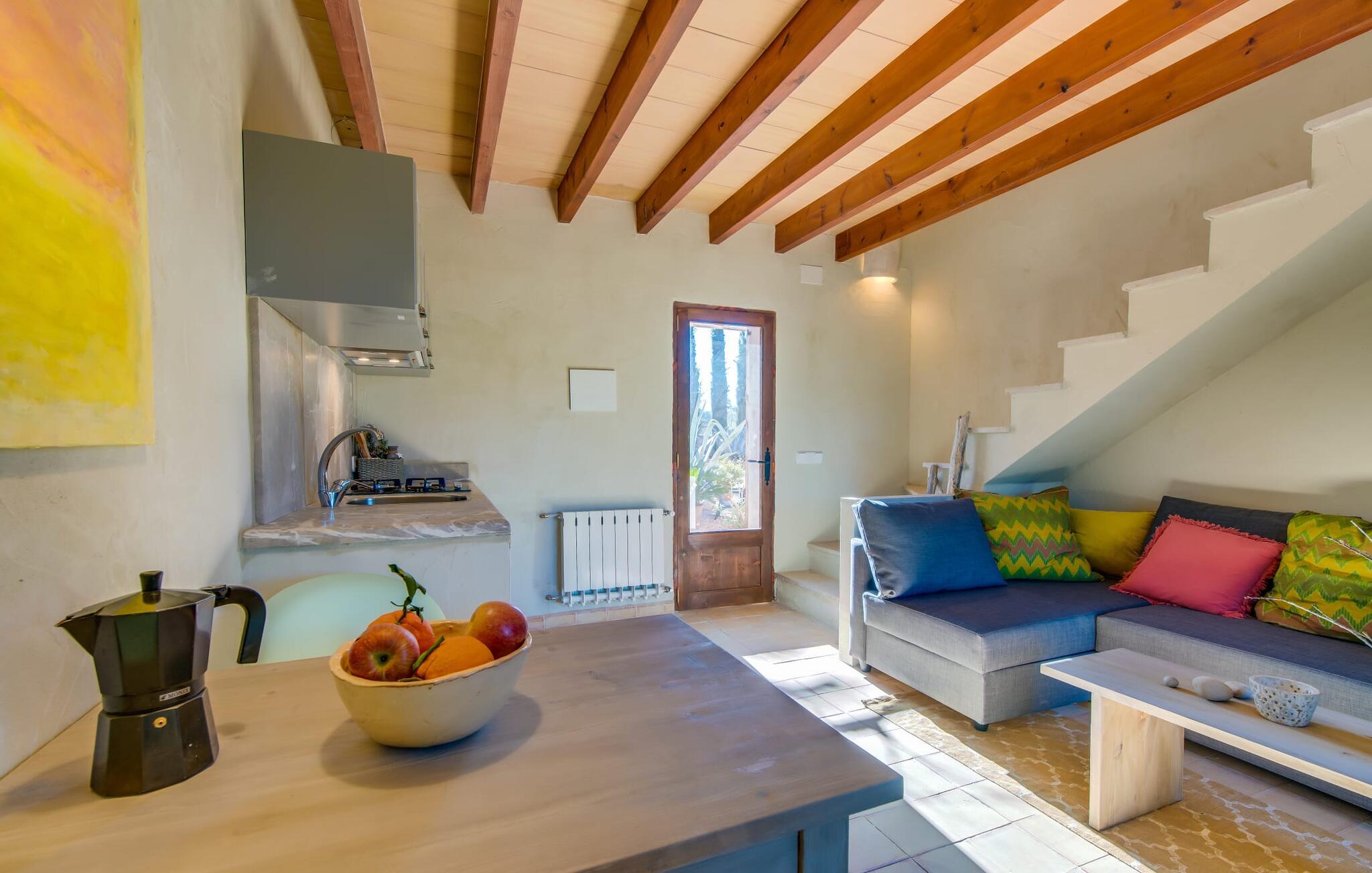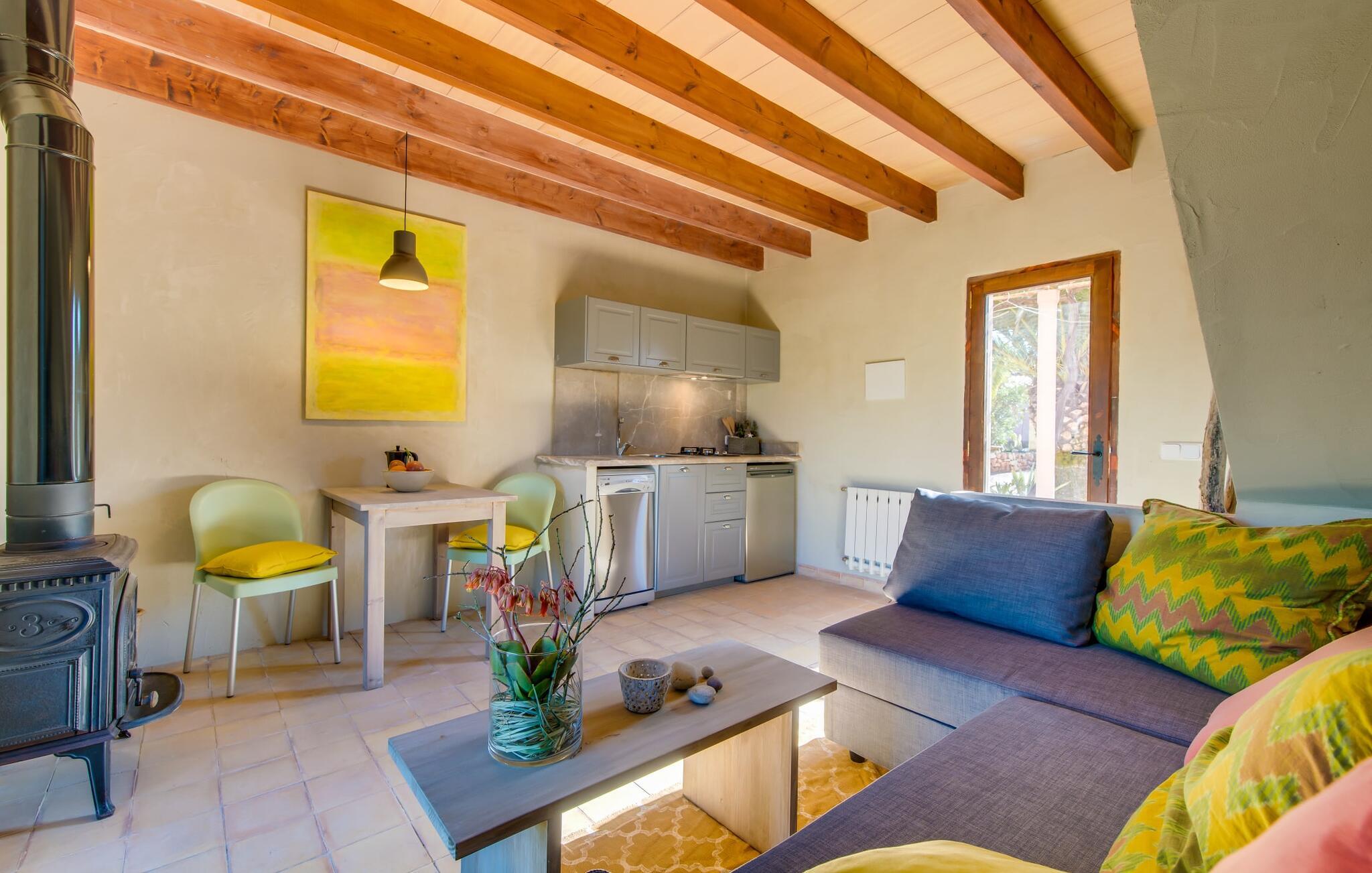 "Redonda Dos" är en minimalistisk tillflyktsort med synliga träbjälkar i taket, träfönster och möbler av hög kvalitet, t.ex. ett matbord i teak, som skapar en varm atmosfär. Det rymliga vardagsrummet/matsalen har två bekväma soffor, en öppen spis och ett fullt utrustat kök. Ett ljust sovrum med dubbelsäng och ett modernt badrum med dusch erbjuder en avkopplande vistelse. Detta är den idealiska platsen för naturälskare som letar efter en lugn, oberoende tillflyktsort på Mallorca. Till den enorma fastigheten hör tre andra vackra villor och villalägenheter, som ni också kan hitta i vårt sortiment.