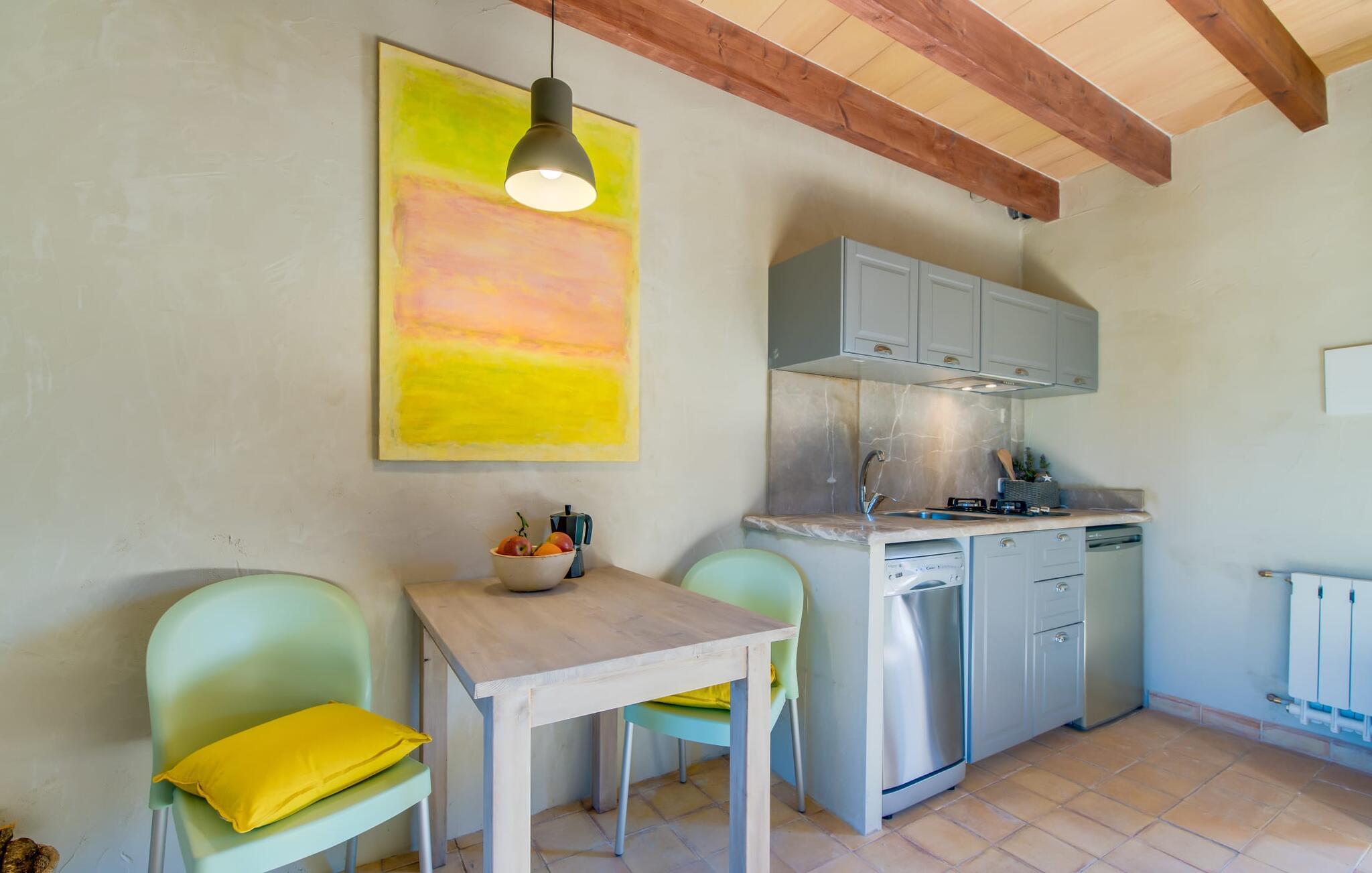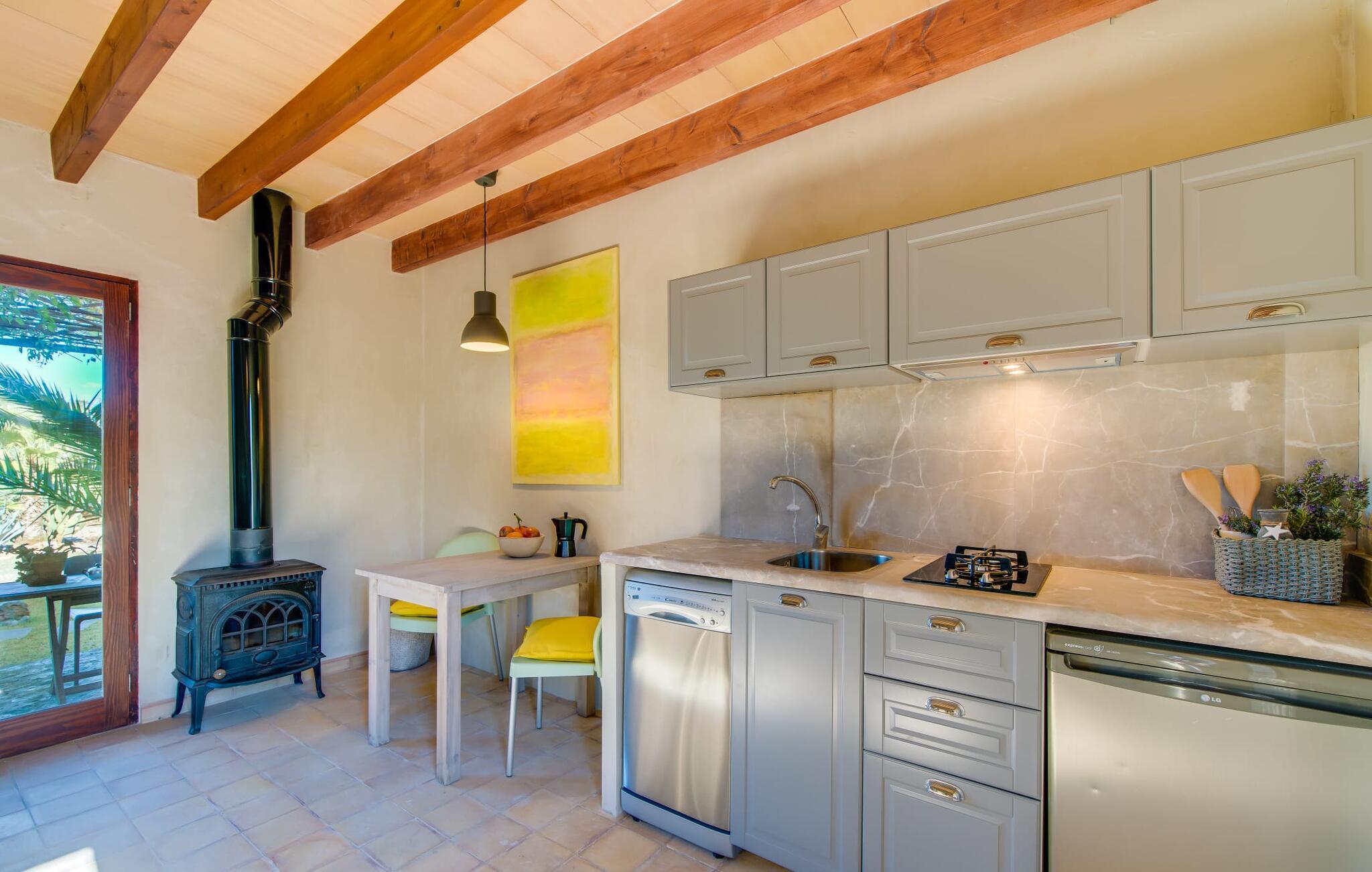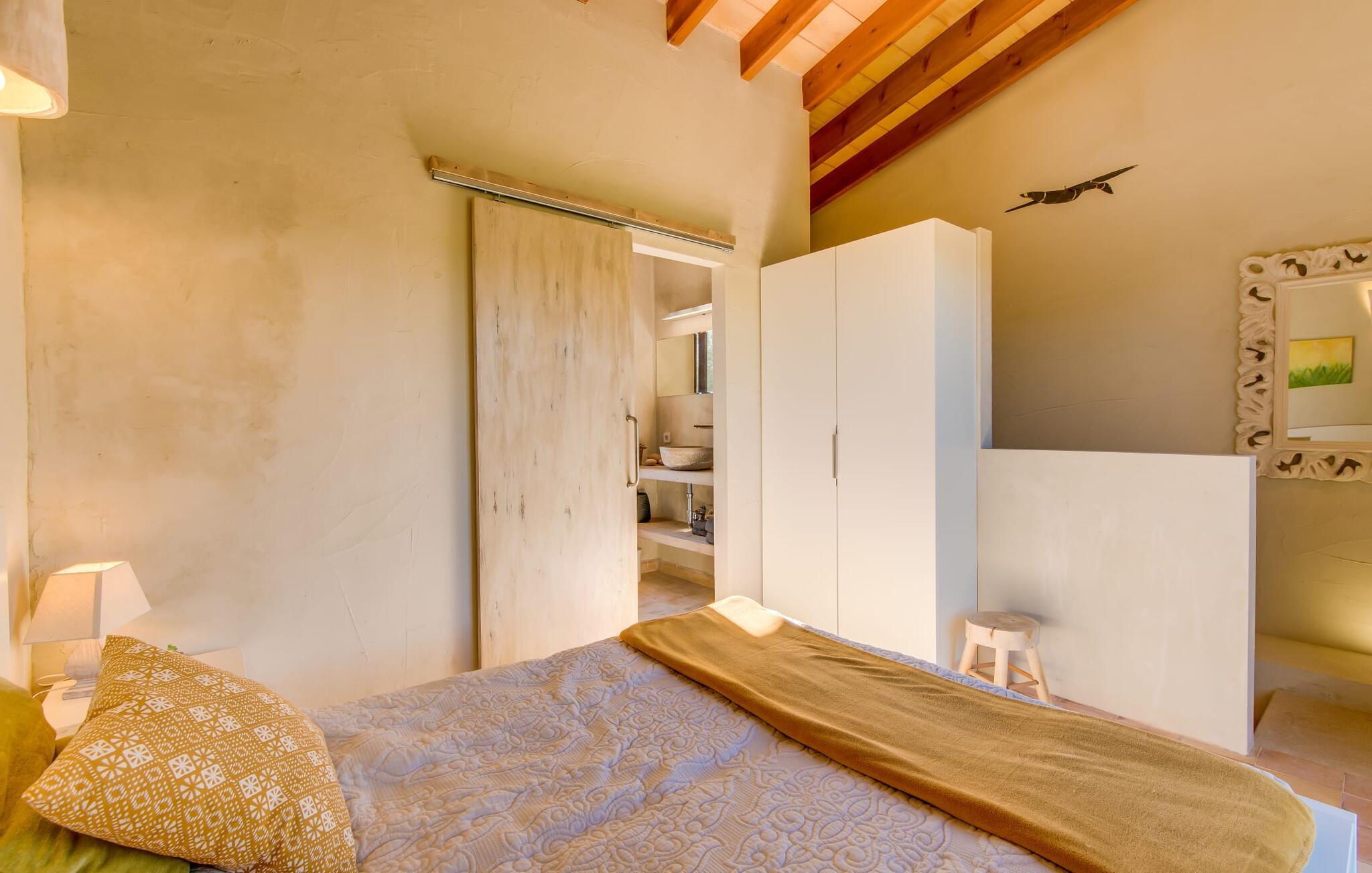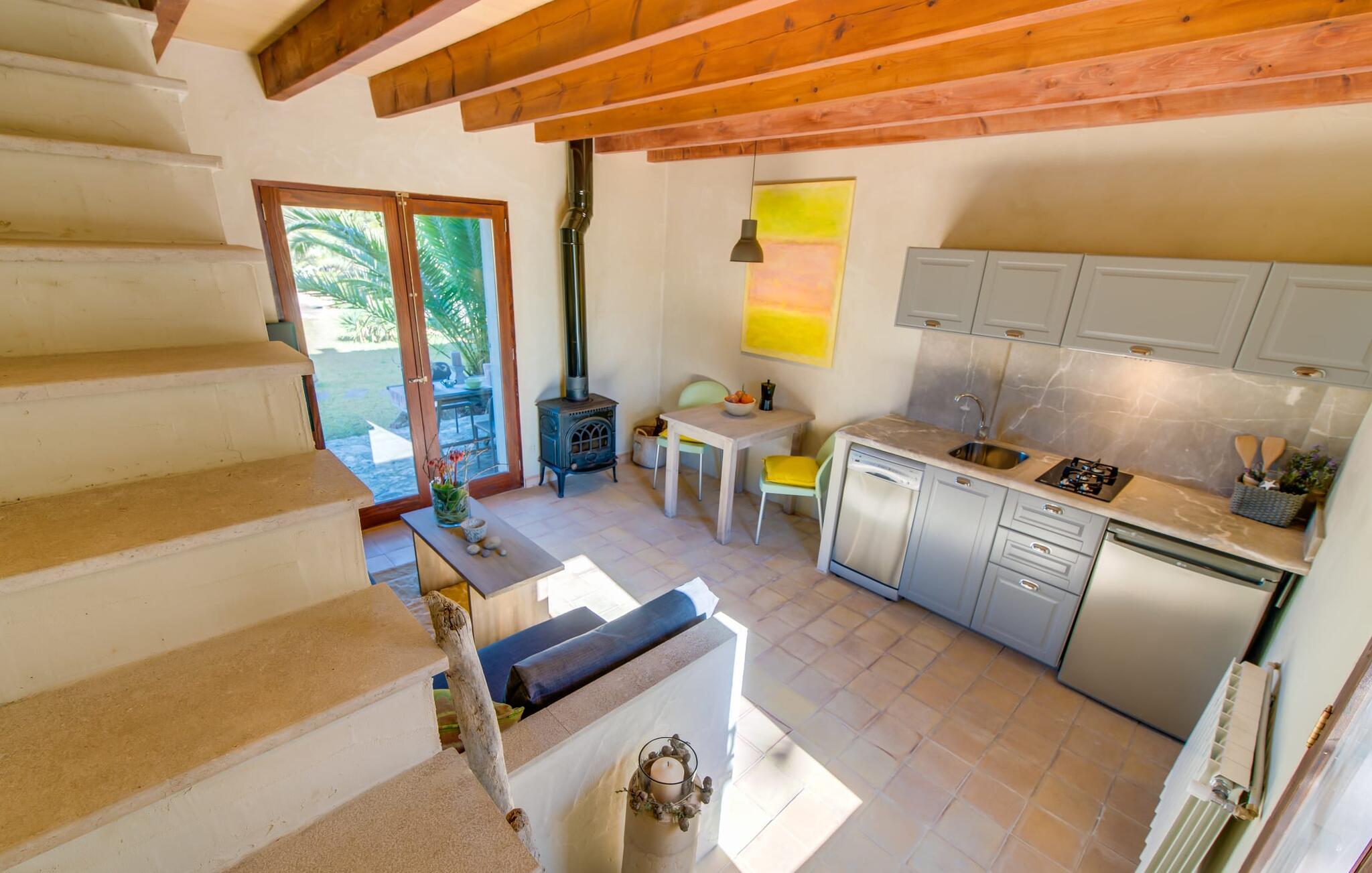 "Redonda Dos" är en minimalistisk tillflyktsort med synliga träbjälkar i taket, träfönster och möbler av hög kvalitet, t.ex. ett matbord i teak, som skapar en varm atmosfär. Det rymliga vardagsrummet/matsalen har två bekväma soffor, en öppen spis och ett fullt utrustat kök. Ett ljust sovrum med dubbelsäng och ett modernt badrum med dusch erbjuder en avkopplande vistelse. Detta är den idealiska platsen för naturälskare som letar efter en lugn, oberoende tillflyktsort på Mallorca. Till den enorma fastigheten hör tre andra vackra villor och villalägenheter, som ni också kan hitta i vårt sortiment.
