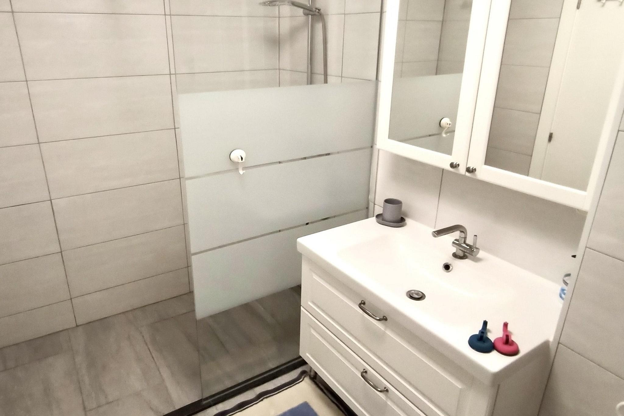 Bottenvåningen: (Entré, Kök(Kokplattor(Spis med 4 kokplattor, elektrisk), kaffebryggare, ugn, mikrovågsugn, diskmaskin, kyl och frys), ardags- och matrum(TV(platt-tv, digital), matbord, sitthörna, balkong eller terrass), WC(handfat, toalett ), torktumlare, tvättmaskin, värme, luftkonditionering, terrass, strykbräda, strykjärn) På våning 1: (sovrum(dubbelsäng), sovrum(dubbelsäng), Bedroom with bathroom(enkelsäng, enkelsäng, dusch, handfat, toalett ), värme, luftkonditionering, terrass) Källare: (garage(kan nås från utsidan), parkering, parkering) gym(delas med andra gäster )(träningsredskap), terrass(privat, 20 m2), trädgård(delas med andra gäster ), trädgårdsmöbler, parking lot(public), swimmingpool(delas med andra gäster , utanför, opened from Jun upto and including Sep), lekplats(delas med andra gäster ), fotbollsmål(delas med andra gäster ), tennisbana