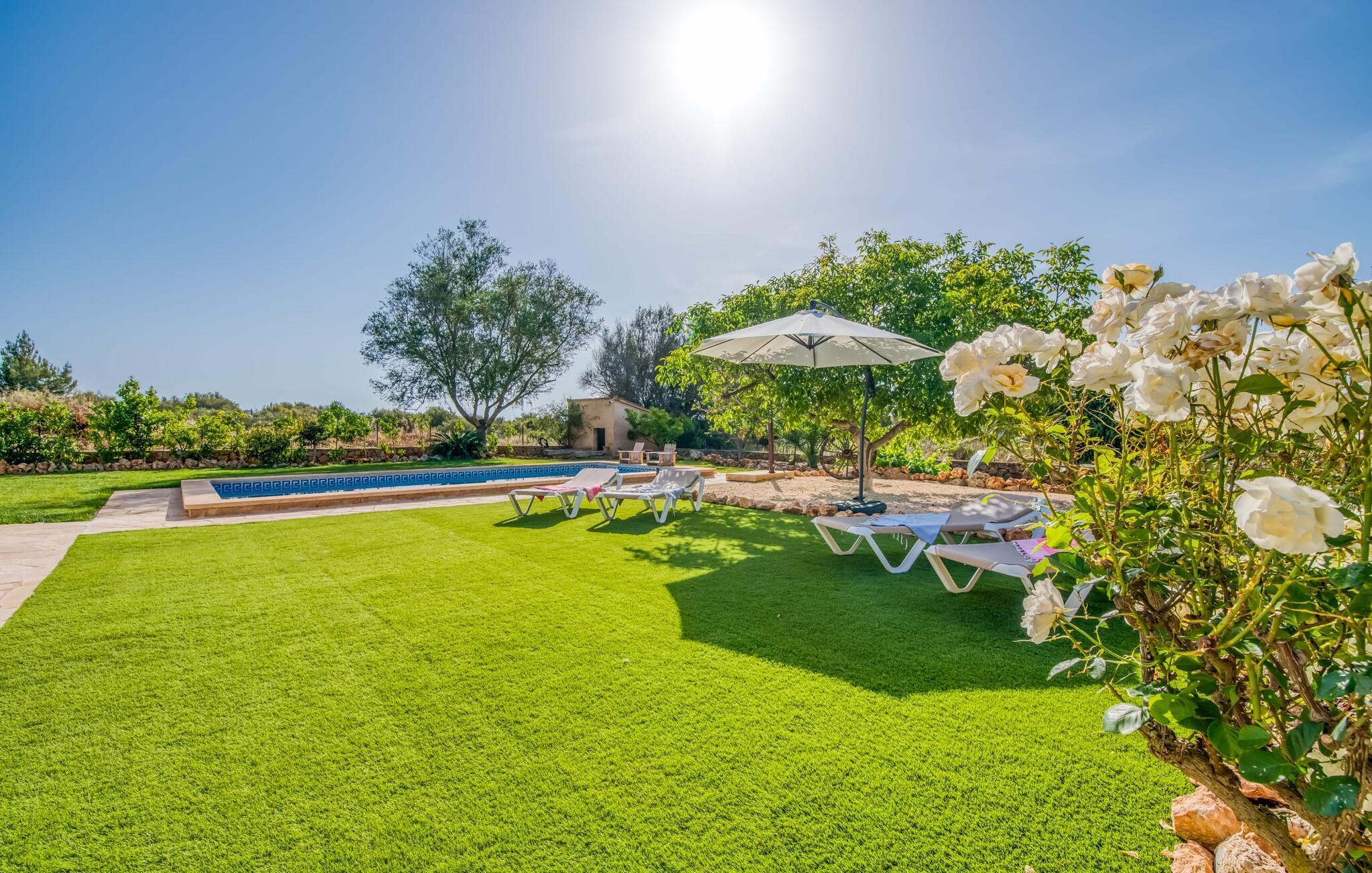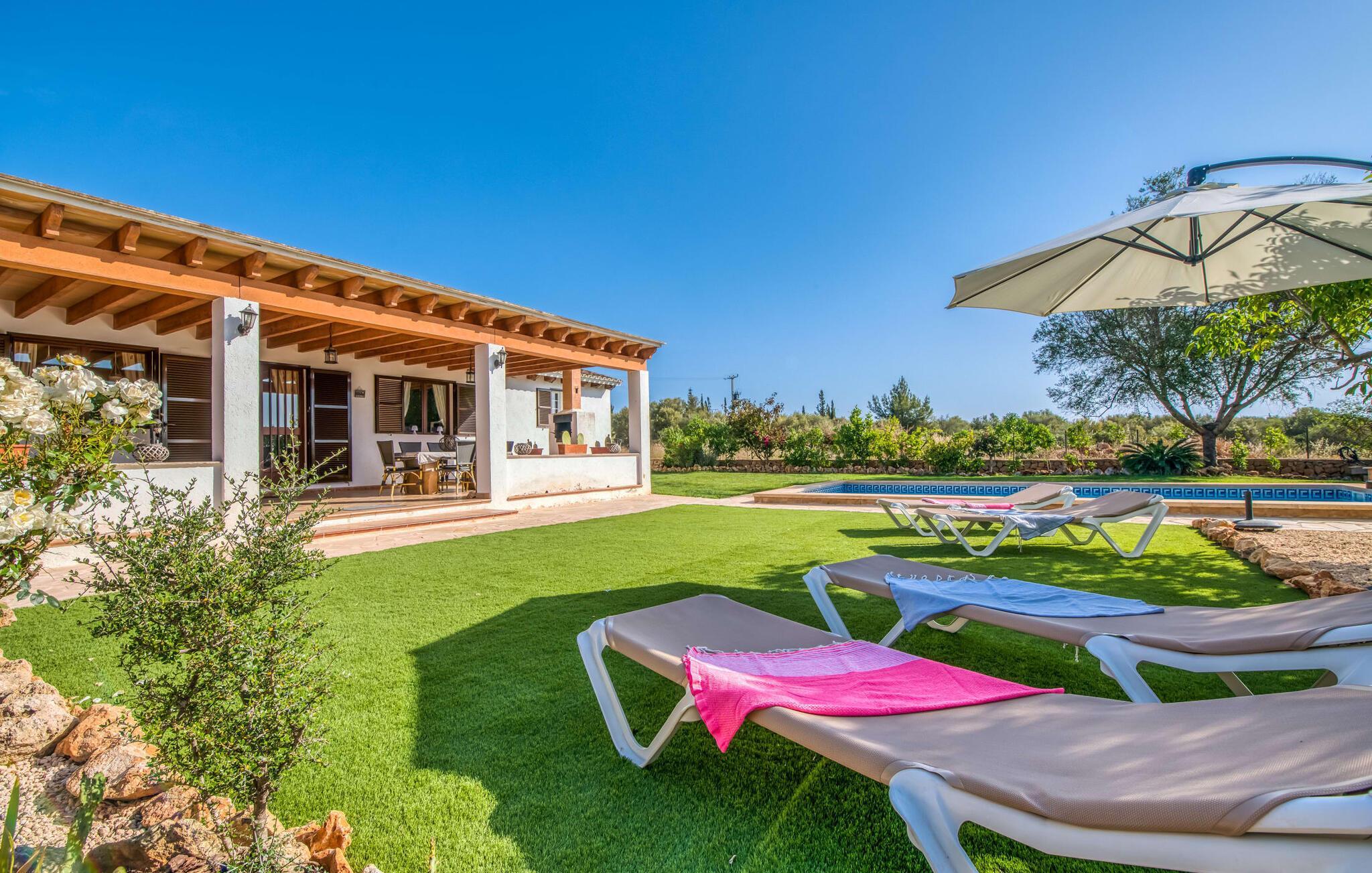 Du kan utforska byn Sa Coma och dess omgivningar till fots eller med de fyra cyklarna som finns tillgängliga. Njut av den mallorkinska idyllen i trädgården, som domineras av en mosaikvattenpool och en solterrass. Du kan koppla av på solstolarna på gräsmattan eller på solstolarna vid poolen. En vacker veranda sträcker sig över hela husets längd. Detta täckta område har en lounge och en uteservering. Grillen är praktiskt taget integrerad i terrassen.