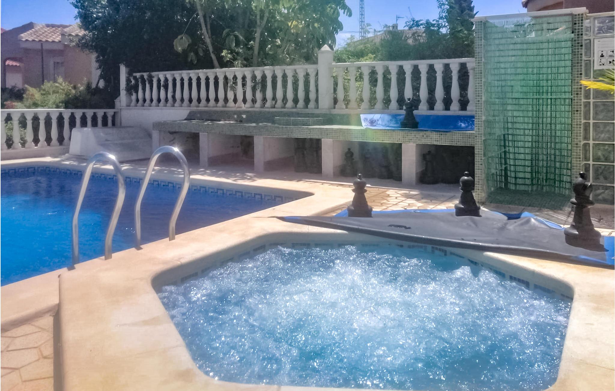 Detta inbjudande semesterhus i Rojales är perfekt för en oförglömlig semester med familjen. Den stora poolen inbjuder till avkopplande dagar i vattnet, medan terrasserna runt huset erbjuder soliga eller skuggiga platser beroende på vad du föredrar. Se fram emot grillkvällar i det fria eller mysiga timmar i det välutrustade boendet med två separata vardagsrum och sovplatser, perfekt för familjer eller par av vänner. En bastu och bubbelpool finns tillgängliga mot en extra kostnad och lovar ren avkoppling.