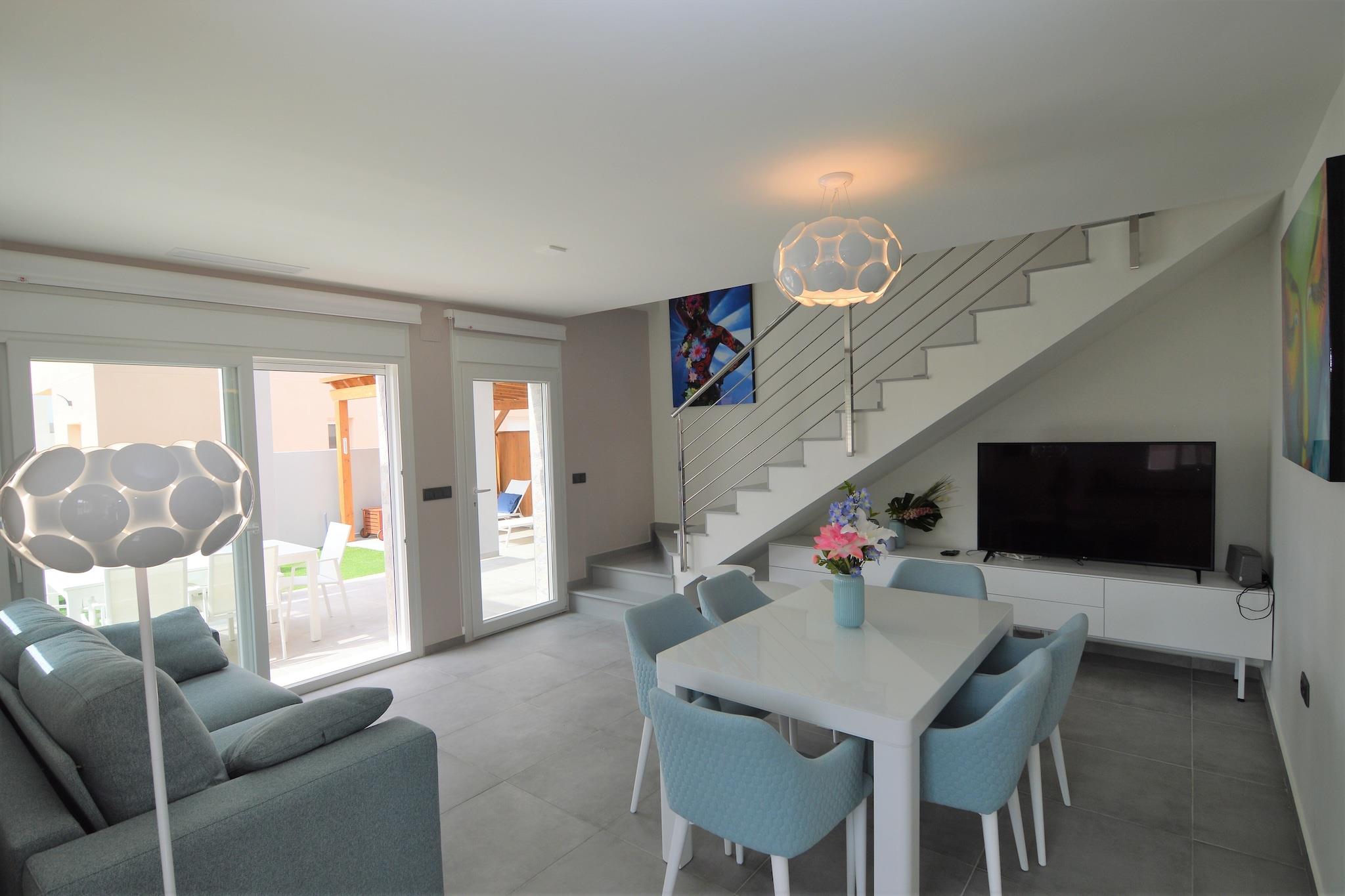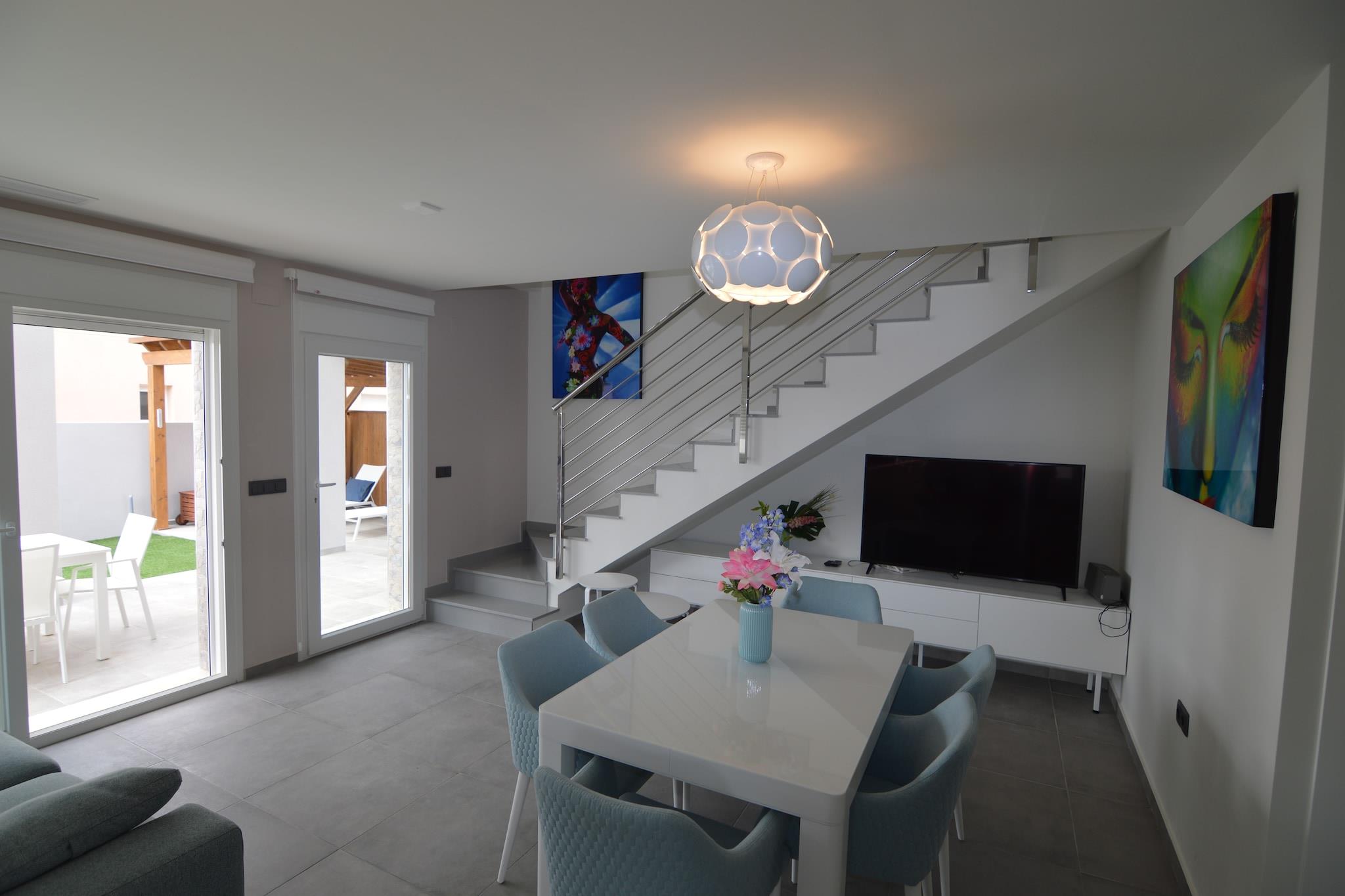 Moderna bekvämligheter väntar Denna moderna villa ligger i Rojales och erbjuder en avkopplande oas med elegant inredning, tre bekväma sovrum och mycket dagsljus. Designad med familjer och grupper i åtanke, har hemmet en privat pool, anlagd trädgård och inbjudande utomhusterrasser där du kan varva ner under den spanska solen. De luftkonditionerade utrymmena garanterar komfort året runt, medan det fullt utrustade köket gör det till ett nöje att laga mat. Med parkering på plats och genomtänkta bekvämligheter känns din vistelse enkel och stressfri. Utforska närliggande städer Bara 1,6 km bort erbjuder Benijófar butiker, kaféer och lokala restauranger, medan Ciudad Quesada (3 km) och Torrevieja (17 km) ger ännu mer variation med livliga marknader, livliga gator och kulturella attraktioner. För en dag vid havet ligger Guardamars gyllene sand och talldyner bara 12 km bort - perfekt för ett uppfriskande dopp eller en eftermiddagspromenad. Mat och djurvänligt kul Lokal mat är en höjdpunkt, med traditionella spanska matställen och internationella alternativ bara några minuter från villan. Husdjur är också välkomna, och det omgivande området erbjuder natursköna promenadstigar och parker där du och din fyrbenta följeslagare kan njuta av tiden utomhus tillsammans. Med Alicantes flygplats bara 39 km bort, kombinerar denna villa komfort, tillgänglighet och autentisk Costa Blanca-charm - vilket gör den till ett utmärkt val för en minnesvärd vistelse.