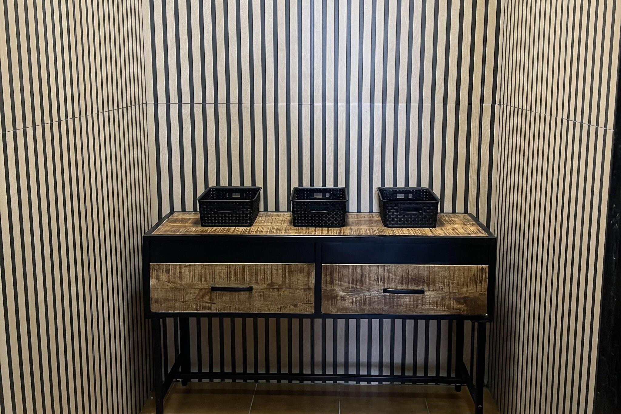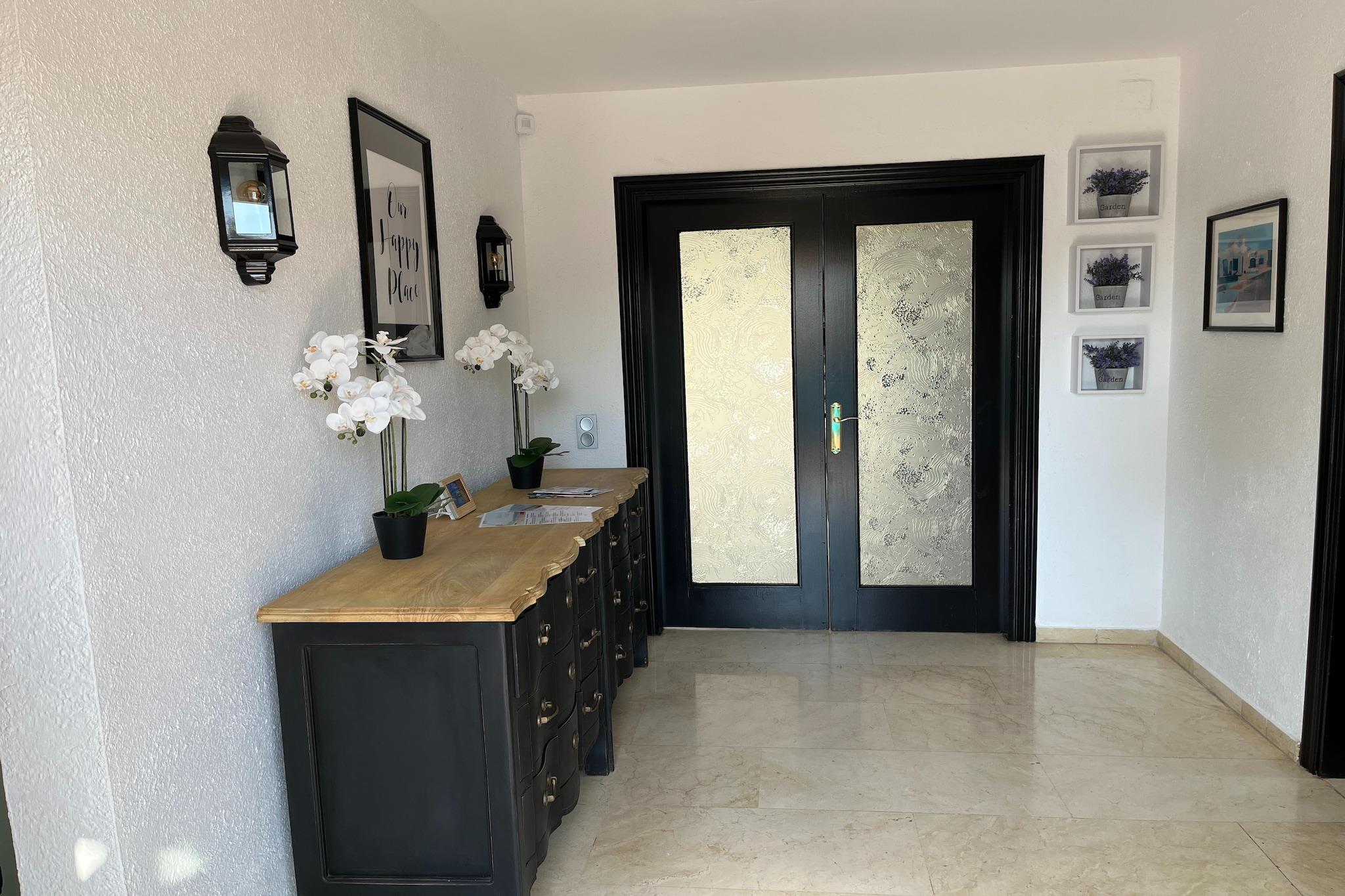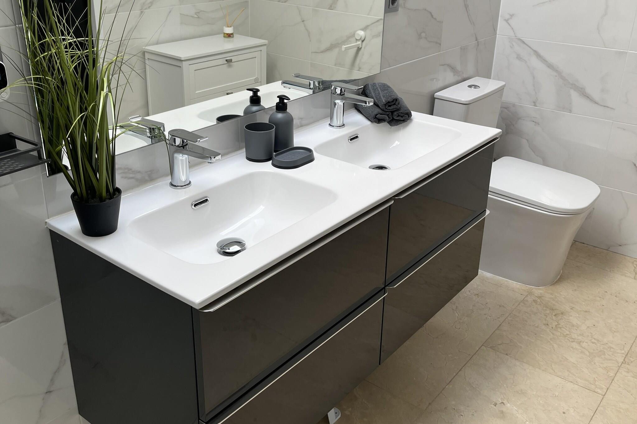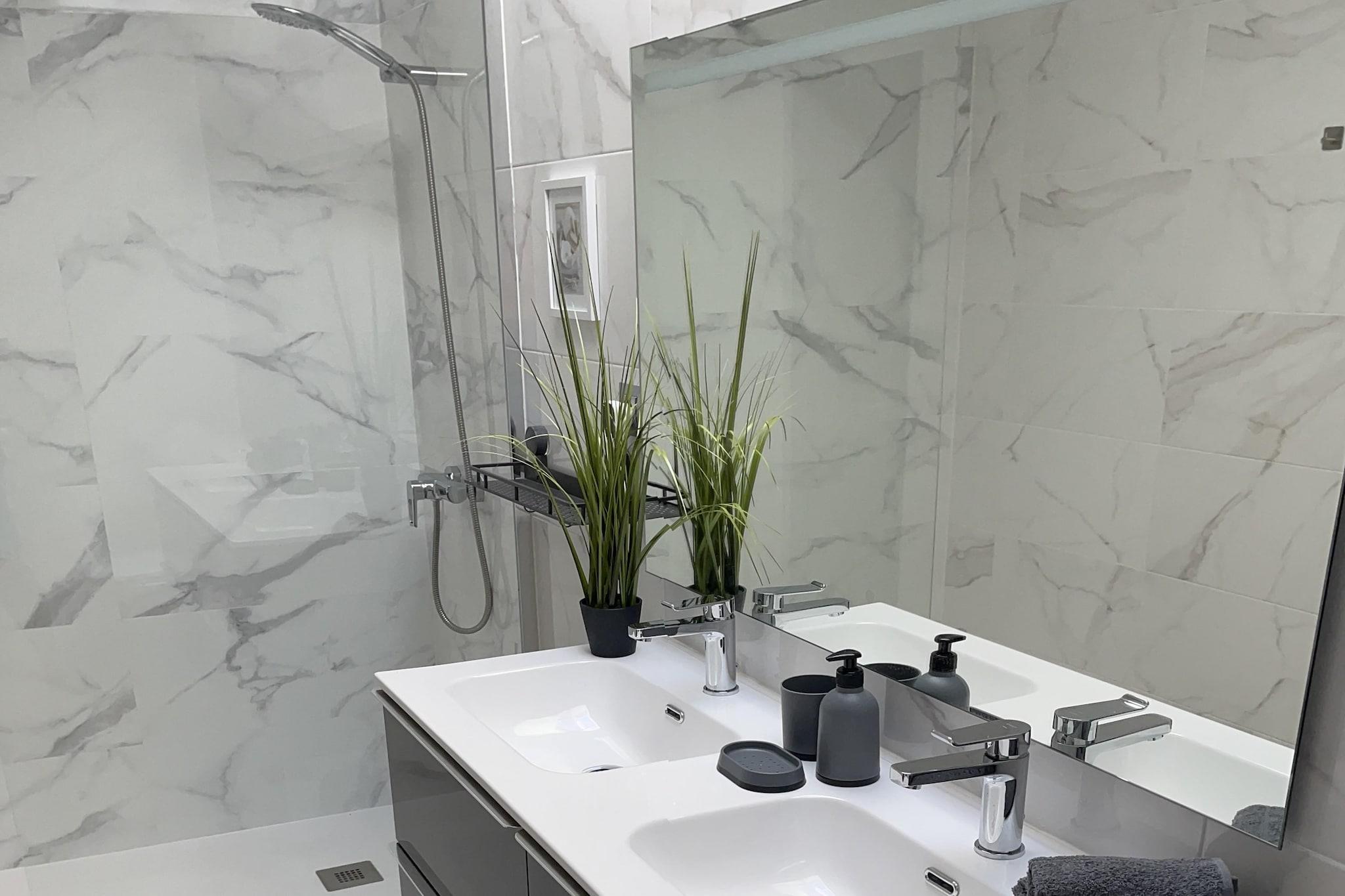 Bottenvåningen: (Entré(delas med andra gäster ), Kök(Kokplattor, vattenkokare, brödrost, Fläkt, kaffebryggare, ugn, mikrovågsugn, kyl och frys), sovrum(enkelsäng, enkelsäng), Bedroom with bathroom(dubbelsäng, dusch, handfat, toalett ), Bedroom with bathroom(dubbelsäng, badkar med dusch, handfat, toalett ), badrum(dusch, handfat, toalett , hårfön), gym(träningsredskap), värme, luftkonditionering, terrass) På våning 1: (sovrum(dubbelsäng), gillestuga(lekplats), luftkonditionering, takterrass, ) tvättstuga(torktumlare, tvättmaskin, strykbräda, strykjärn), garage(kan nås från utsidan), fransk balkong, parking lot(public), swimmingpool(delas med andra gäster , utanför, varav en del för barn (50cm djup), opened from Jan upto and including Dec)