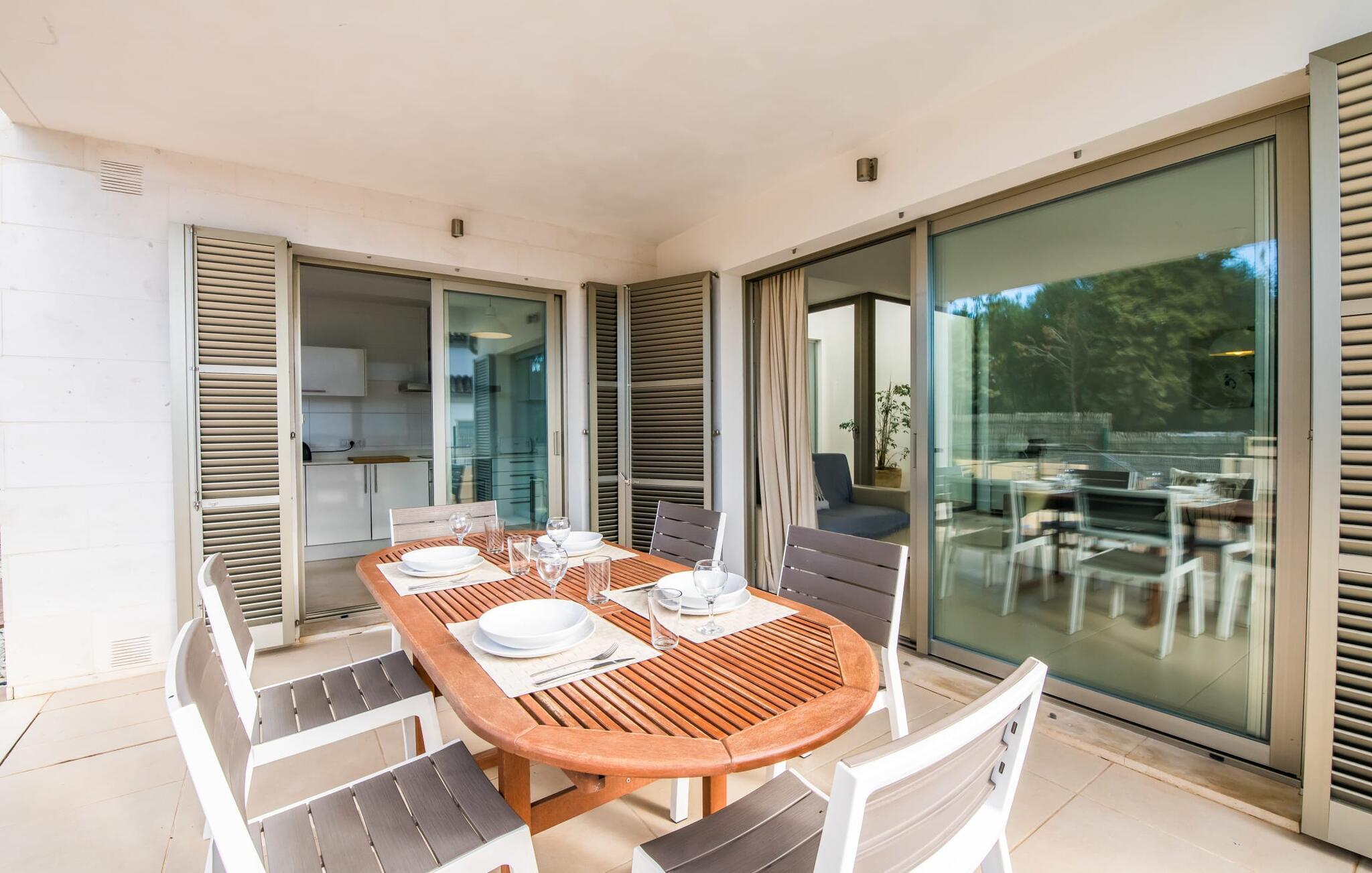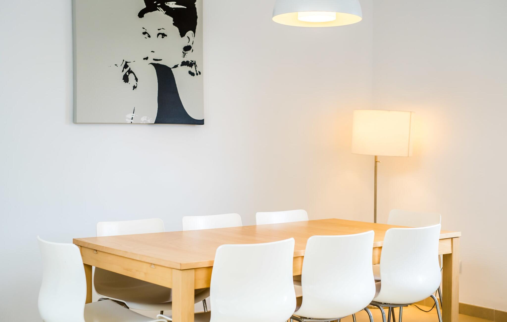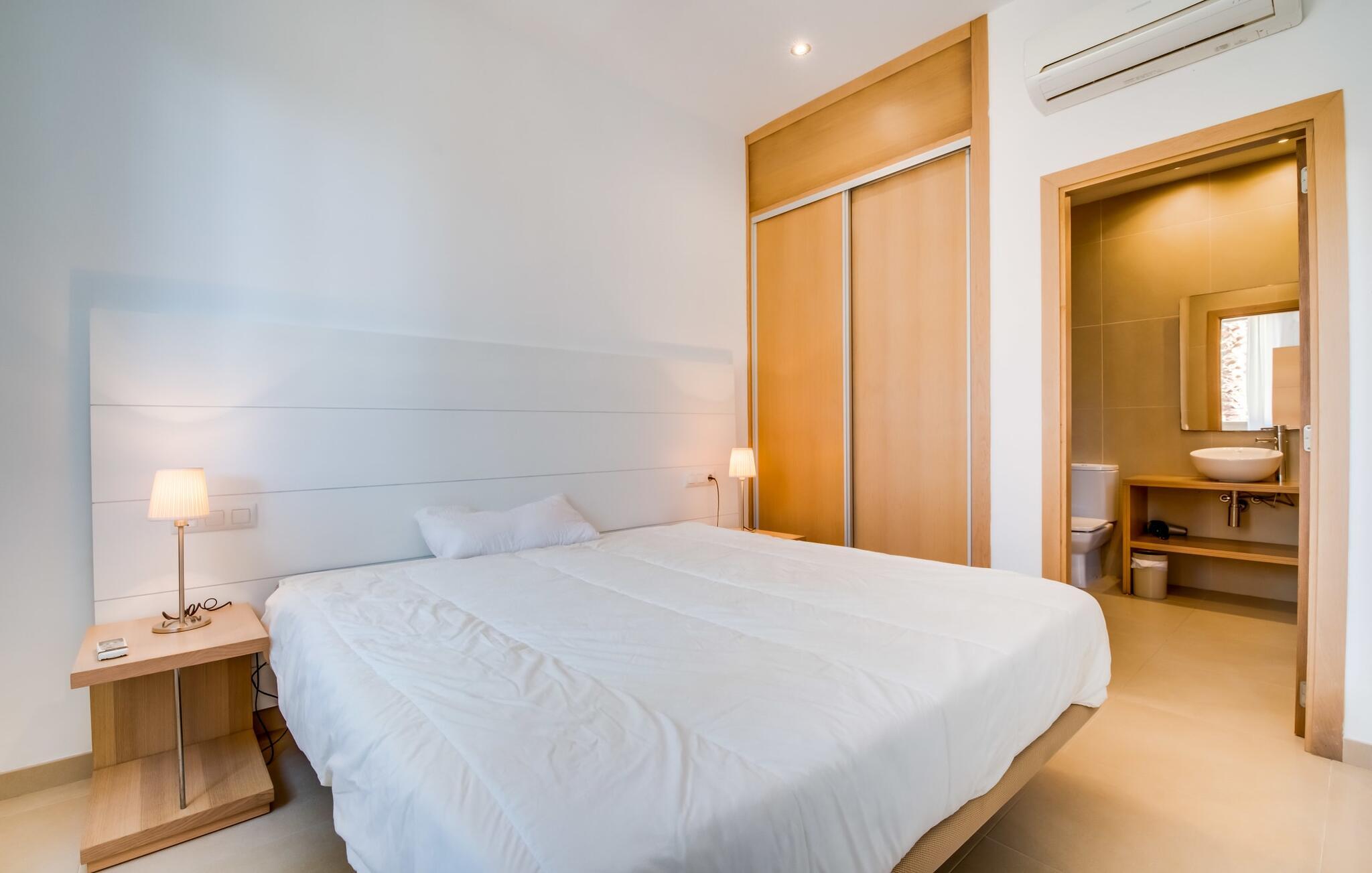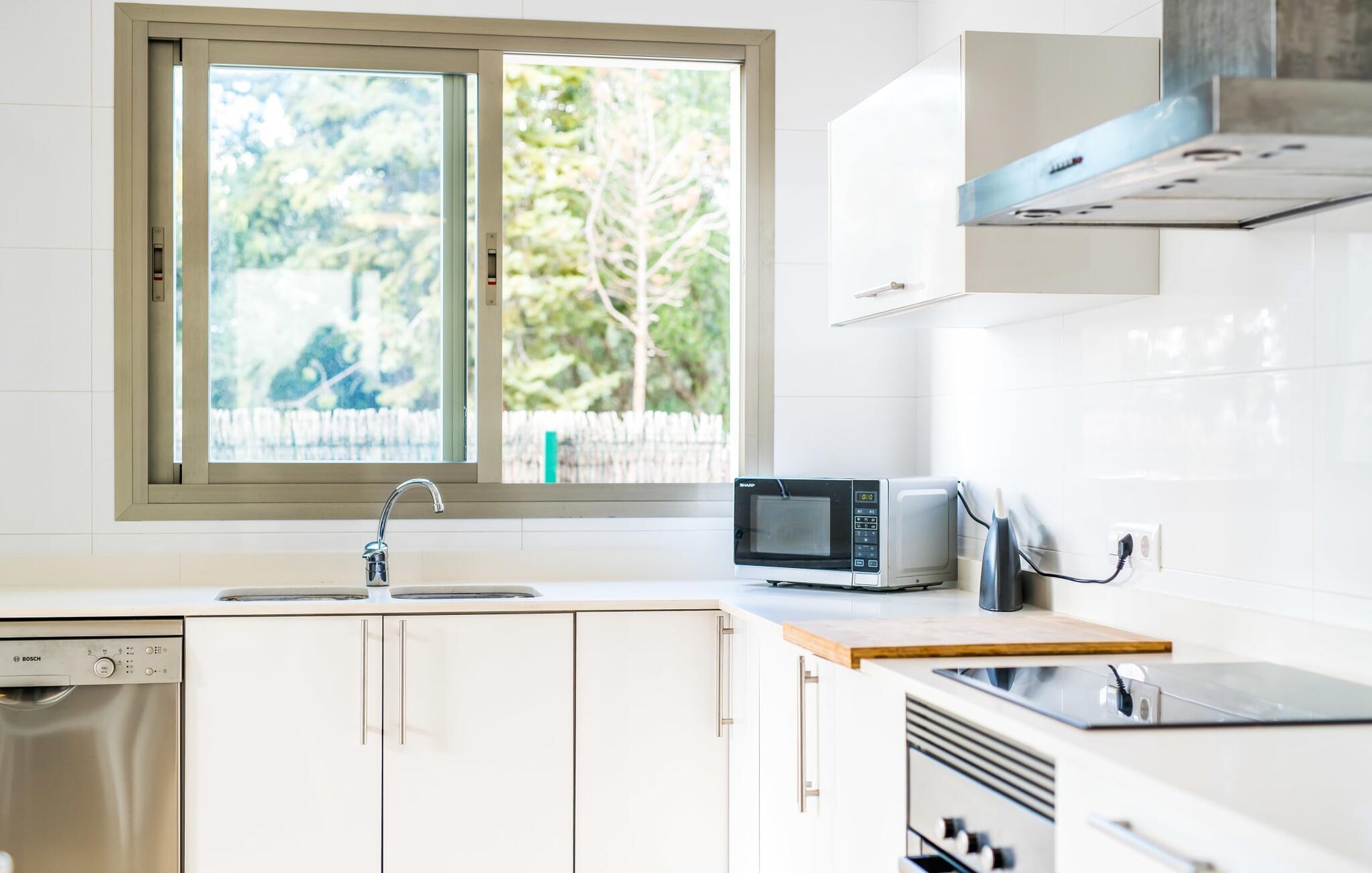 Den skinande vita Villa Roure de Alcudia kombinerar allt du behöver för en drömsemester på Mallorca under ett tak. Detta semesterhus för åtta gäster får höga poäng bara i utomhusområdet: En privat pool i ett bostadsområde, som inte är en självklarhet, är lika mycket en del av den paradisiska atmosfären som en inbjudande solterrass med bekväma solstolar. Det knotiga gamla olivträdet några trappsteg upp skapar en klassisk medelhavsatmosfär. Matbordet är också upphöjt, precis intill huset, varifrån du har en utmärkt utsikt över poolen och samtidigt en behagligt kort promenad in i huset. På kvällen kommer du säkert att känna för att tända upp tegelgrillen och förbereda kulinariska läckerheter över glöden. En terrass på övervåningen avrundar utbudet av uteserveringar och erbjuder underbar utsikt så långt som till havet.