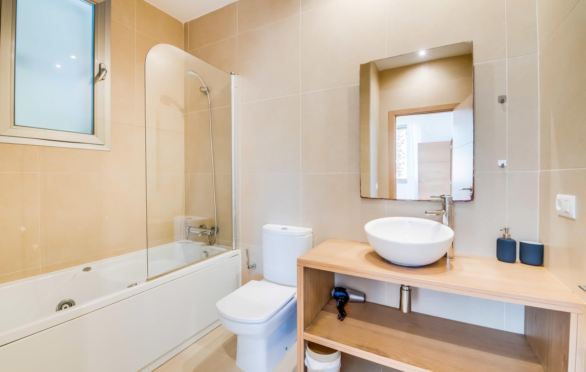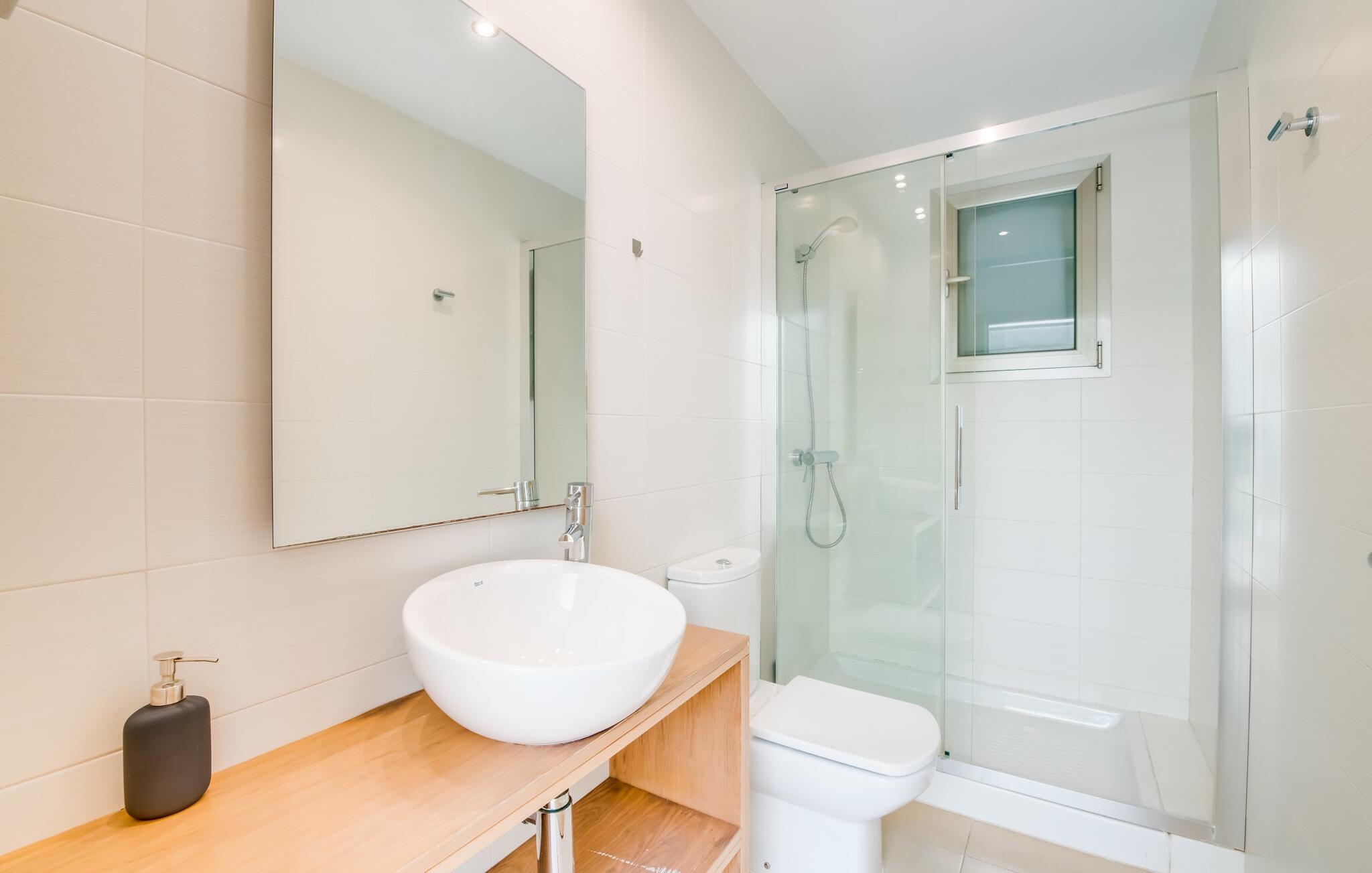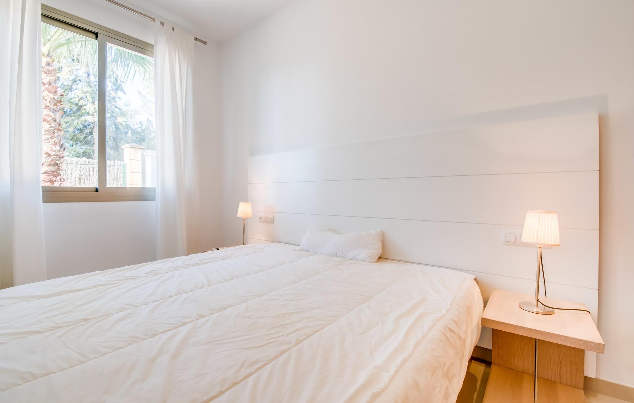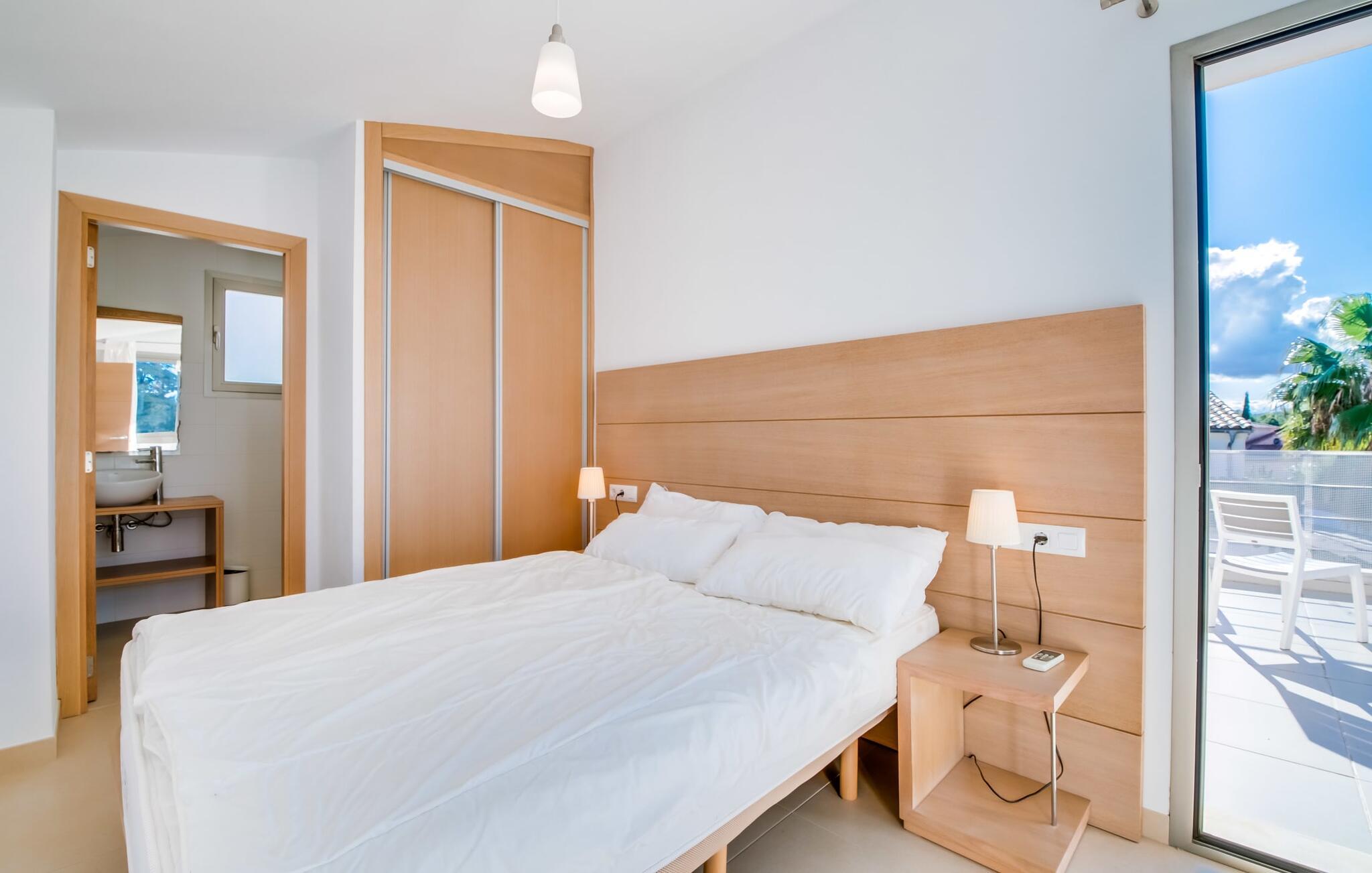 Interiören fortsätter att vara underbart översvämmad av ljus. Här är det raka linjer, ljusa och harmoniska färger och former som gäller. Förutom entrén finns det ett vackert vardagsrum/matsal på bottenvåningen samt ett kök, som naturligtvis är fullt utrustat och skiner i den trendiga vita stilen. Det finns till och med plats för ett extra matbord. Tre estetiskt utformade dubbelrum, varav ett har eget badrum, och ett andra badrum ligger också på detta vardagsrumsplan, som har en mycket speciell effekt tack vare glaskuben. Det fjärde sovrummet, också med eget badrum, ligger på övervåningen. Härifrån har du tillgång till den tidigare nämnda terrassen, där du också kan fira ditt första kaffe på morgonen. Denna charmiga villa med privat pool ligger i det ganska lugna Cielo de Bonaire. Havet ligger bara 10 minuters promenad bort. Området är inte särskilt turistigt och är därför den perfekta tillflyktsorten för alla Mallorca-semesterfirare som letar efter lugnet på ön. De attraktiva sevärdheterna i Alcúdia och Pollensa ligger 5-10 minuter bort med bil och kan lätt nås via väg. Det finns flera attraktiva stränder inom en radie av 2 till 4 kilometer.