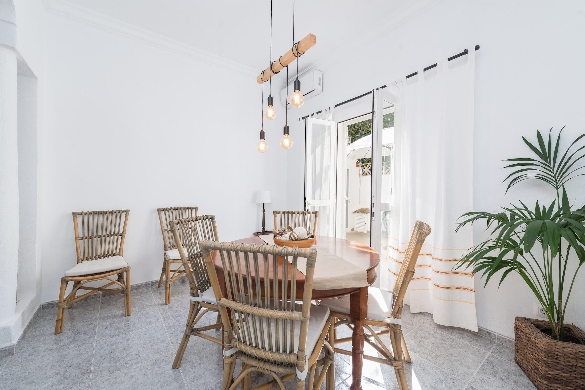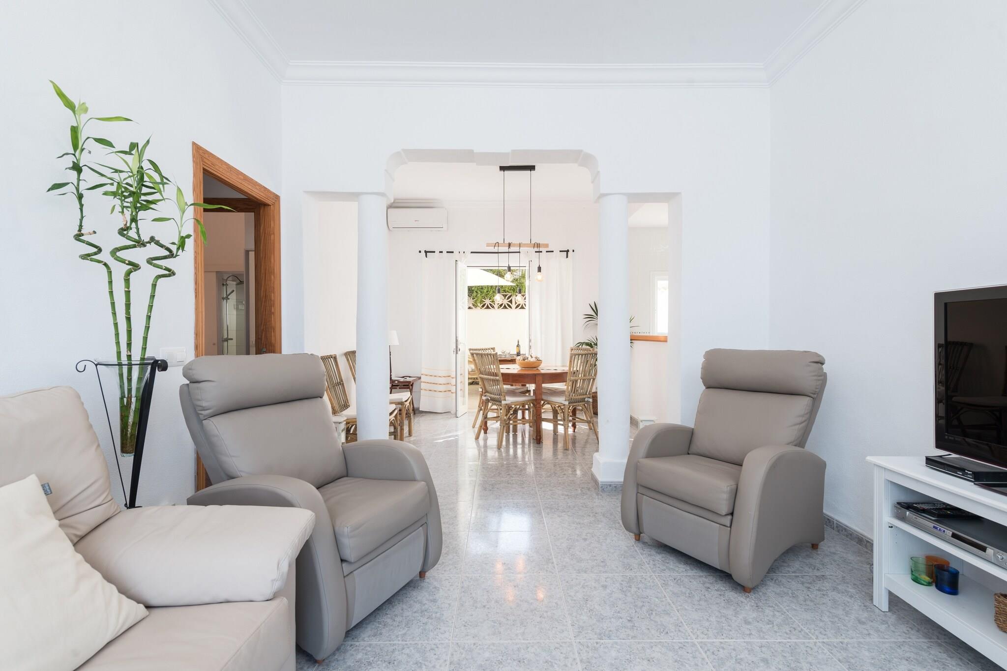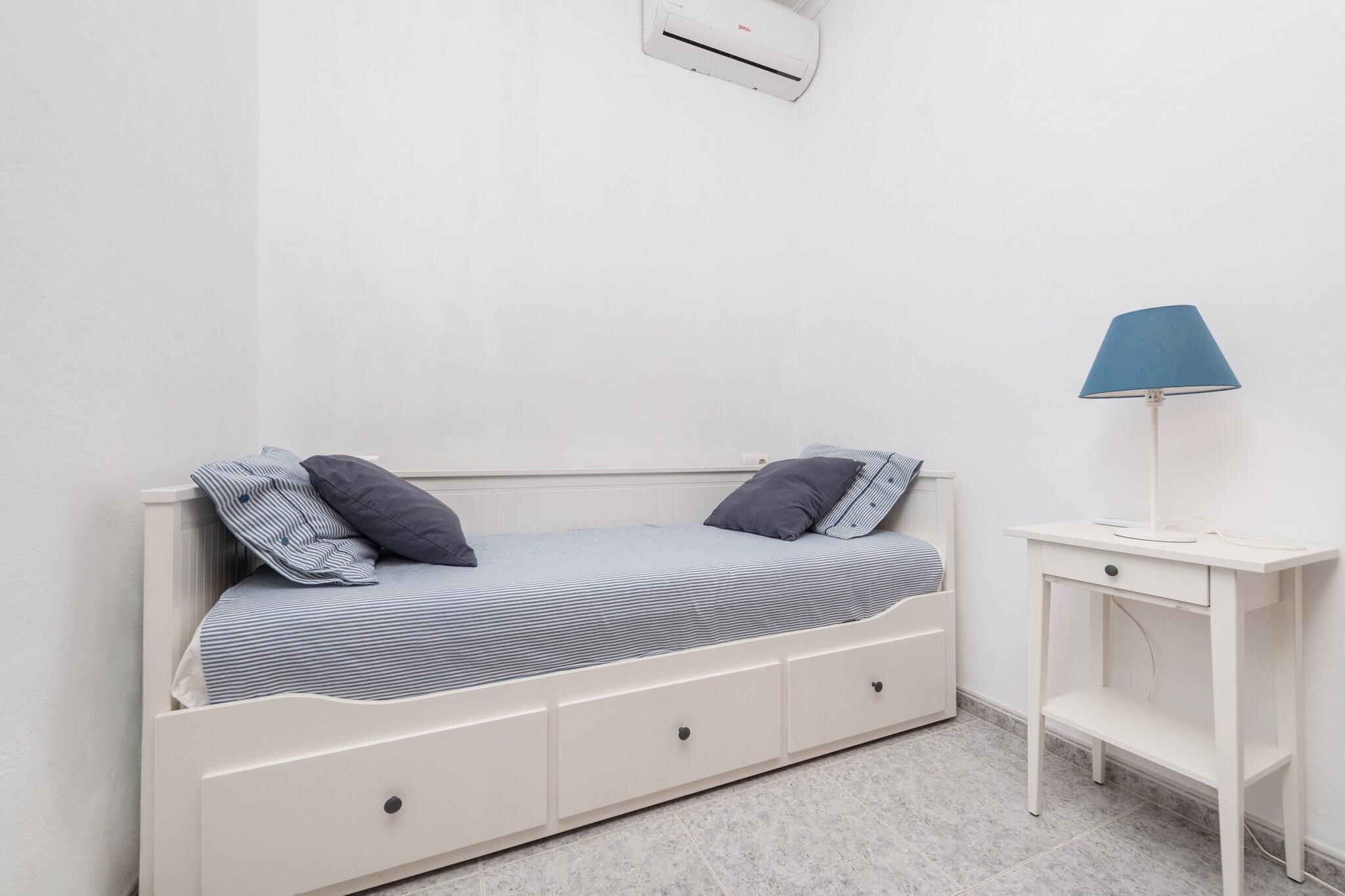 Seaside Alfresco Living Gå in på baksidan av detta radhus och njut av minnesvärda morgnar med frukost eller kvällsgrillningar under bar himmel. Bara 15 meter från stranden sätter ljudet av vågor tonen för din vistelse, och en snabb promenad tar dig rakt in i Medelhavet. Solstolar och trädgårdsmöbler gör detta utrymme idealiskt för att varva ner eller njuta av en drink medan du njuter av kustatmosfären. Ljusa interiörer och komfort Inuti välkomnar luftiga utrymmen och en fräsch inredning dig till ett mysigt vardagsrum med satellit-TV och DVD-spelare, kompletterat med fängslande havsutsikt. Köket med öppen planlösning har en keramikhäll, ugn och alla nödvändiga redskap för att laga mat hemma. Luftkonditionering överallt säkerställer komfort året runt. Tre sovrum inkluderar två dubbelrum och ett enkelrum, alla med AC, plus ett badrum med dusch och ett separat badrum med badkar. Praktiska bekvämligheter inkluderar en tvättmaskin, torktumlare, strykjärn, strykbräda, barnsäng och barnstol. Prime kustnära läge Detta hem ligger vid stranden i Sa Marina i Alcúdia och ger enkel tillgång till staden Alcúdia med sina charmiga gator, butiker och restauranger. Golfentusiaster kommer att uppskatta den närliggande Alcanada Golf, bara 7 km bort. Kollektivtrafik, lokala matställen och färjehamnen är alla inom räckhåll, vilket gör det enkelt att utforska. Medan vägen framför ger tillgänglighet, garanterar den fridfulla miljön vid stranden en avkopplande vistelse. Husdjur är inte tillåtna och evenemang är förbjudna.
