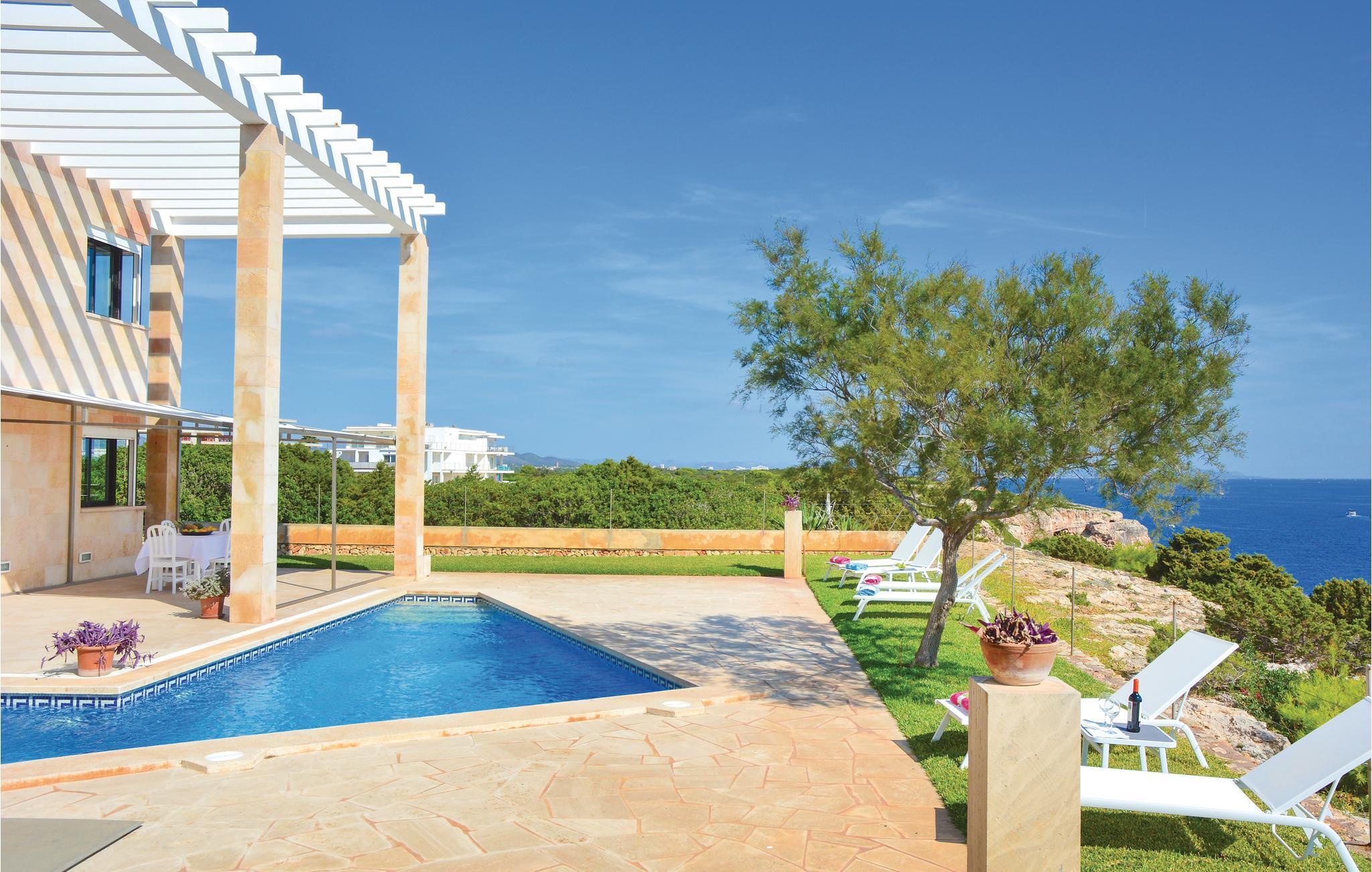 I den här extravaganta villan tillbringar du en oförglömlig och avkopplande semester direkt i 1st sea line med dina nära och kära eller dina vänner. Den milda brisen och den fria utsikten över det djupblå Medelhavet kommer att ge dig intrycket av att resa på en lyxjakt. Interiören är rymlig och inredningen mysig. Tack vare den intressanta arkitekturen har vardagsrummet dubbla takhöjder och är därför, liksom hela huset, behagligt översvämmat av ljus och tilltalande. Sovrummen är alla utrustade med luftkonditionering. Du kan tillbringa underbara baddagar på de närliggande stränderna med kristallklart vatten och sedan återvända till din vackra semesteroas. På terrassen med utsikt över den romantiska havsstranden kan du göra det bekvämt för dig själv i den härliga chillout-sittgruppen. Låt själen dingla där, njut av den drömlika utsikten över Medelhavet eller svalka dig i den eleganta poolen framför dig. I trädgården finns också ett extra badrum med dusch och en utomhusdusch med varmvatten. Och om du känner dig sugen på en läcker skaldjurs- eller fiskmåltid kan du lätt nå den charmiga byn Porto Colom genom att ta en promenad. Där kommer du att frestas av de goda restaurangerna med sina specialiteter. Naturligtvis erbjuds fisk, skaldjur och paellas här, tillsammans med många andra rätter. Dessa kulinariska höjdpunkter i denna före detta fiskeby är kända över hela ön. Inte perfekt för barn. Grupper (utom familjer och par över 30 år) på begäran och med särskild deposition. Licensnummer: VT/104173