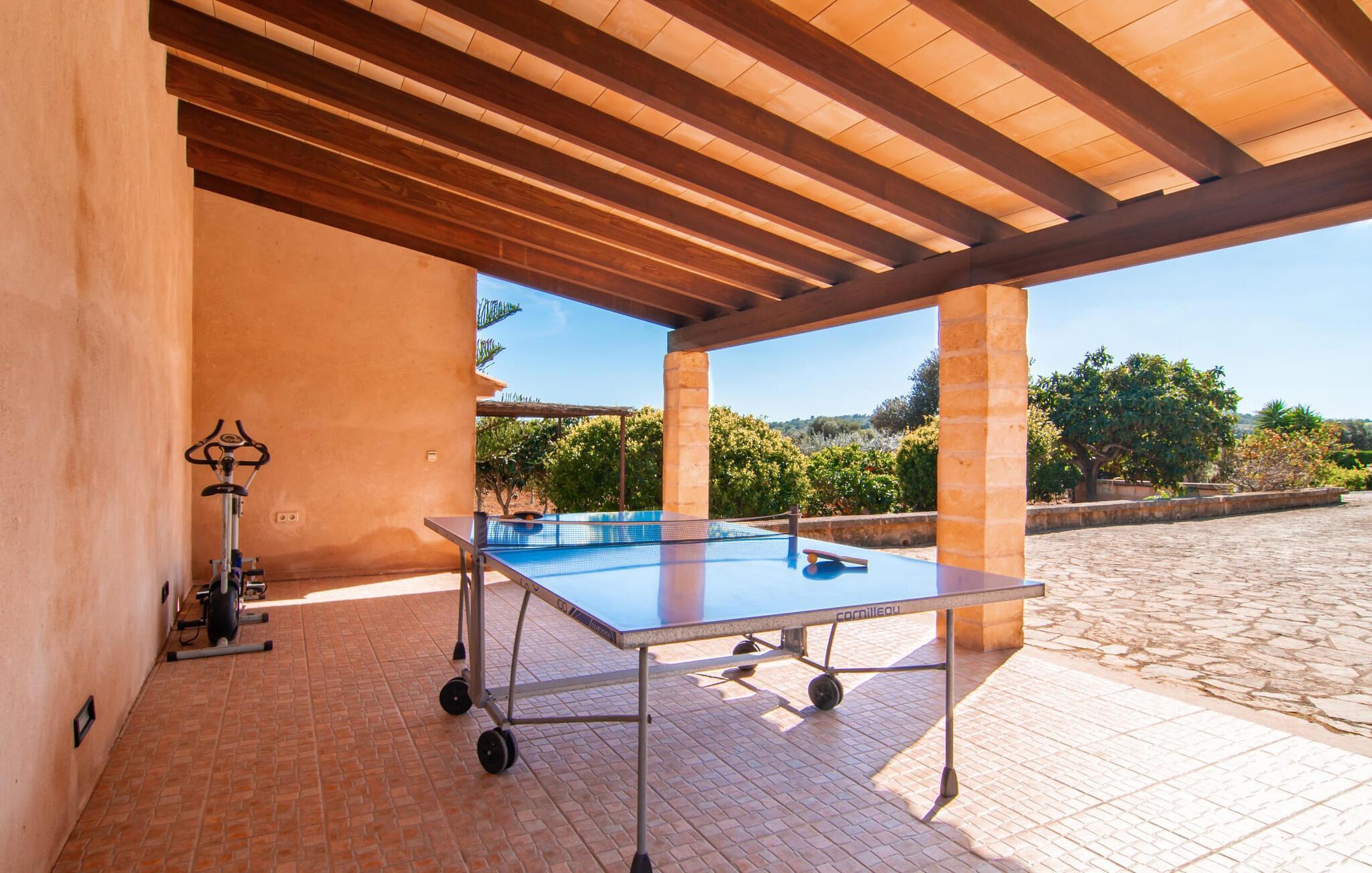 Denna naturstensbyggnad ligger inbäddad mellan pittoreska kullar och fält och omges av vackra träd som skapar en inbjudande och mysig atmosfär. Det rymliga terrassområdet runt poolen erbjuder gott om öppna och täckta platser att koppla av på. En semester på en finca på Mallorca inkluderar naturligtvis också trevliga grillkvällar, och de täckta terrasserna runt huset är perfekta för detta.