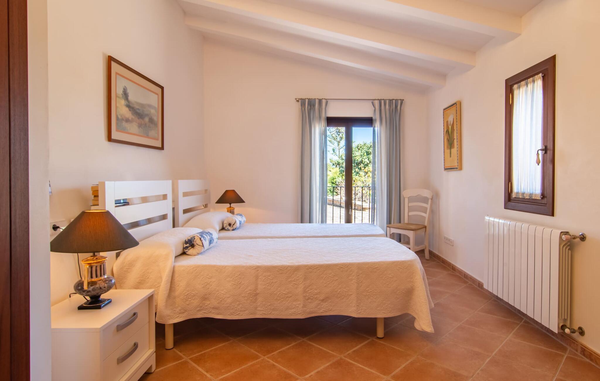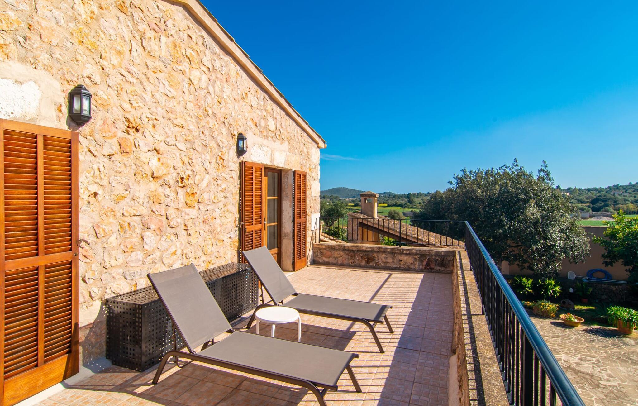 I huvudbyggnaden, som är fördelad på två våningar, finns ett inbjudande vardagsrum och en rymlig matplats. På övervåningen finns två sovrum, alla med eget badrum, samt en härlig balkong med vidsträckt utsikt. Detta är den perfekta tillflyktsorten för er semester på Mallorca.