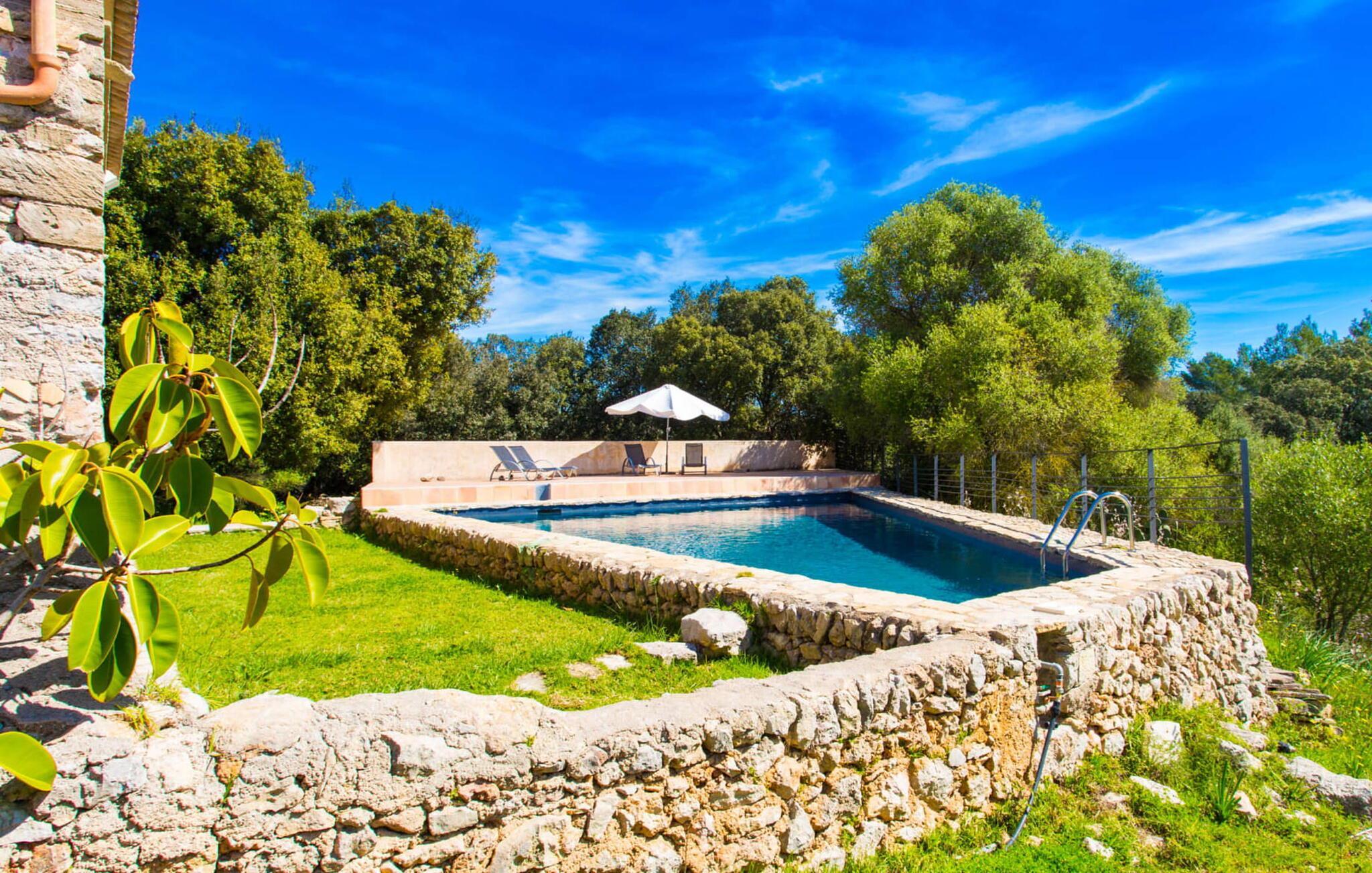 Som en god herde i ordets rätta bemärkelse tog en välkänd konstnär från ön kärleksfullt emot denna 200 år gamla fastighet. De gamla inventarierna och Son Pastors traditionella karaktär bevarades, omtolkades och anpassades sedan noggrant till komforten i ett modernt semesterhus. Tegelstenarna visar sin ålder och vissa gäster kan känna sig förflyttade till en annan region, där får och getter betade på den 60 000 m² stora fastigheten och vatten fortfarande måste hämtas från den gamla brunnen. Den rustika, täckta grillplatsen är svart av sot, ett tecken på hur ofta den användes. Marken med sina knotiga oliv- och mandelträd och cypresser är mer eller mindre obrukad. Överallt blommar och växer det i överflöd, medan växter breder ut sig över arkader och terrasser och bildar förtrollande sittplatser. Man vill helt enkelt gå barfota genom det färska gräset och beundra de dolda och öppna konstverken som är dolda överallt. Den geometriskt formade poolen med separat solterrass liknar också ett naturligt konstverk. Det är ett paradis för barn och vuxna som vill komma ihåg hur det känns att leva utan begränsningar.