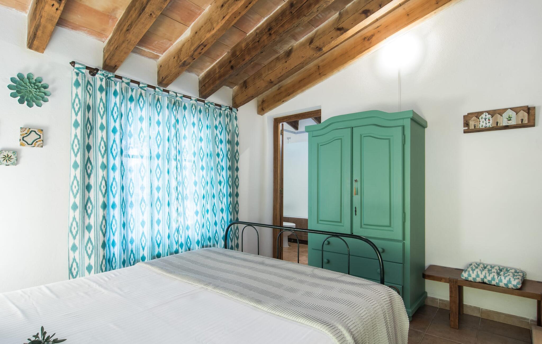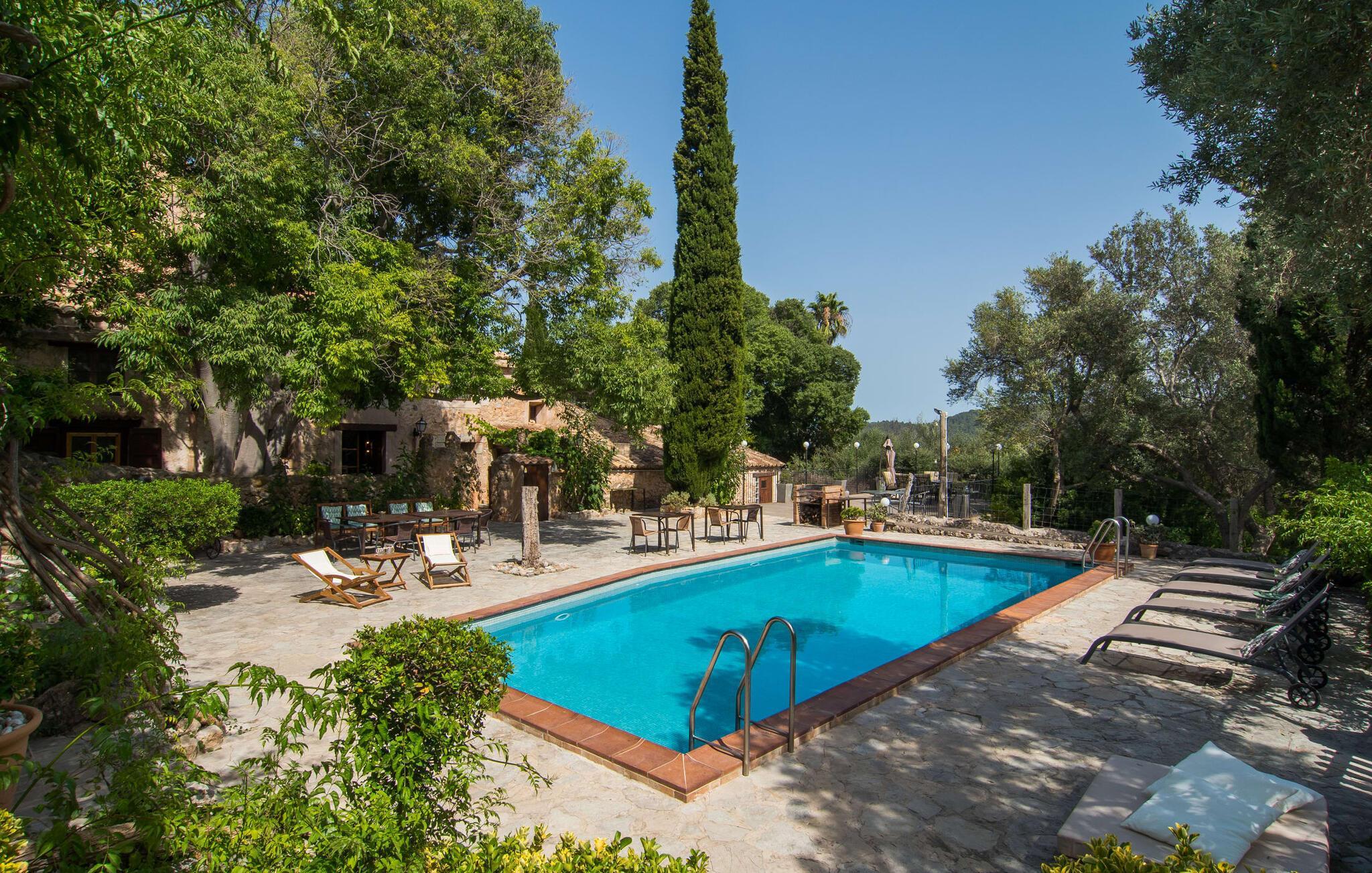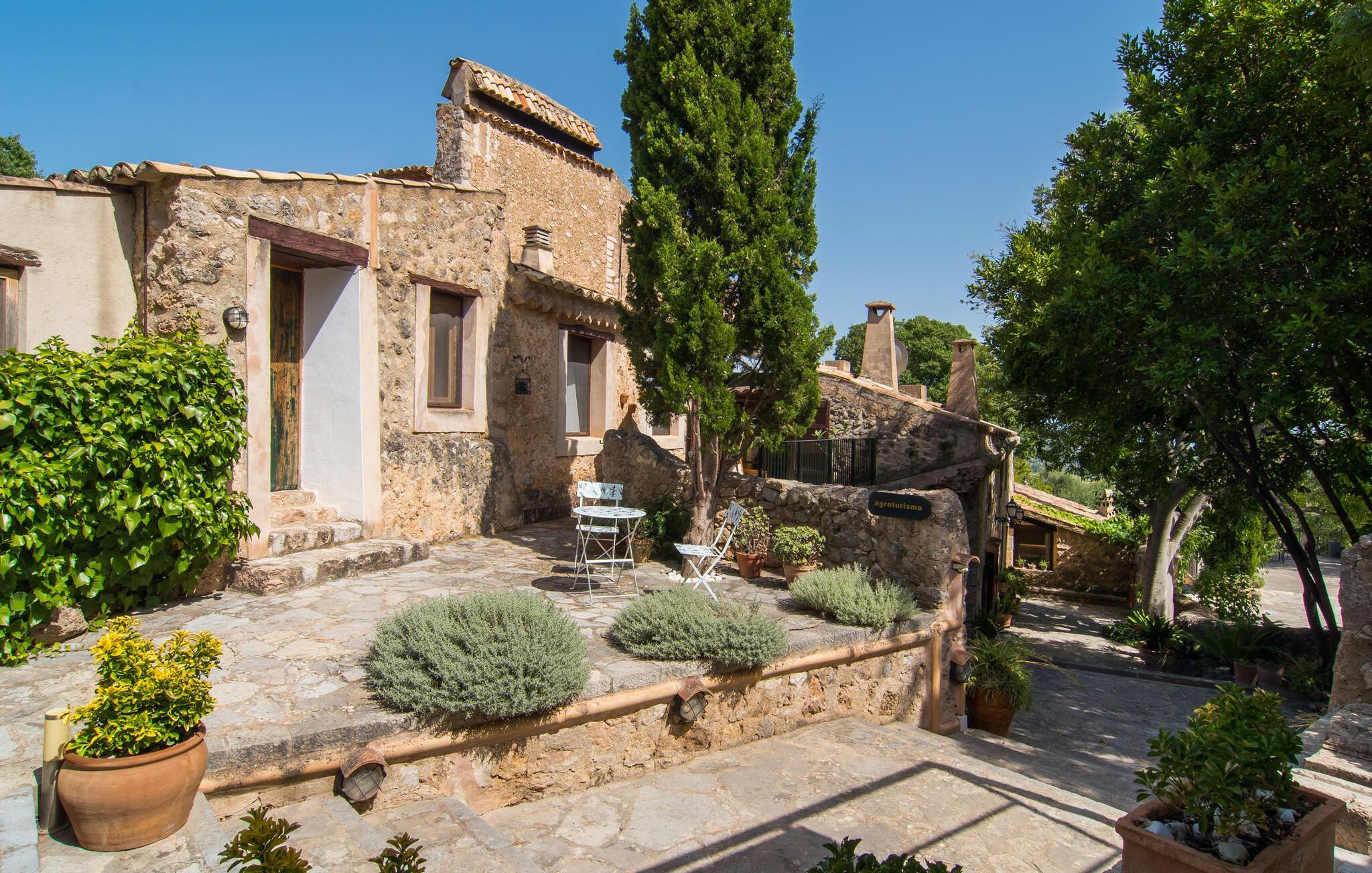 Den majestätiska Son Penyaflor Agroturismo-egendomen med över 16 hektar mark i en spektakulär lantlig miljö ligger i det lite kända centrum av ön nära Alaró. Långt borta från massturism kan du uppleva naturens skönhet i sorglös lugn. Njut av den vackra trädgården till den rymliga uthyrningsfincan full av olivträd, cypresser, palmer och en fruktträdgård och tillbringa en bekymmersfri semester där. Här kan du vara ett med naturen, vandra, meditera eller svalka dig i den uppfriskande poolen med omgivande solterrass. Solbadplatser och många vackert utformade sittplatser, varav några är täckta, erbjuder dig mysiga möjligheter till aktiv eller avslappnad avkoppling. Bortsett från naturens ljud kommer ingenting att distrahera dig från din semester. Här kan ni njuta av frukost tillsammans och kanske en mysig grillkväll med ett gott glas mallorkinskt vin från den vänliga ägarfamiljen i en idyllisk atmosfär. I denna förtrollande vackra uthyrningsfinca kommer du att upptäcka ett verkligt paradis av oöverträffad skönhet. Det finns knappast en bättre miljö för att sakta ner än detta hållbart renoverade semesterhus.