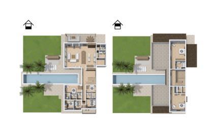 Fönster från golv till tak översvämmar villan med ljus och skapar en varm, inbjudande atmosfär. Den öppna planlösningen med vardagsrum och matplats är modern och genomtänkt designad, med ett överdådigt träbord och bänkar mellan vardagsrummet och köket. Det fullt utrustade köket är utrustat med högkvalitativa apparater, vilket gör det perfekt för självhushåll. Villan har sex luftkonditionerade sovrum på två våningar, alla med eget badrum och tillgång till en rymlig solterrass med fantastisk utsikt.
