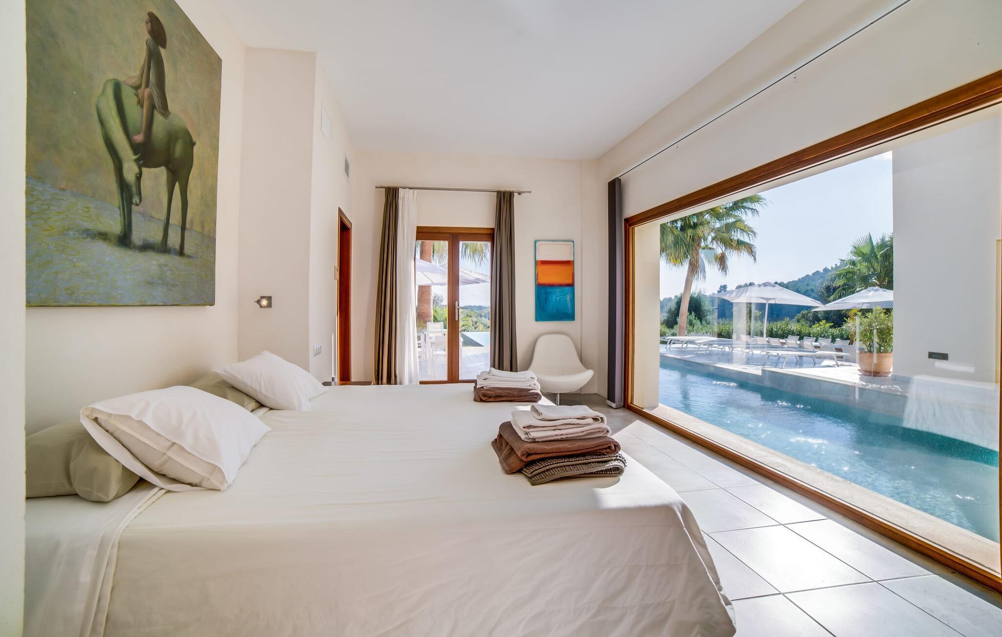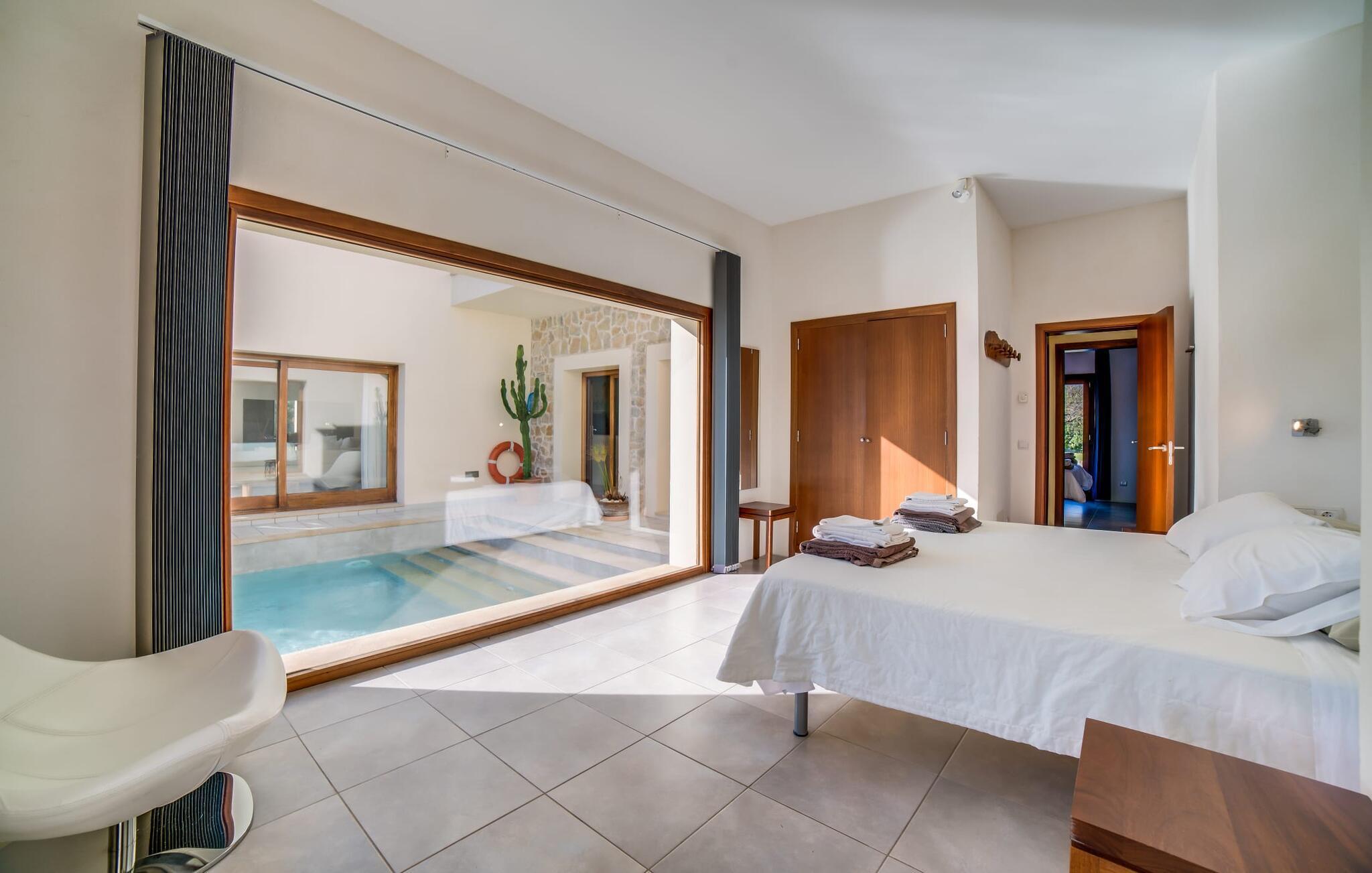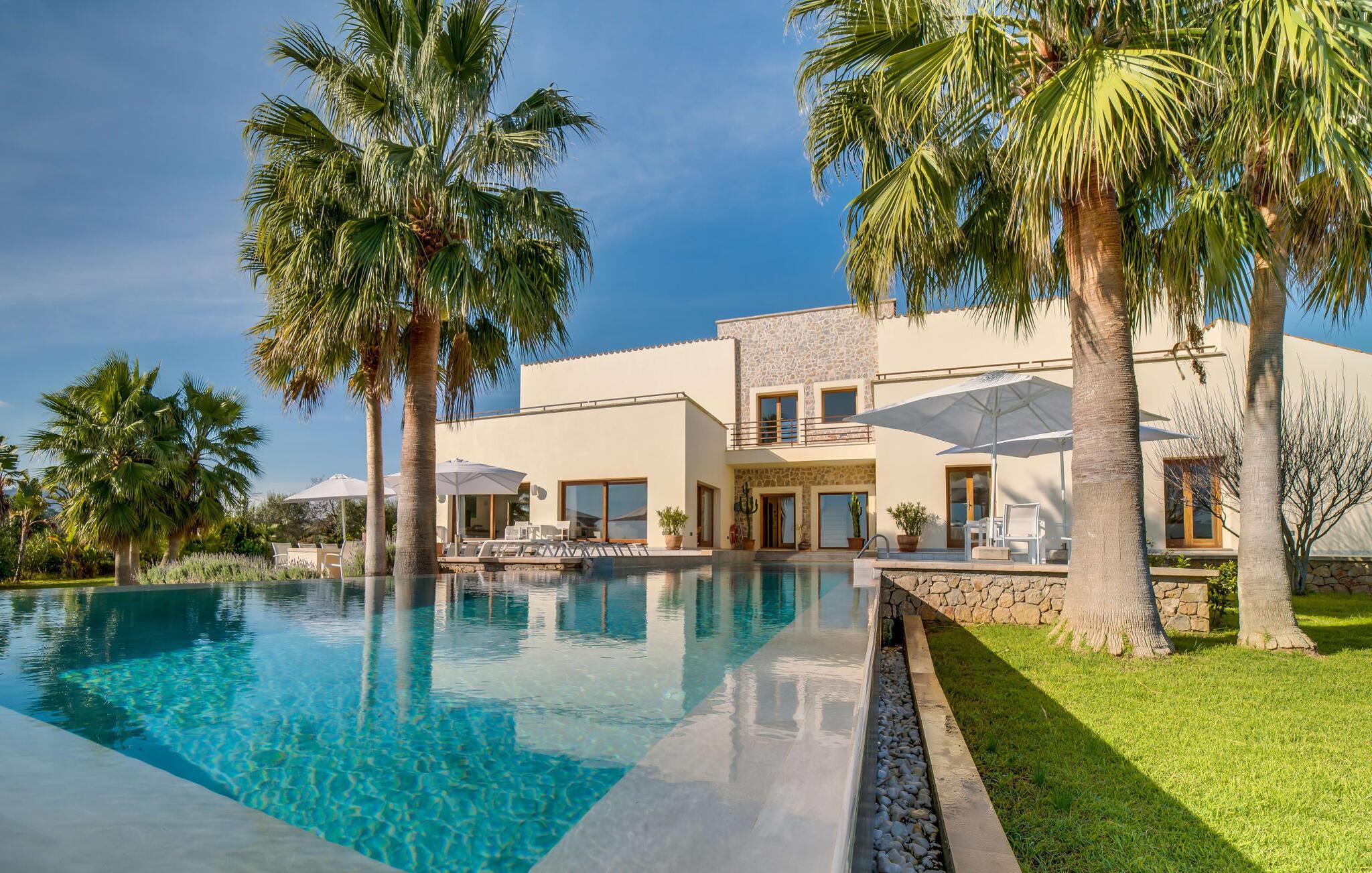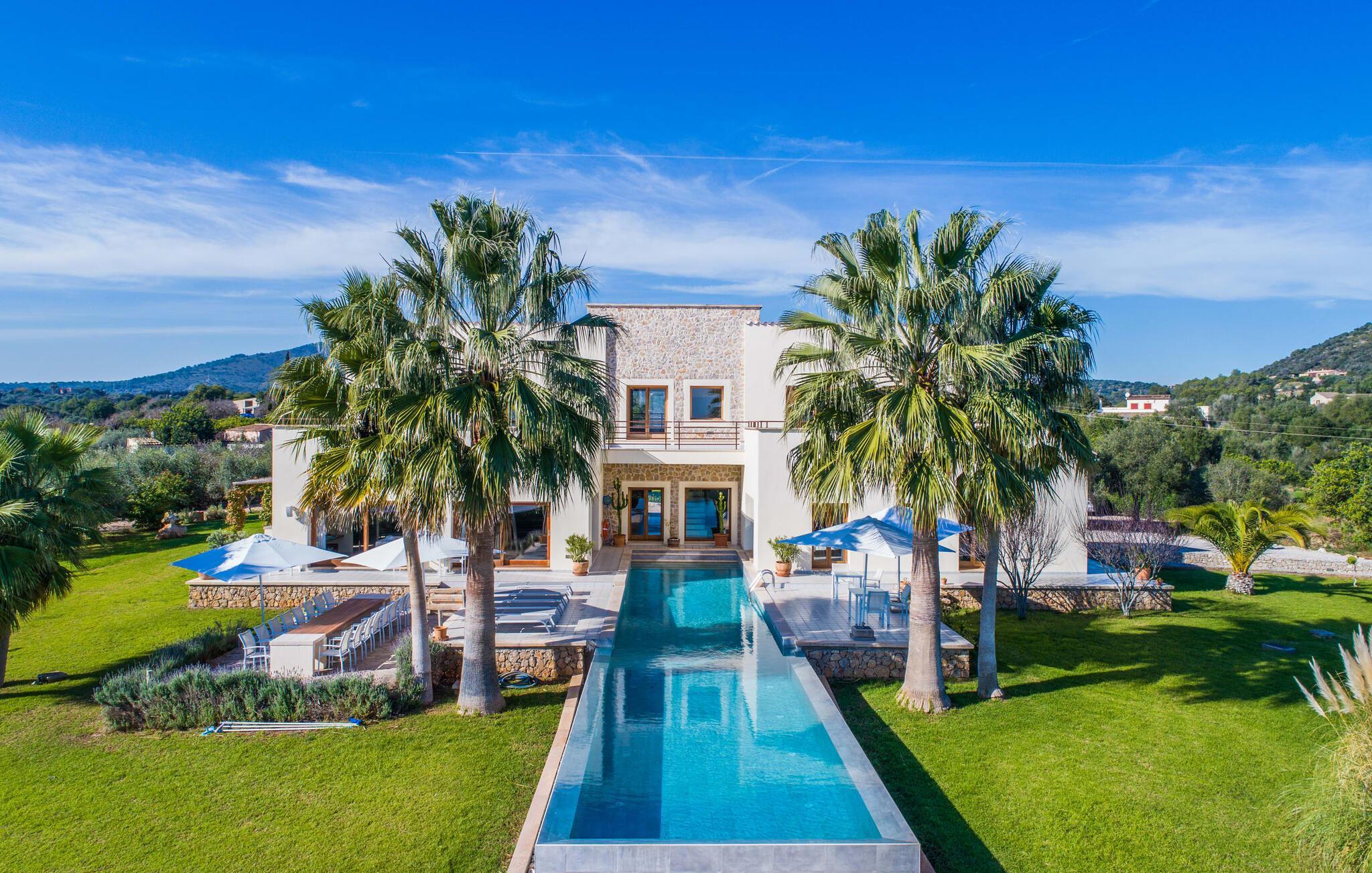 Uppfarten ger dig utsikt över den inbjudande, rymliga lyxvillan "Son Sard Nou", som ligger stolt på en vacker sluttning med palm- och olivträd, lavendel och cypresser.