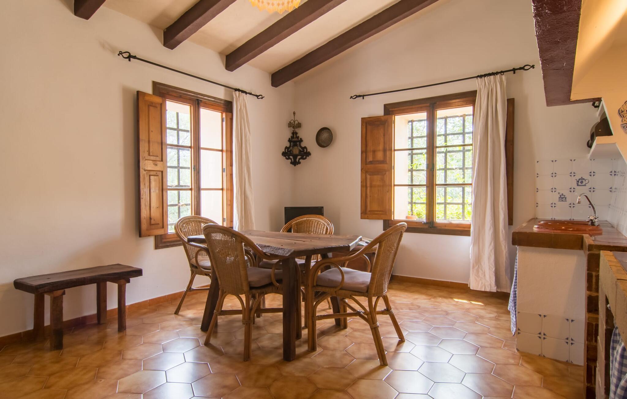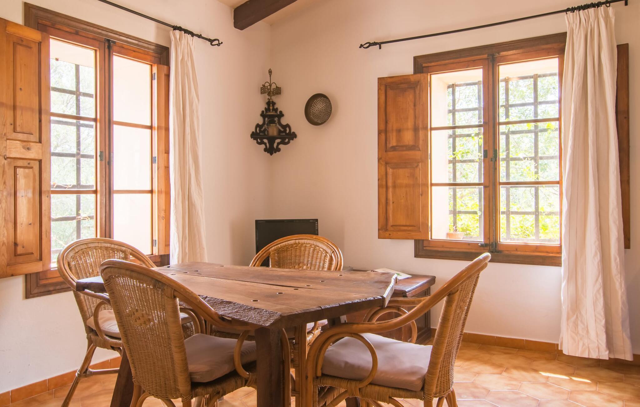 Det vackert designade semesterhuset "Son Torrat Es Muli" ligger i ett absolut lugnt läge på en svag sluttning, omgiven av vacker natur i centrum av ön. Den medeltida staden Petra, som är särskilt känd för sina lokalt odlade viner Cabernet Sauvignon, Chardonnay och Merlot, ligger 4,2 km bort, medan närmaste strand ligger 20 km bort.