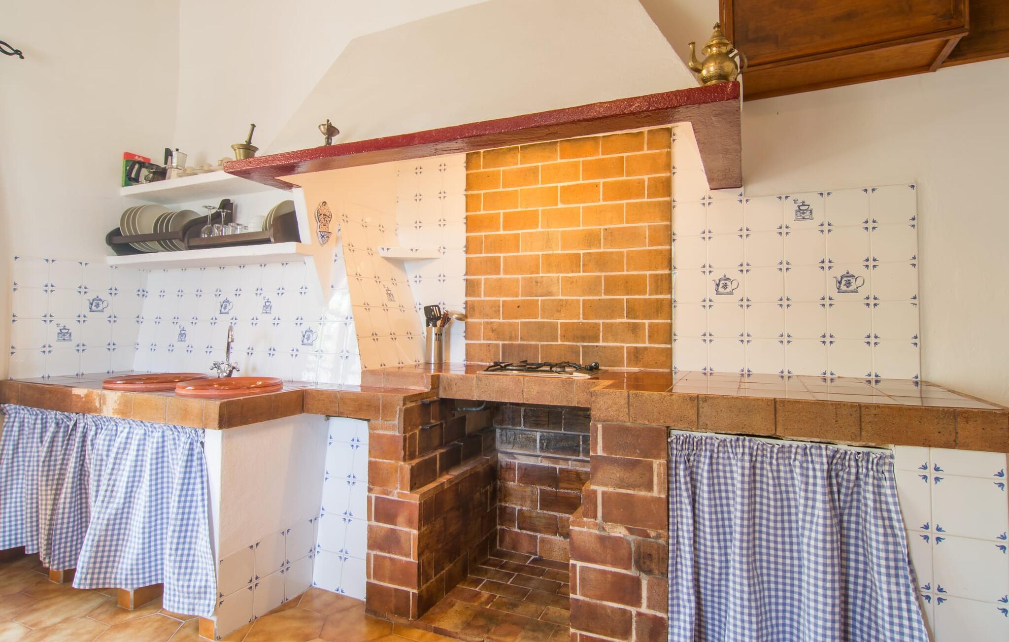Interiören utstrålar en mysig charm och kombinerar natursten med ljusa väggar och synliga bjälkar. I vardagsrumsdelen och matplatsen finns en bekväm soffa och ett unikt matbord tillverkat av trädskivor. Det praktiska köket med vitt och blått kakel och diskbänkar i terrakotta kompletterar rummet. Lägenheten har också ett diskret inrett sovrum med dubbelsäng och ett badrum med dusch. För ditt besök rekommenderar vi en terränggående hyrbil för enkel tillgång till orten.