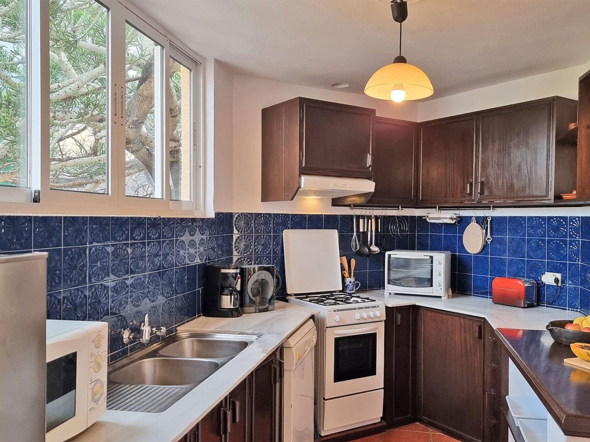 The spacious pool area is partially secluded and offers plenty of space with sun loungers and seating. Enjoy the day by the pool with a beautiful panoramic view of the mountains and the sea. A brick-built seating area is ideal for breakfast. Two terraces right next to the house offer both sun and shade and a cosy barbecue area.