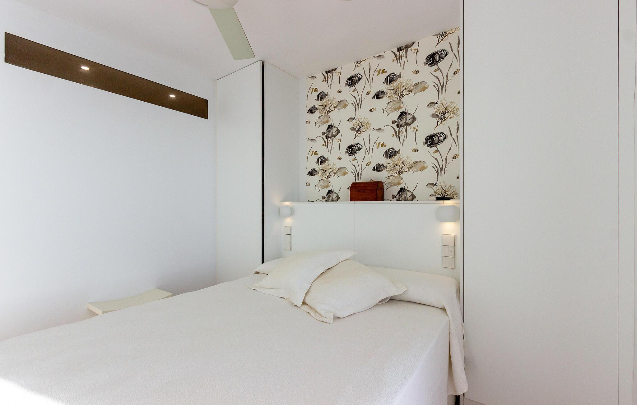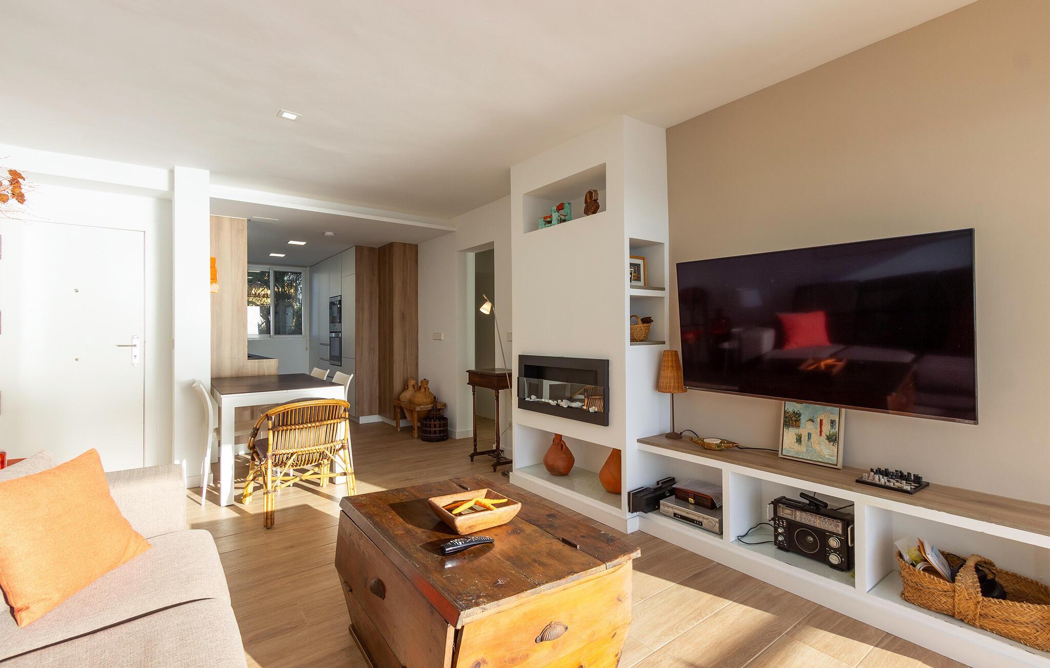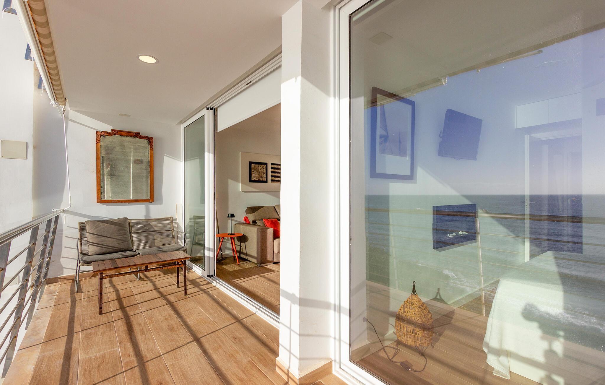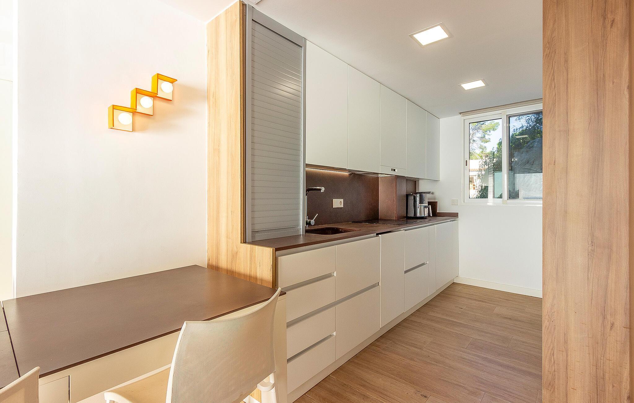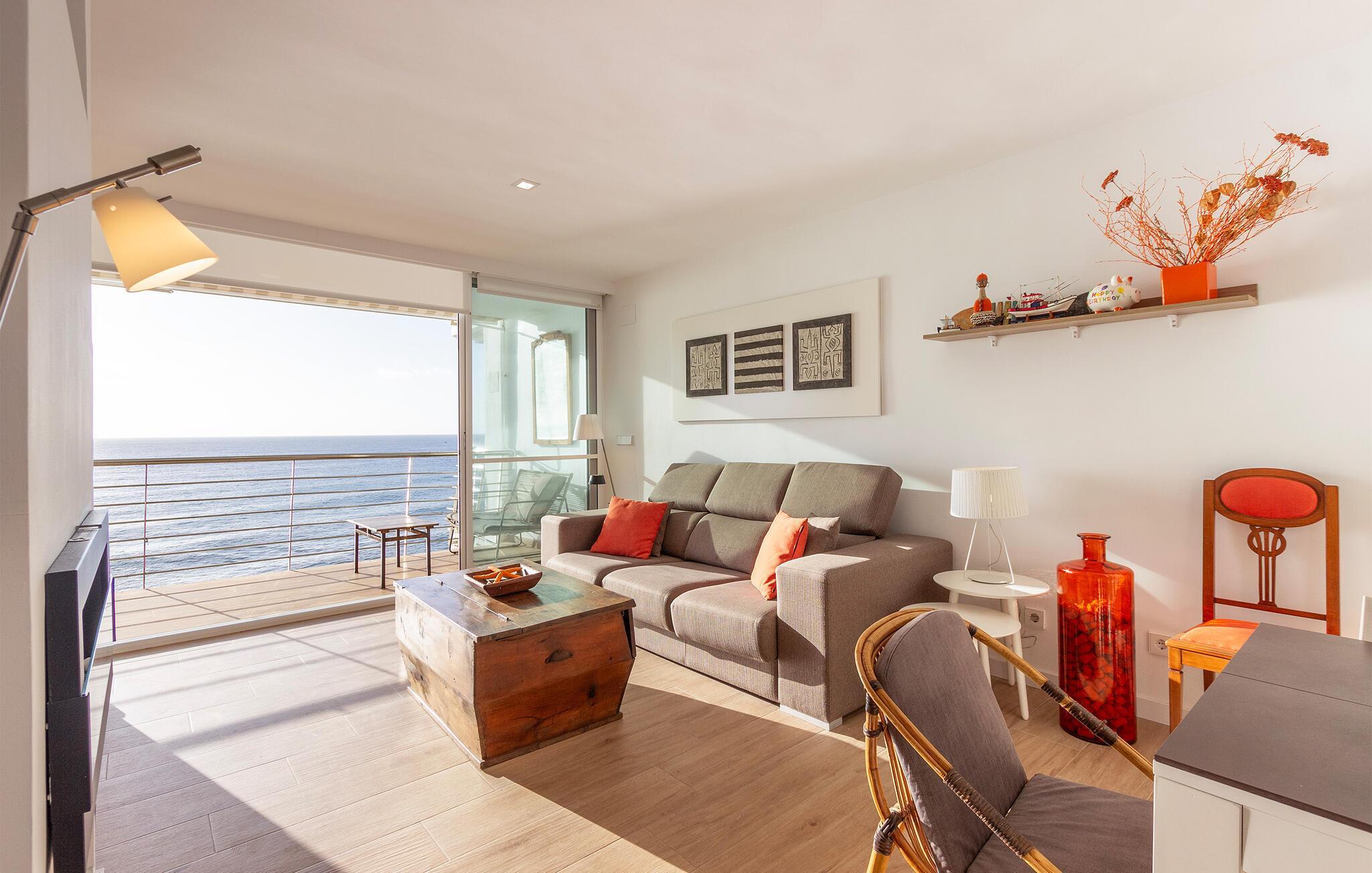 Denna moderna och eleganta semesterlägenhet i Teulada imponerar med sitt fantastiska läge precis vid havet. Högkvalitativa möbler och vackra detaljer skapar en atmosfär som får dig att känna dig som hemma. Det ljusa vardagsrummet erbjuder dig en trevlig kombination av komfort och elegans. Börja dagen med en kopp kaffe på den rymliga balkongen, ackompanjerad av det mjuka ljudet från havet. Här blir varje ögonblick en liten time out.