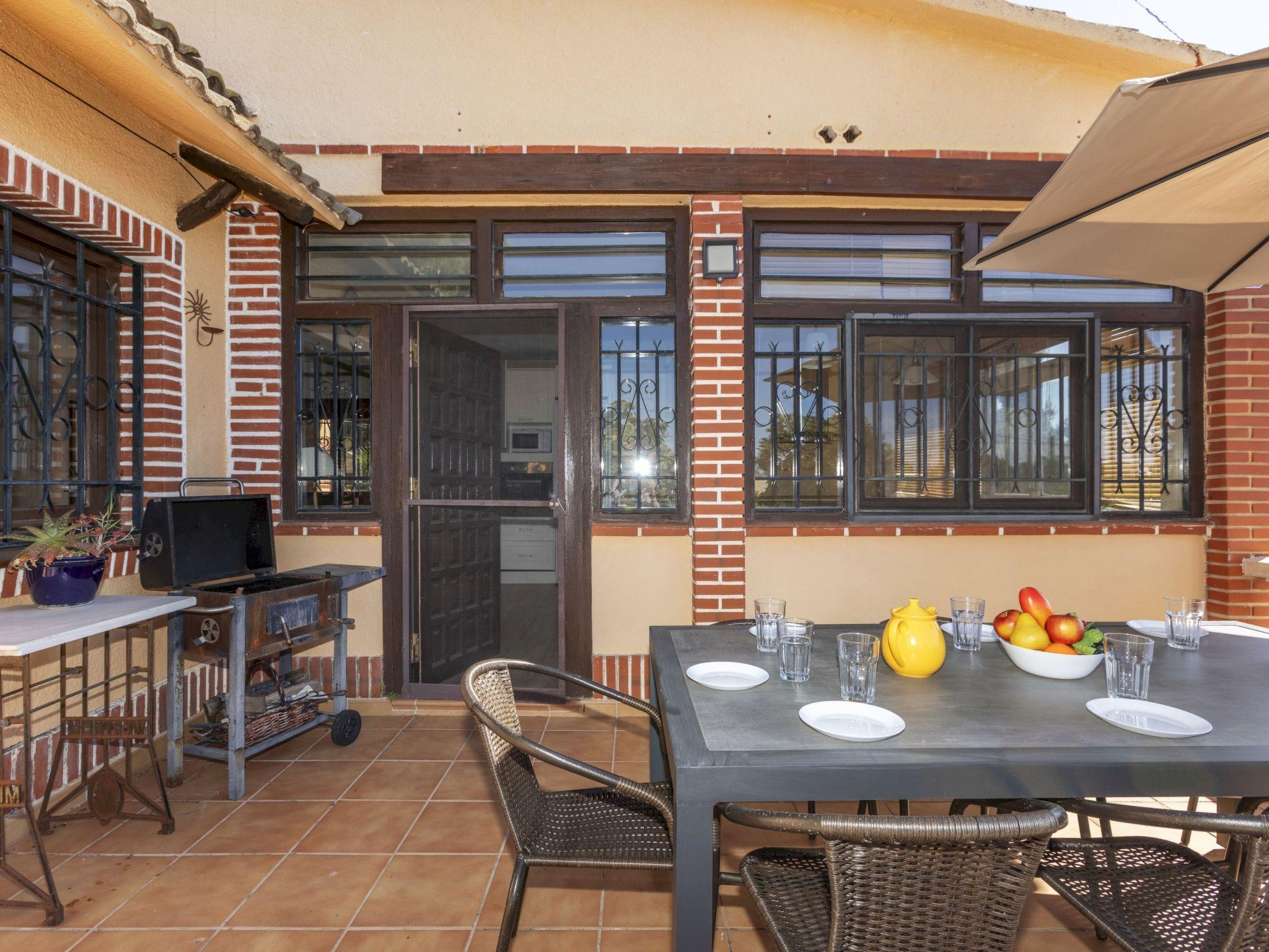 Castell de Montornés 7 km from Torredembarra: Cosy, comfortable single-family house "Rossi", 2 storeys, detached. Outside the resort Castell de Montornés, in a quiet position residential area (villas), 7 km from the sea, 7 km from the beach. Private: terraced garden, swimming pool round (4.5 m diameter, depth 120 cm, seasonal availability: 15.Jun. - 15.Oct.). Pool maintenance by the owner/gardener. Public parking on the road. Bus stop "Perera final - bus urbano" 180 m, railway station "Torredembarra" 8 km. Nearby attractions: Tarragona 23 km, Port Aventura / Ferrari Land 35 km, Aquopolis 35 km, Jungle Trek 12 km. Please note: car recommended. Object suitable for 4 adults + 4 children. The owner does not accept any groups. The owner does not accept any youth groups. Neighbourhood highly sensitive to noise. Quietness and good behaviour expected.