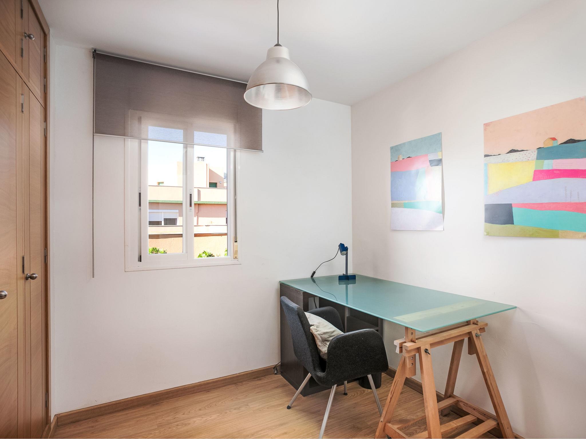 "Pinillo", 4-room apartment 100 m2, on the top floor. Object suitable for 4 adults + 2 children. Spacious and bright, beautiful and modern furnishings: living/dining room with dining table, satellite TV, air conditioning and forced-air heating. Exit to the terrace. 1 double bedroom with 1 french bed (150 cm), air conditioning and forced-air heating. Exit to the terrace. 1 double bedroom with 2 beds (90 cm). 1 double bedroom with 1 pull-out bed (2 x 80 cm, length 160 cm). Kitchen (oven, dishwasher, 3 induction hot plates, toaster, kettle, microwave, freezer, electric coffee machine). 2 showers/WC. Electric heating. Large terrace 60 m2. Terrace furniture, barbecue. Panoramic view. Facilities: washing machine, iron, hair dryer. Internet (WiFi, free). Parking space n 24. VFT/MA/21269 // Reg. Nr.: ESFCTU0000290210007428320000000000000000VFT/MA/212690