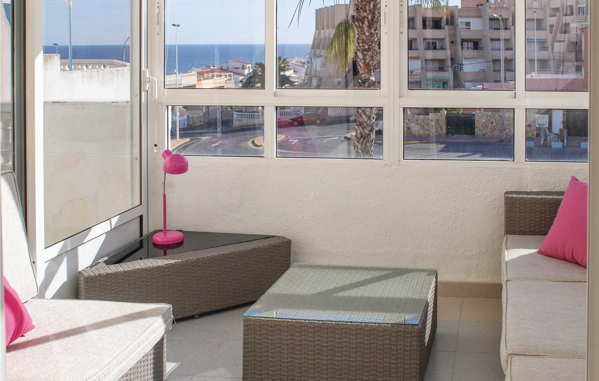 I populära La Mata i Residencia "Torreblanca Marina" ligger detta terrasserade hörnhus i 3 plan med vinterträdgårdar och en vacker trädgårdstomt. Från de övre våningarna har du en direkt utsikt över havet. Perfekt för familjer med barn. Stranden och alla restauranger och shoppingmöjligheter ligger bara några minuters promenad bort. Poolområdet används endast av 16 lägenheter och är därför aldrig överfullt. Här kan barnen leka och plaska eftersom det är ett inhägnat område. Bra bussförbindelser till Torrevieja och Alicante. Fyra TV-apparater och tillgång till höghastighetsinternet.